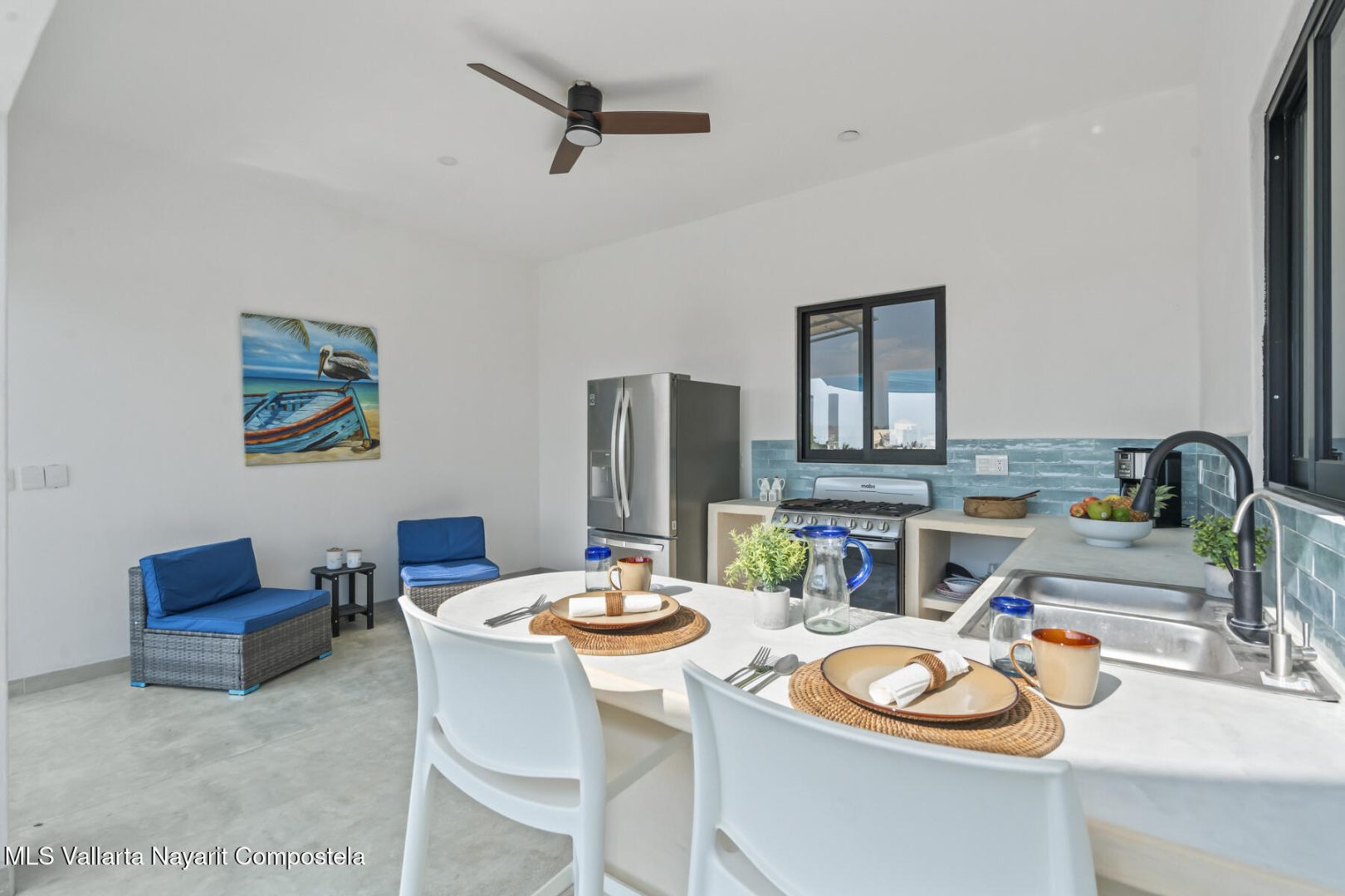 Newly built, modern three-level fourplex in the vibrant center of Punta Mita. The building features two pools–one on the ground level and another on the upper floor.Each of the four self-contained units offers a bright, open-concept living space, spacious air-conditioned bedrooms, and stylish, contemporary bathrooms. Every detail has been thoughtfully planned to ensure durability, easy upkeep, and year-round comfort.Unit Breakdown:Ground Floor: One 2-bedroom apartment with direct access to the poolMiddle Floor: One studio apartment + one 2-bedroom apartmentUpper Floor: One 1-bedroom apartment with access to the rooftop pool