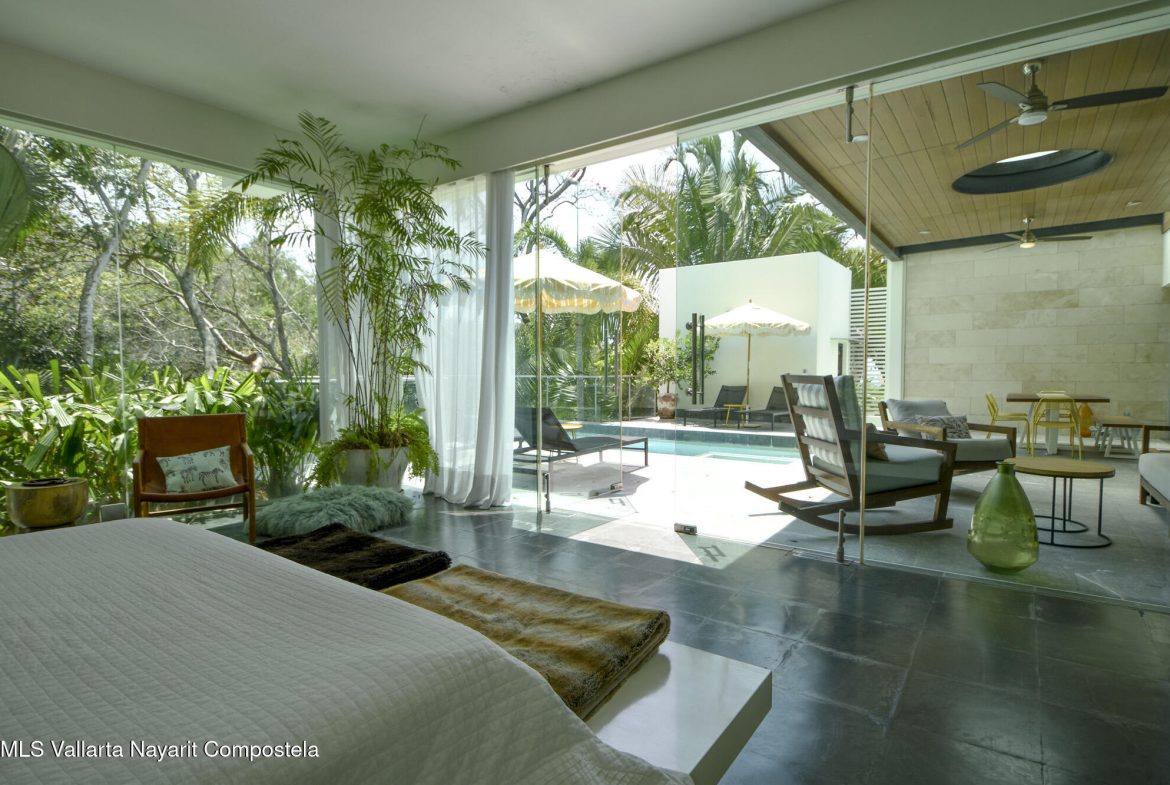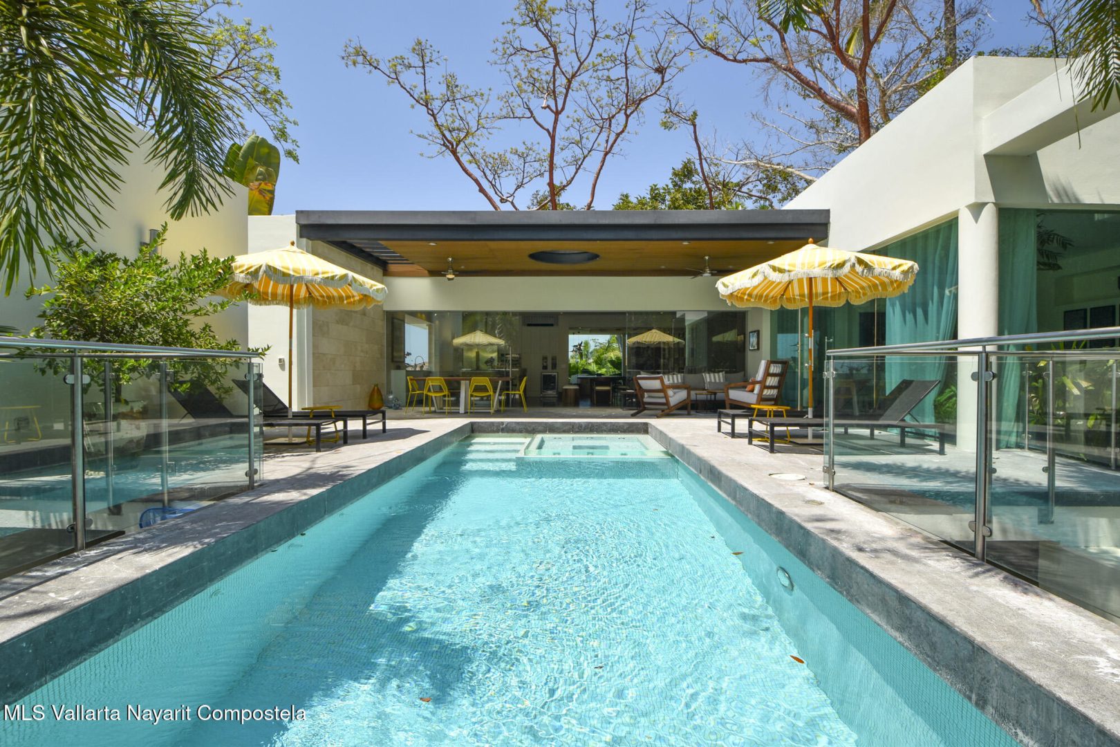 Escape to paradise in this modern masterpiece nestled in the exclusive Sierra del Mar community of Puerto Vallarta. This luxurious home seamlessly blends cutting-edge architecture with the lush beauty of the surrounding jungle. Experience unparalleled privacy and tranquility in this custom-designed residence. The primary and guest houses feature three spacious bedrooms, each boasting an ensuite bathroom offering ultimate comfort and convenience. The expansive living areas flow effortlessly onto a breathtaking outdoor space, complete with a pool and jacuzzi. The landscaped garden and outdoor space are perfect for entertaining or simply unwinding in style.