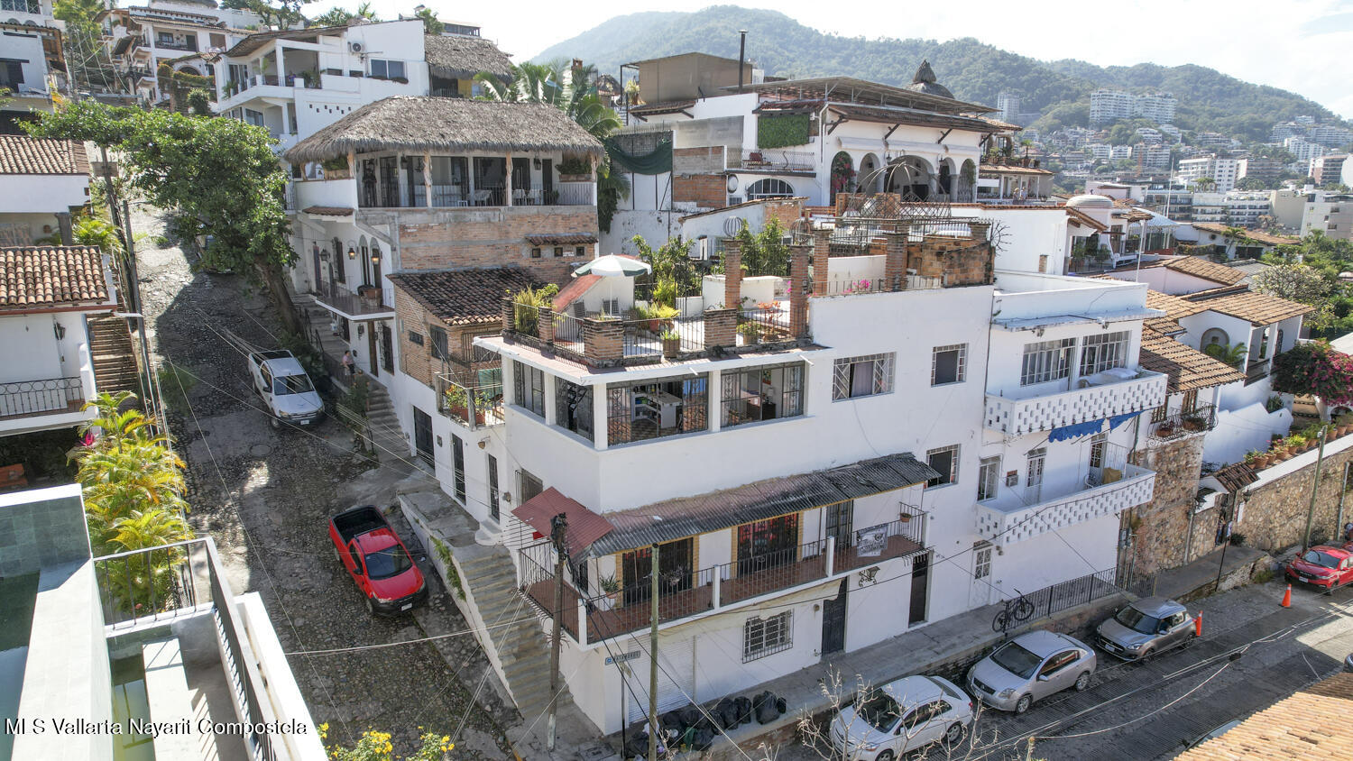 Esta extraordinaria propiedad en el corazon del centro historico incluye Casa Alicia en la esquina de Matamoros e Iturbide con area de uso mixto potencial en planta baja; 2 departamentos de 1 recamara cada uno en sendos niveles; terraza tambien con vista panoramica de la bahia y la ciudad; garaje, habitacion con bano y jardin mas la bellisima Casa Muneca adyacente con listing #42100.This extraornidary property in the heart of the historic downtown includes Casa Alicia on the corner of Matamoros and Iturbide with ground floor space suitable for mix use; 2 one bedroom apartments; rooftop terrace; garage with upper bedroom with bathroom and garden. Panoramic views of town and the bay. And the exquisite adjacent Casa Muneca, listing #42100