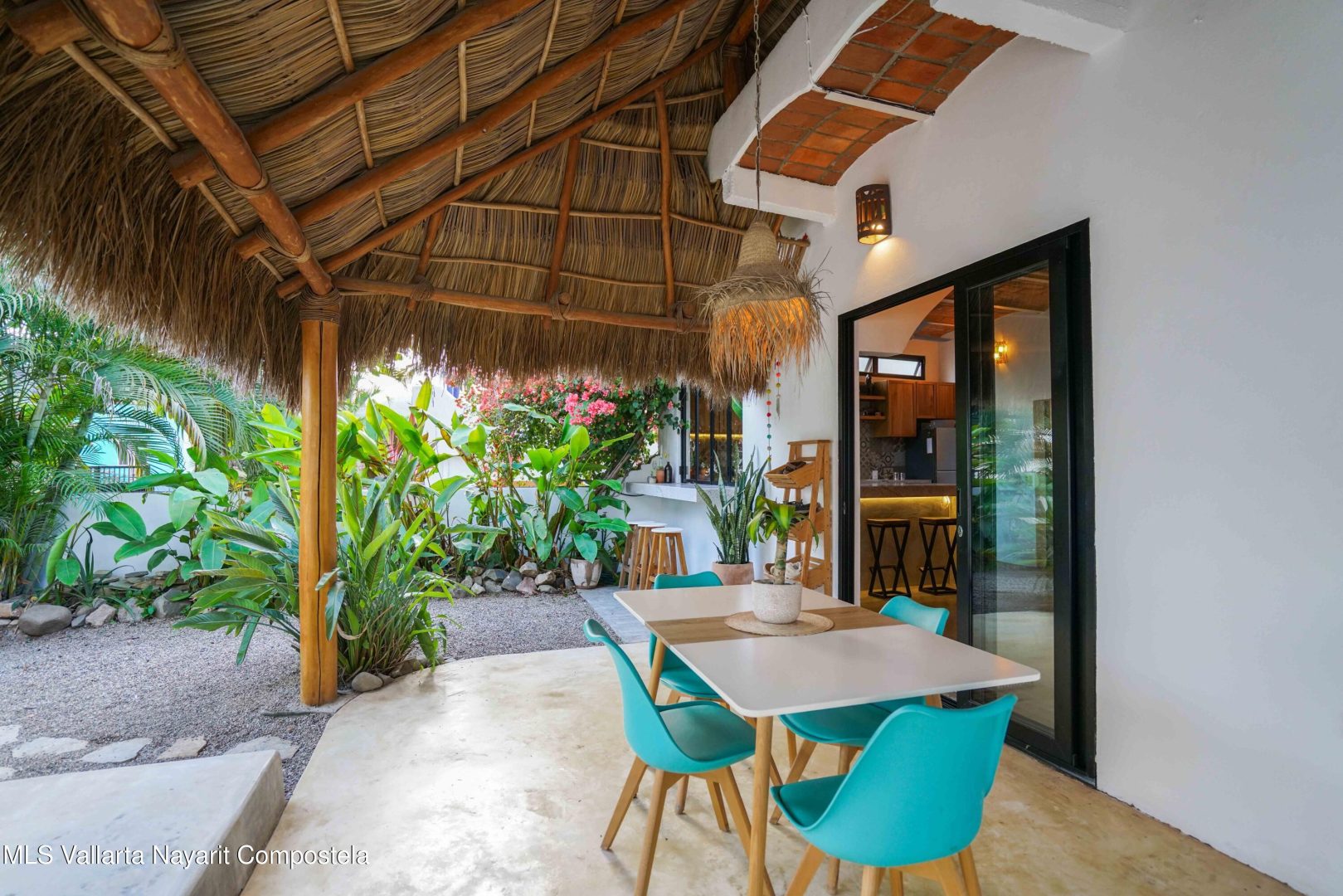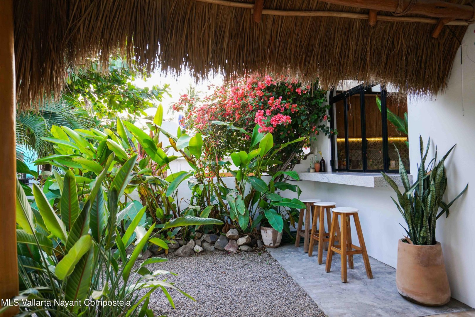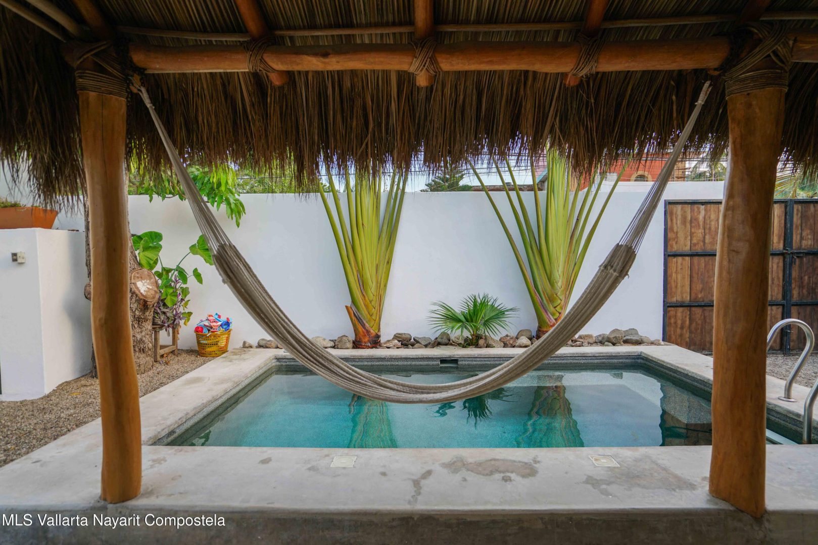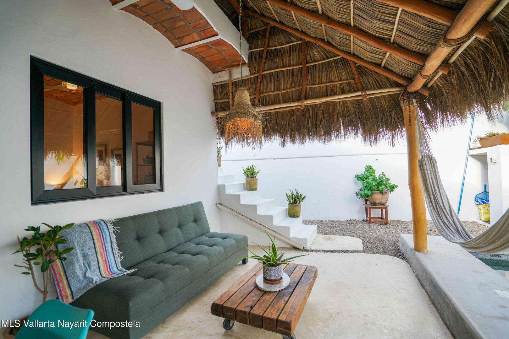This property is located in the main area of San Pancho, already a popular and up-and-coming area, a perfect mix of lush green nature, the Sierra Madre mountains and the sea, offering many fun water sports. This 2 bedroom, 2 bathroom home with a private pool and private backyard boasts simple, natural elements with a beautiful, functional space.The folding kitchen window opens to the outside bar, and the home is sold fully furnished and turnkey, ready to rent or move into immediately. It also includes a dedicated workspace and reliable cable internet. Currently built on one floor, the option to add a second level is easily available, making it ideal for a family or investment rental. It’s a 2-minute drive to the beach and close to restaurants, bars and shops, nestled in a quiet area