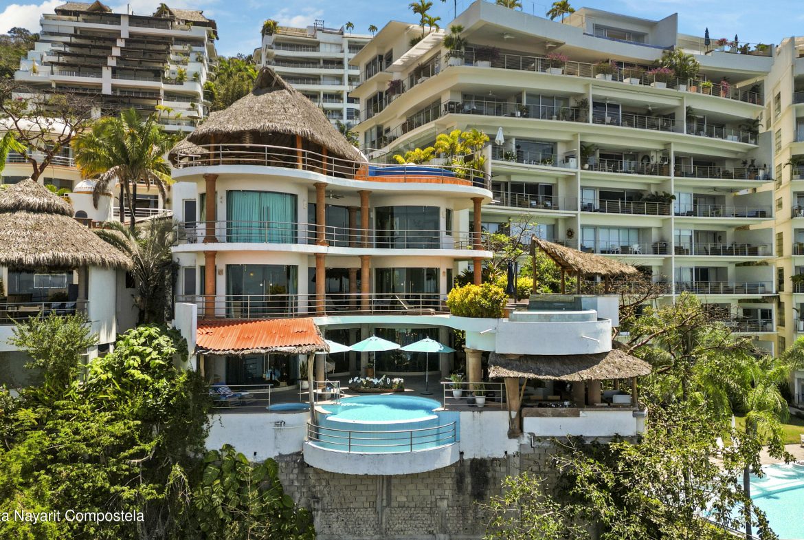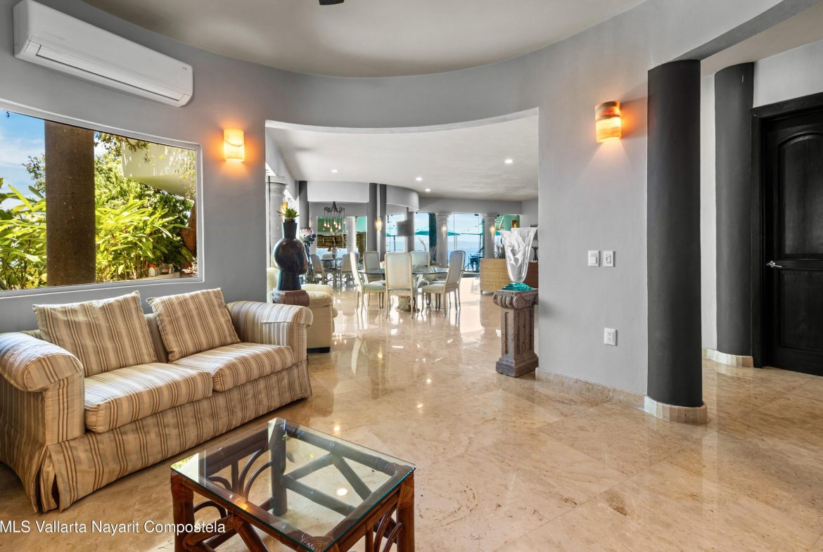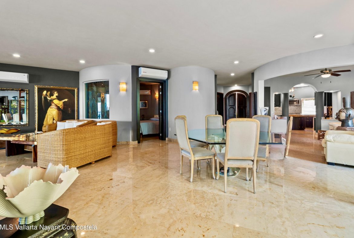 This exceptional single-level home offers sweeping 180-degree views of the Pacific Ocean, pristine beaches, the sparkling city skyline, and the lush mountains of Banderas Bay — all framed by floor-to-ceiling windows and expansive outdoor living areas.With 3 bedrooms, 3 full bathrooms, and a half bath, the layout is both spacious and thoughtfully designed. Highlights include imported marble floors, hand-selected granite countertops, cantera stone accents, and sleek contemporary finishes. The chef’s kitchen features premium stainless steel appliances, and spa-style bathrooms include walk-in closets. Whether relaxing in the serene bedrooms or entertaining by the private pool and outdoor bar, this home defines luxurious coastal living.