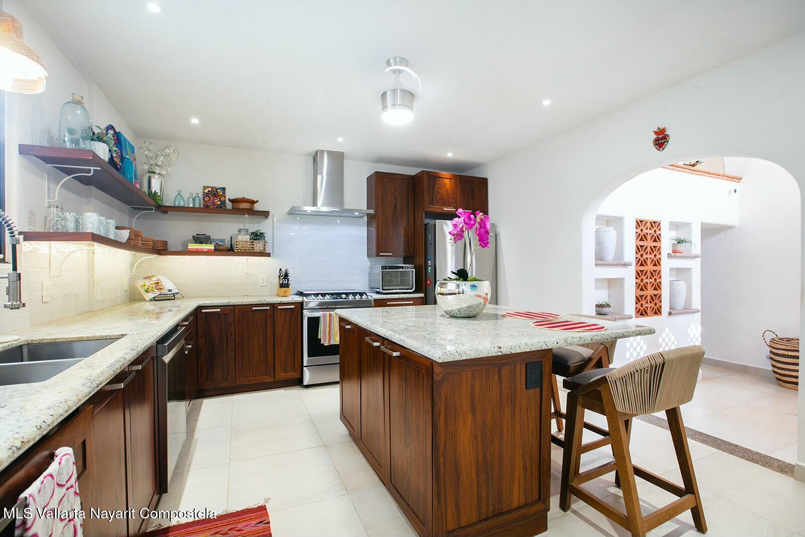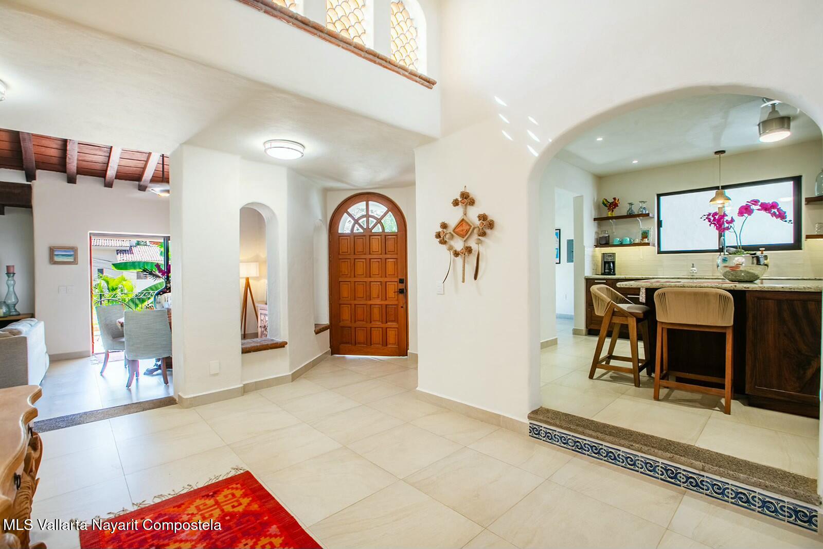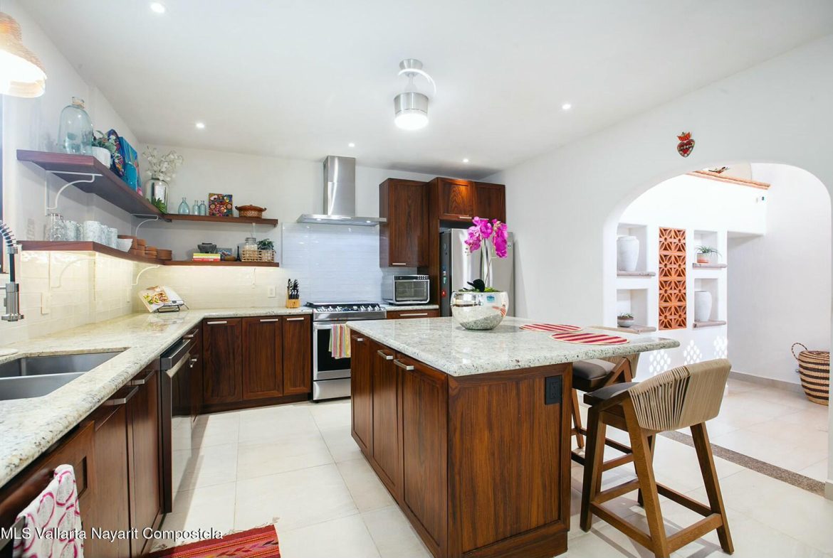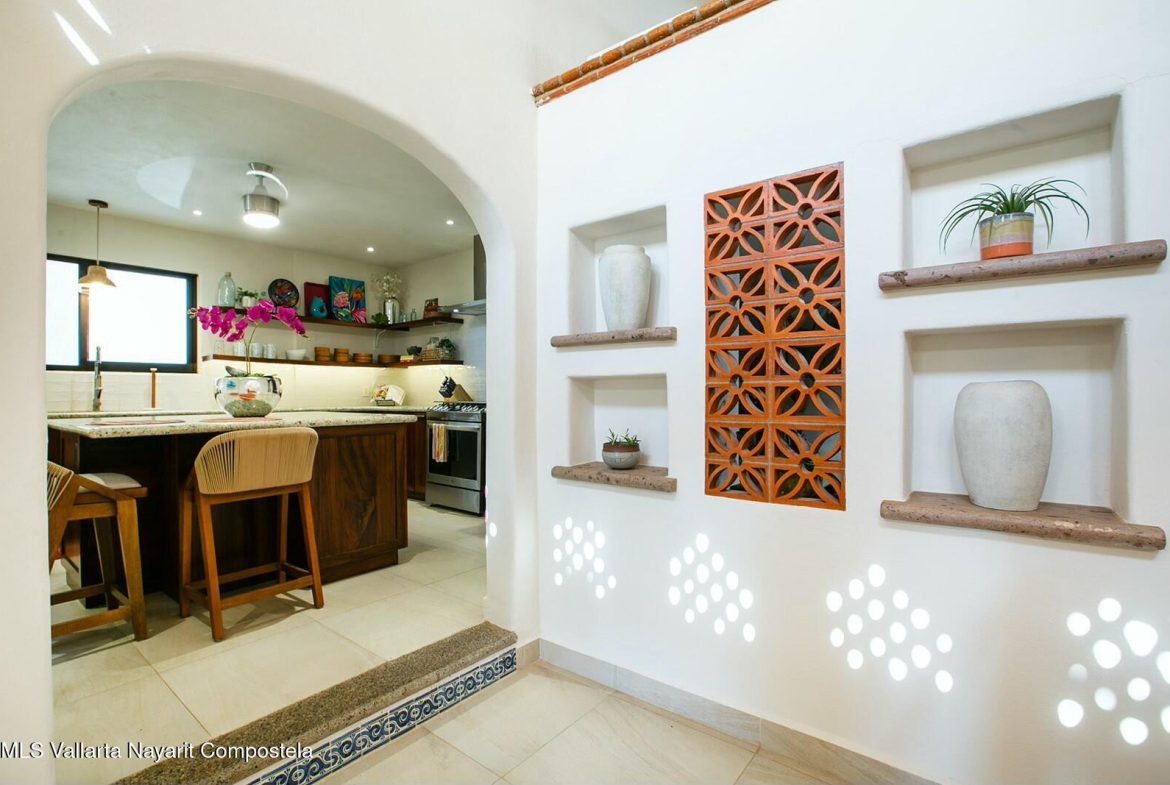 ”Casa Paradise” is a Vallartense-style villa that has been expanded and substantially renovated over the last eight years by its owners who’ve carefully retained its authenticity within the Bucerias community. This is a rare find of a large home set on a huge residential lot in the heart of the Zona Dorada, just two blocks from two protected beach accesses and amidst the popular restaurants, galleries and boutiques. It’s an oasis of tranquility and rustic elegance. Among its increased spaces is a charming one bedroom/one bathroom casita–rendering superb function and liveability, and complementing main home’s three bedrooms and 2-1/2 bathrooms.Practically all surfaces have been refinished and modernised, along with refitting of plumbing and electrical installations.