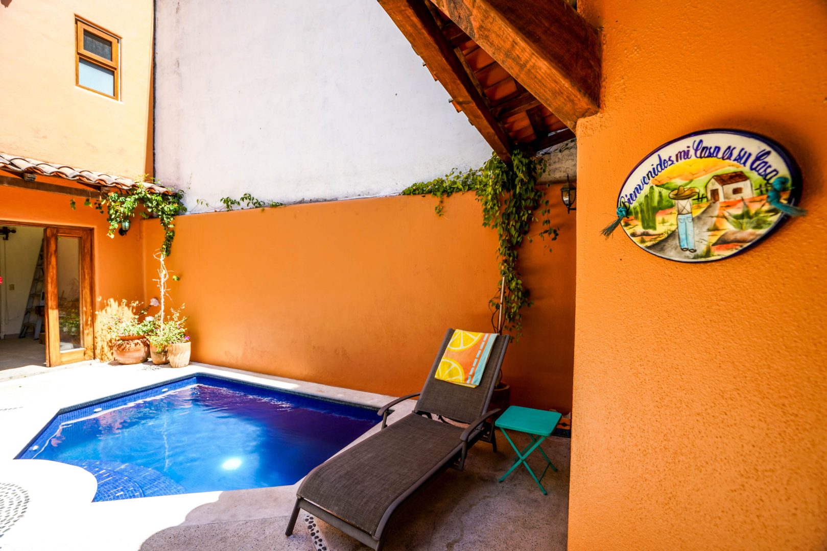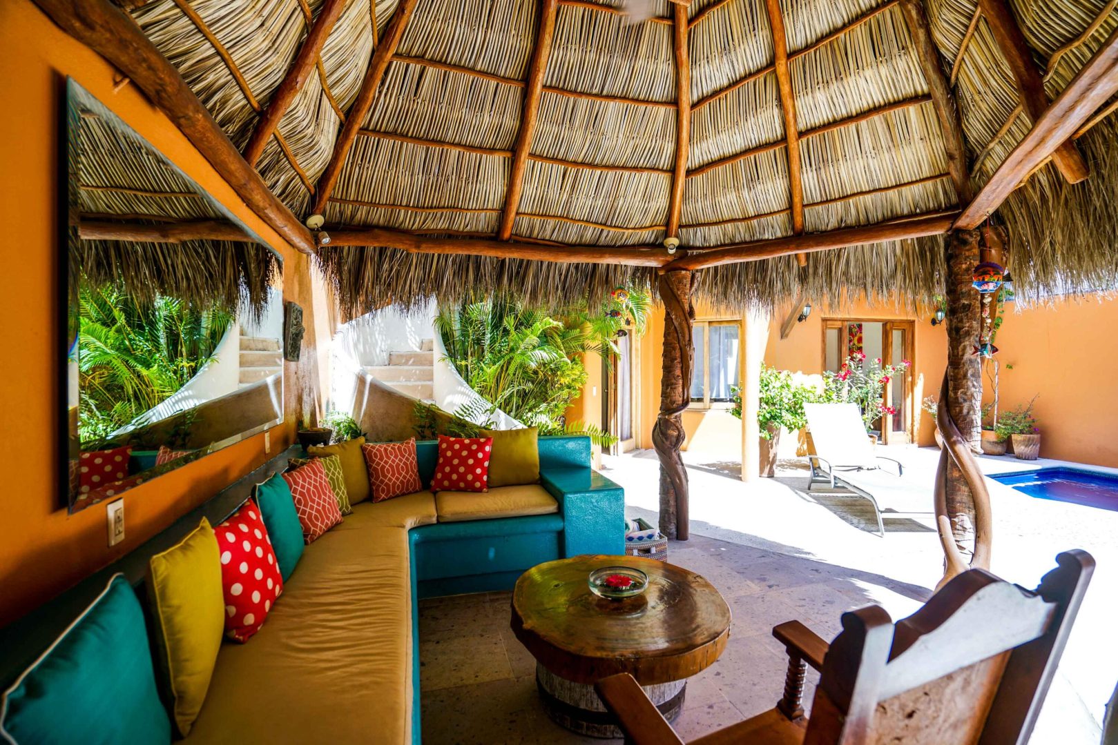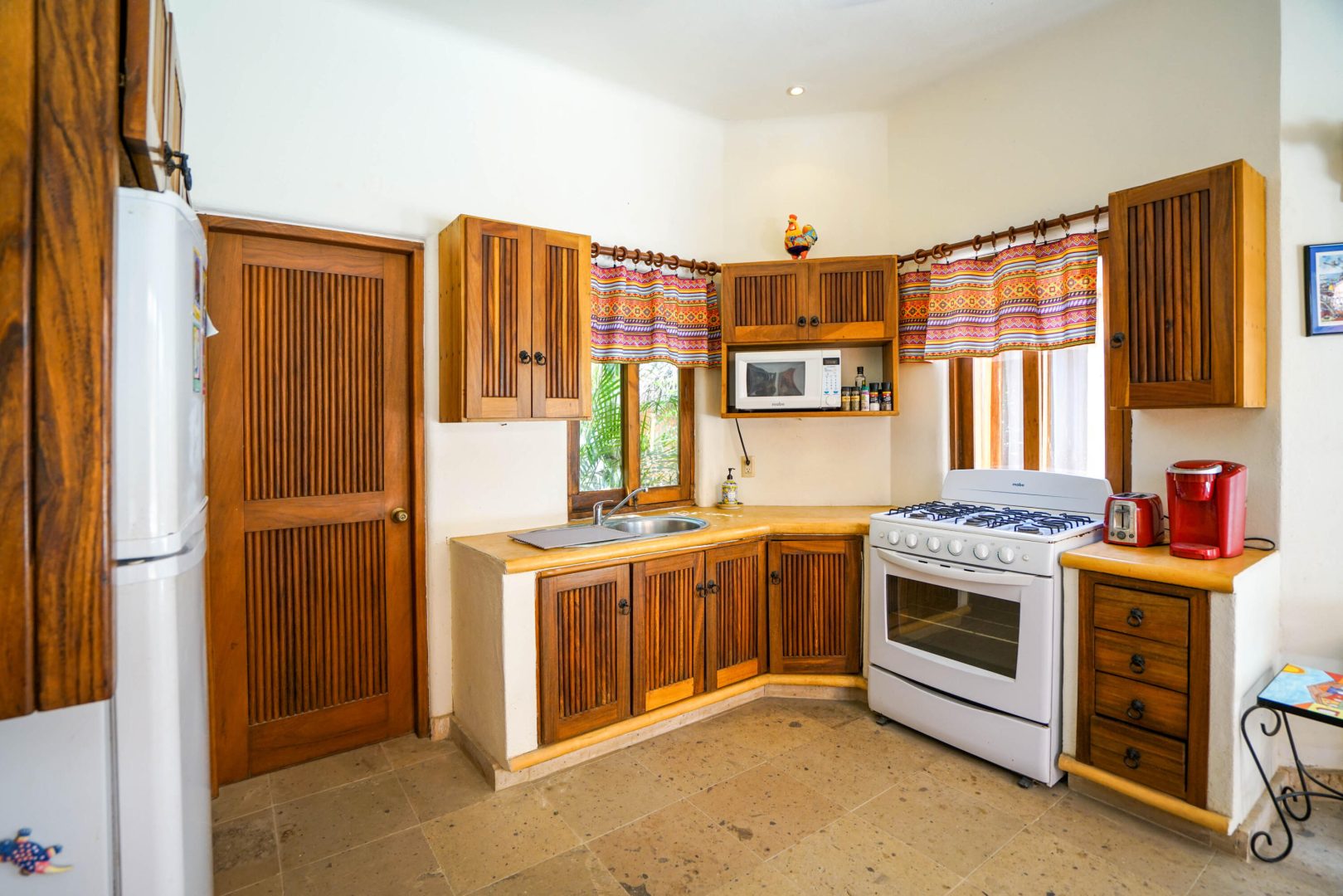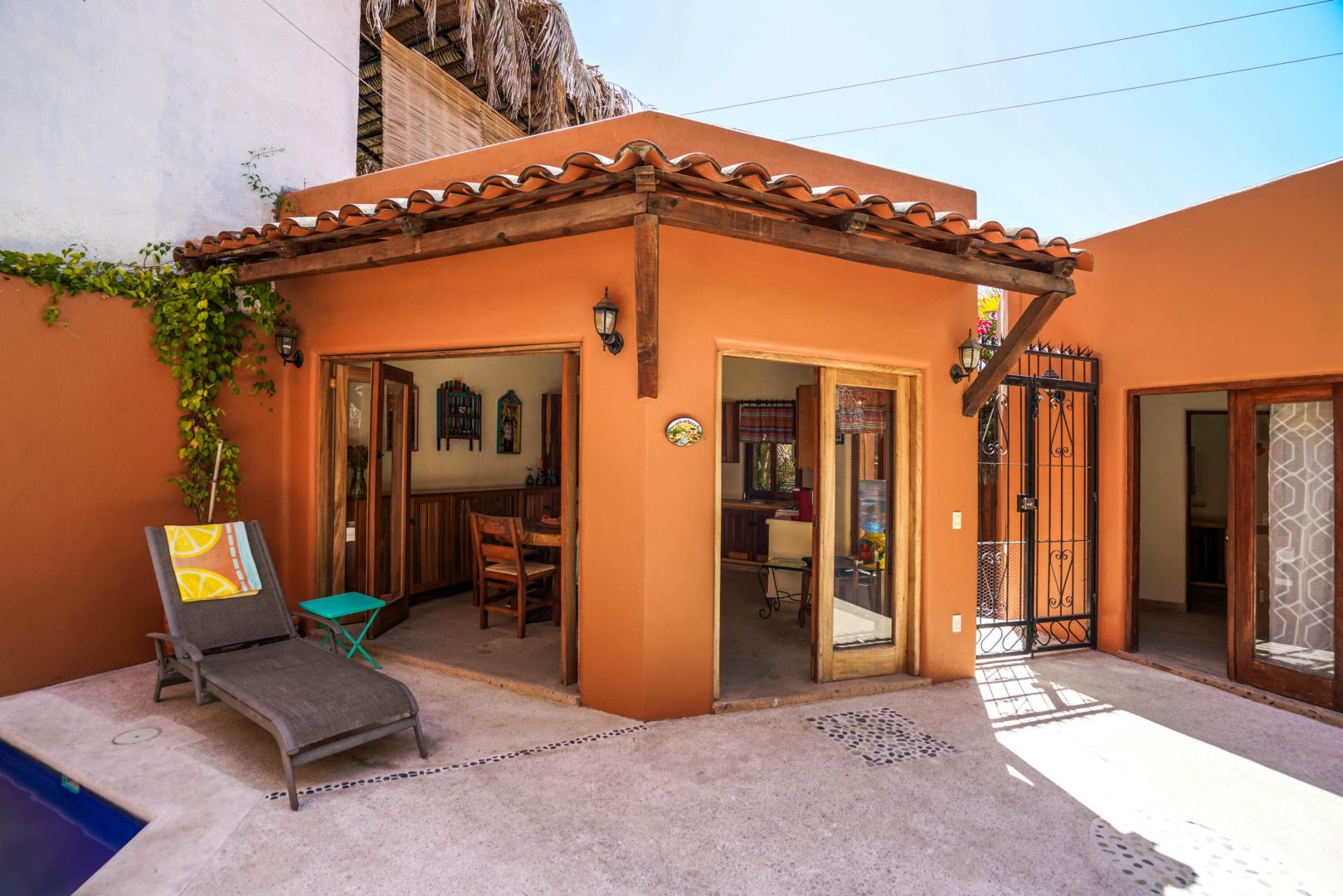 Casa Paraiso is a 3 bedroom, 3.5 bathrooms, 1 studio property located in the residential area of El Izote, in Calle Honduras, a dead end street. An easy walk to all of San Pancho’s local restaurants, shops and beach. This Multi level home has three large bedrooms . One of the bedrooms has single beds, one has a queen and the master has a King bed. The living area is bright, sunny and comfortable leading to an outdoor area with a private pool. Big kitchen with wooden cabinets and laundry room. Great outdoor space upstairs with a Palapa Covered area and beautiful views.