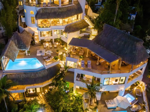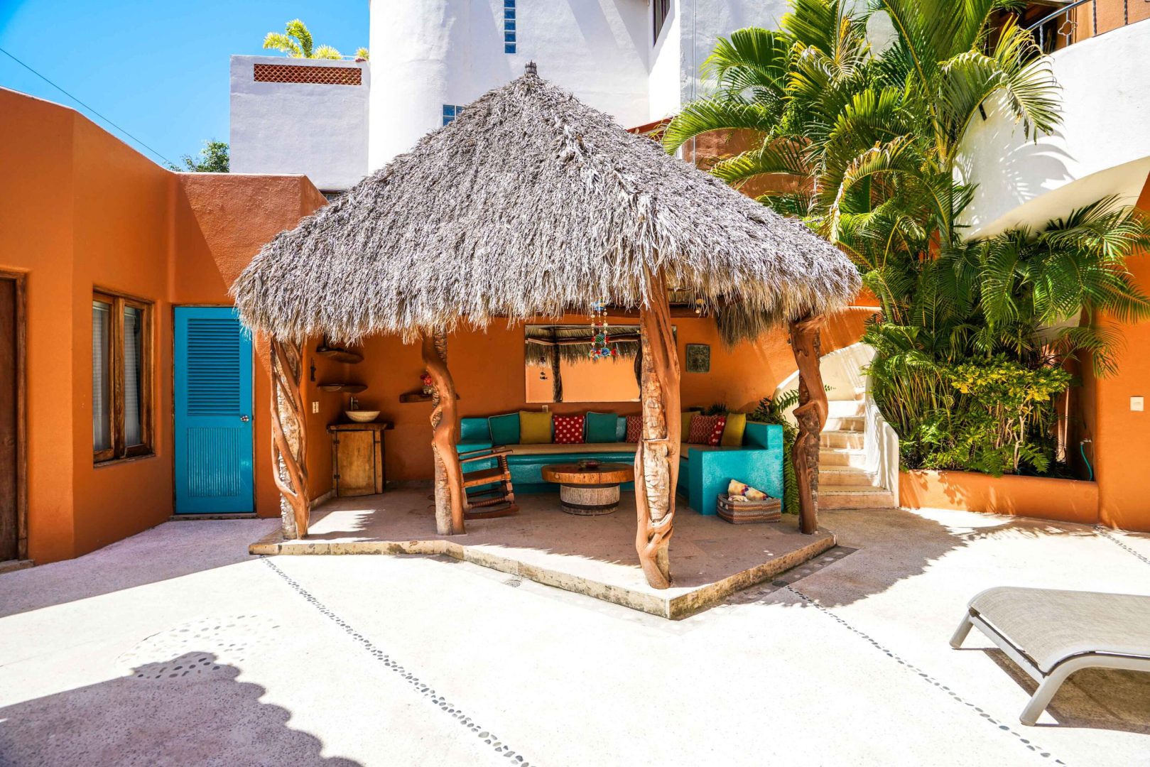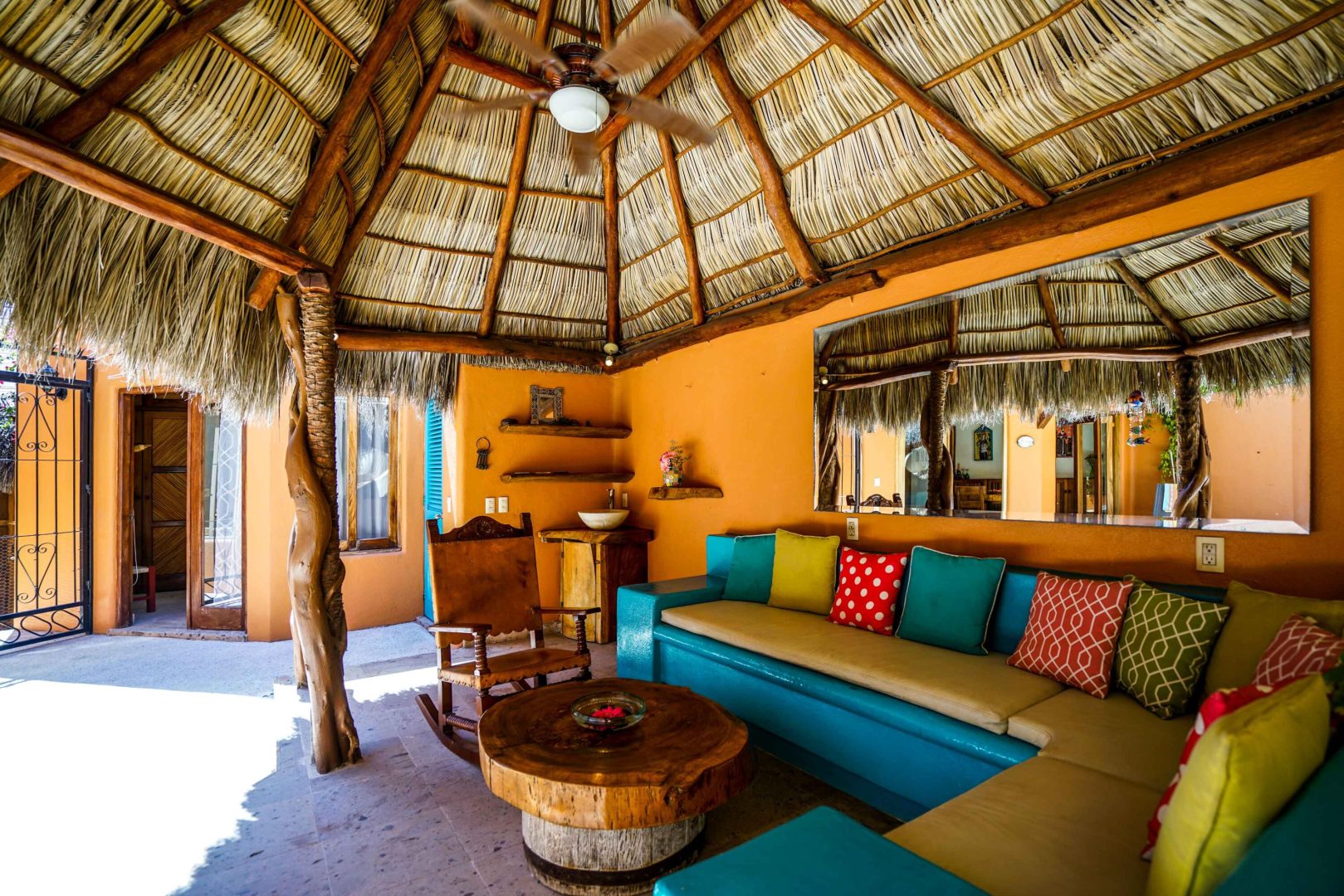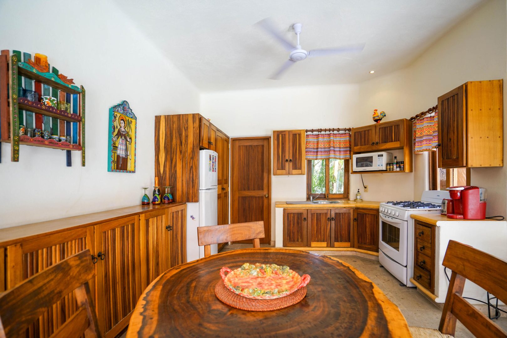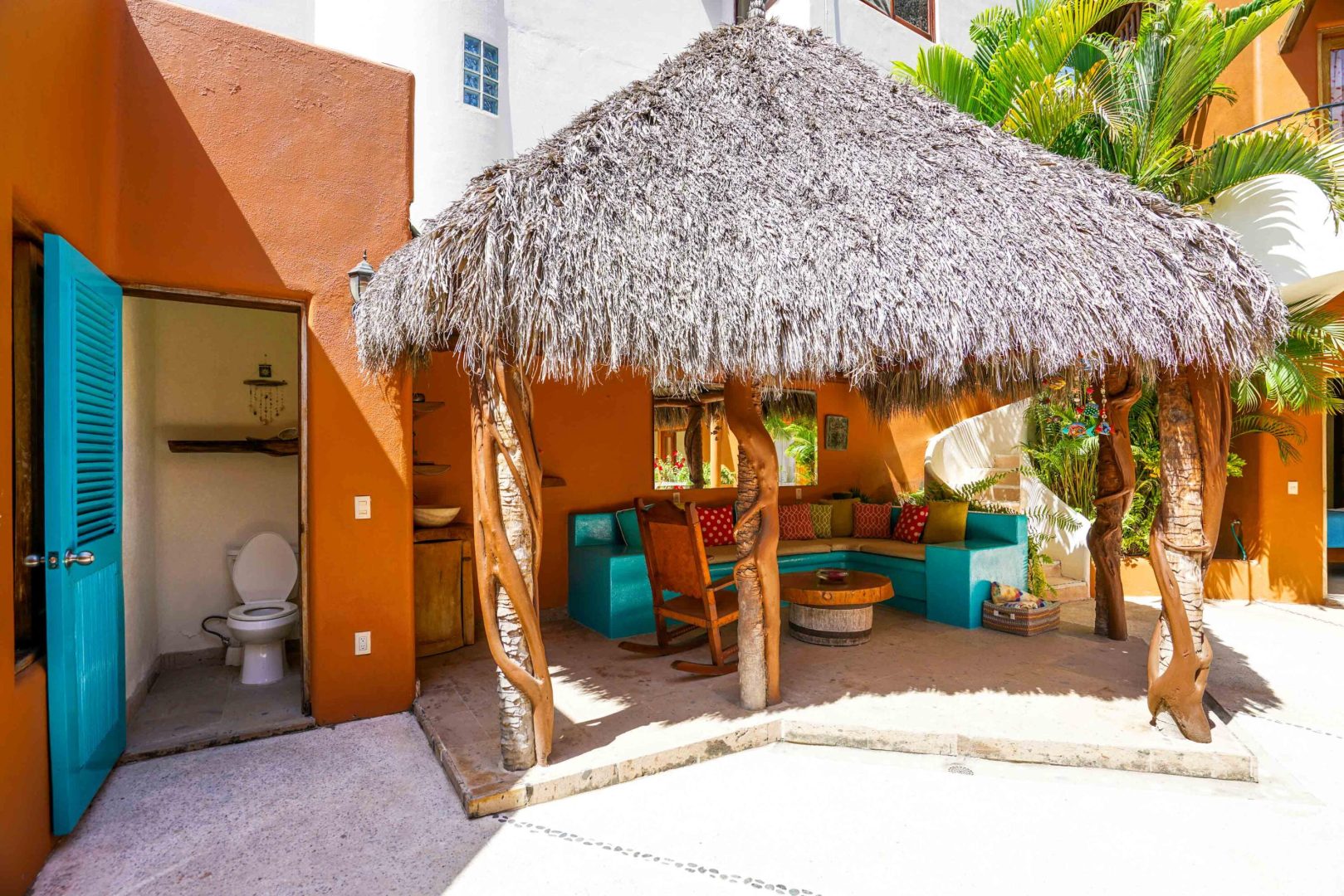 Casa Paraiso is a 3 bedroom, 3.5 bathrooms, 1 studio property located in the residential area of El Izote, in Calle Honduras, a dead end street. An easy walk to all of San Pancho’s local restaurants, shops and beach. This Multi level home has three large bedrooms . One of the bedrooms has single beds, one has a queen and the master has a King bed. The living area is bright, sunny and comfortable leading to an outdoor area with a private pool. Big kitchen with wooden cabinets and laundry room. Great outdoor space upstairs with a Palapa Covered area and beautiful views.