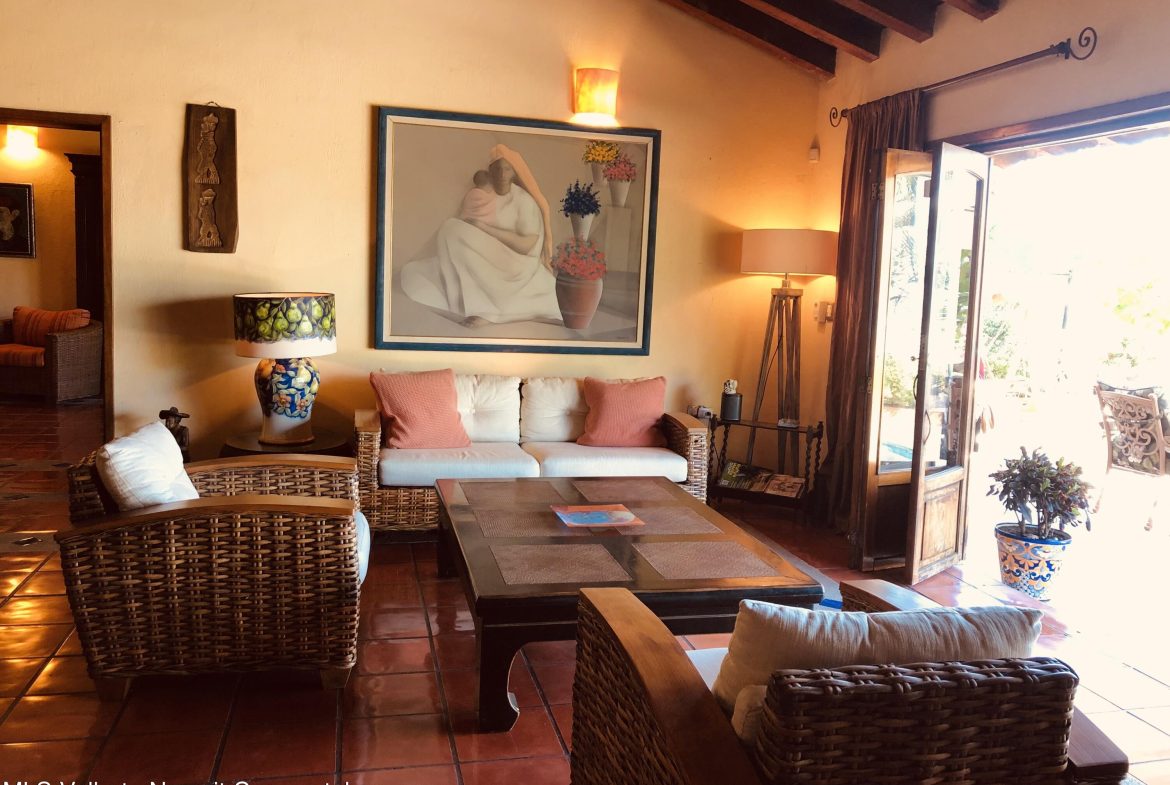 (English below) Propiedad con vistas espectaculares! Casa principal con caracter en una sola planta: 2 dormitorios con banos en suite; espacio flexible/oficina/servicio con bano completo. Gran sala-comedor; cocina; medio bano. Una encantadora terraza de aprox. 84 m con piscina. Casita independiente con dormitorio flexible/habitacion para invitados con bano; bodega en la planta baja; terraza en la azotea. Amplio terreno privado, exuberante y con amplio estacionamiento. Se entrega completamente amueblada, lista para disfrutar hoy mismo.Amazing view property! Character main house on one floor: 2 bedrooms with ensuite bathrooms; flex/office/service space with full bathroom. Great Room dining-living area; kitchen; half-bathroom. A lovely, approx. 900 sq.ft. terrace with dipping pool.
