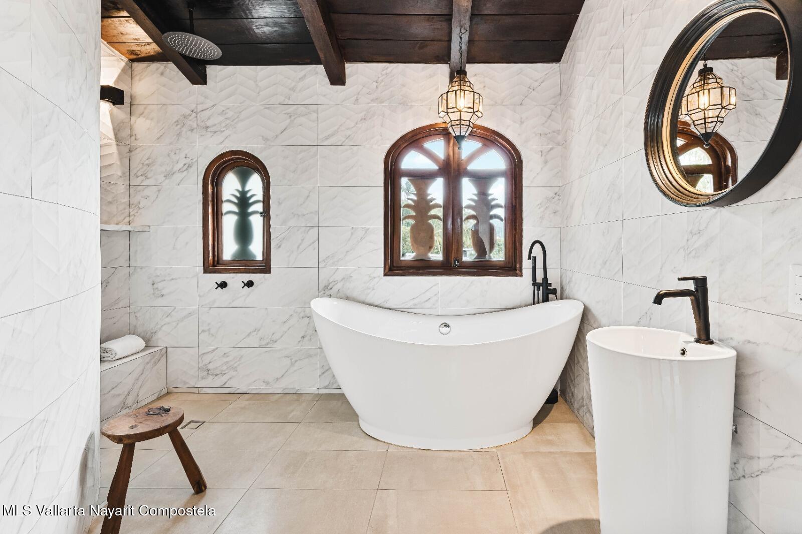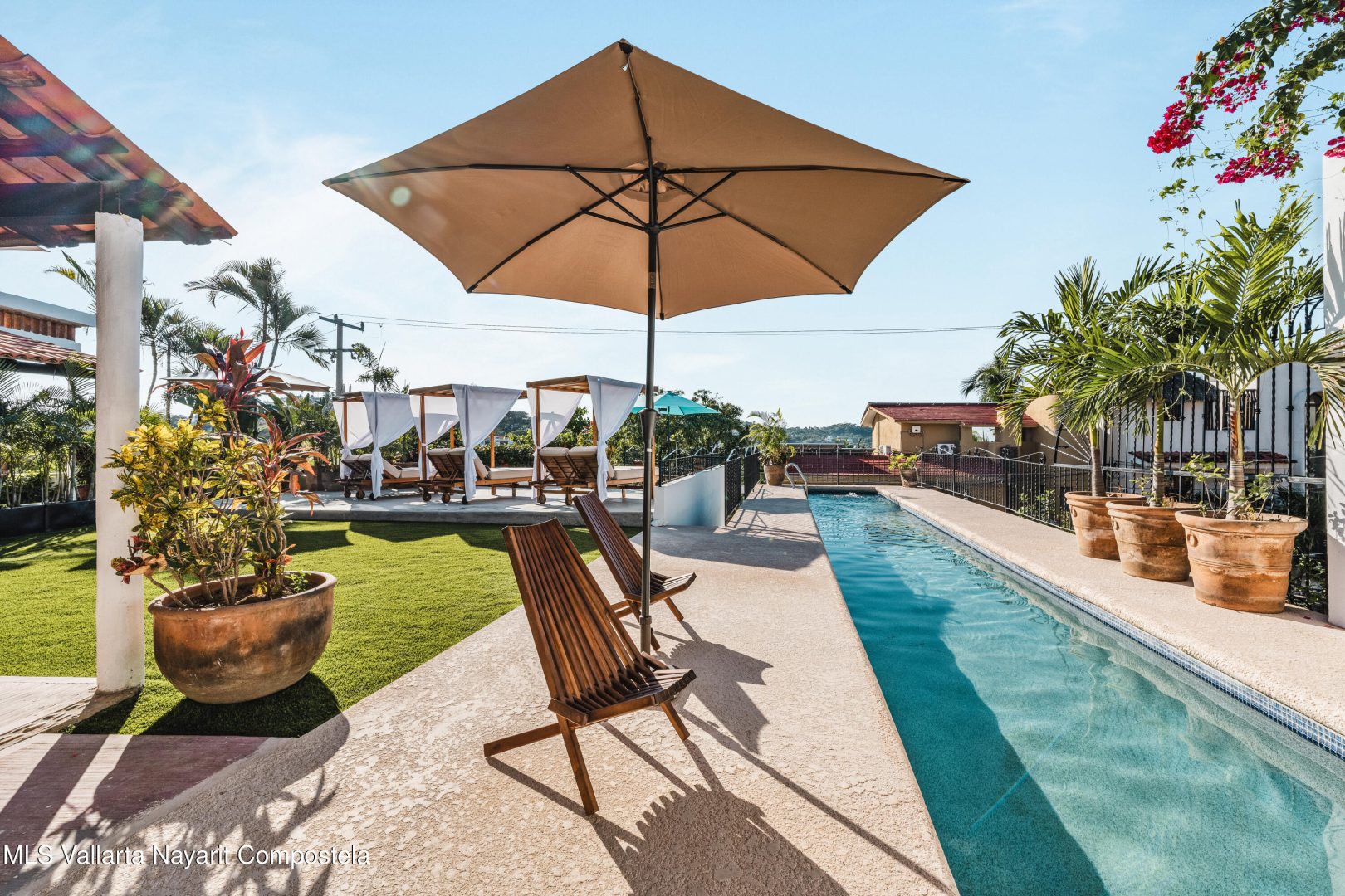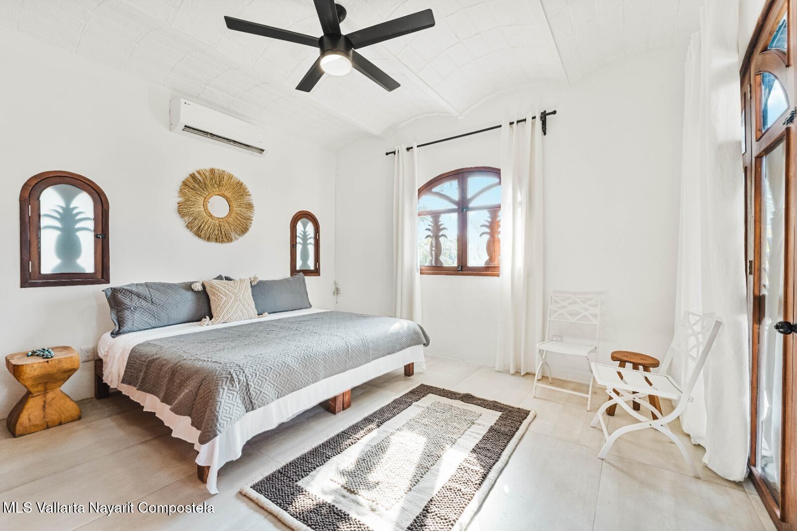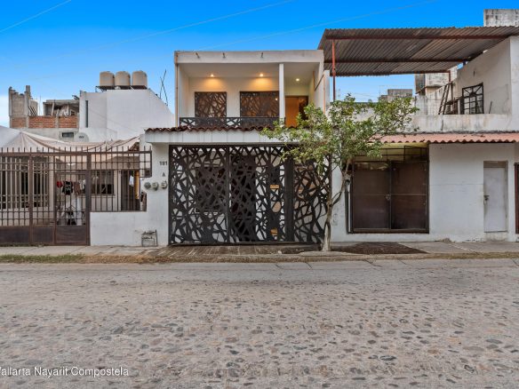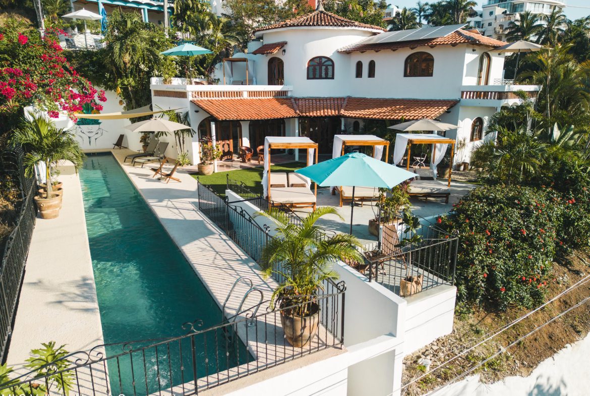 Casa Pina is a charming Mexican-style home located in the North End of Sayulita, just three blocks from the ocean and within walking distance to the beach. This turnkey home features 3 comfortable bedrooms and 3 full bathrooms. The lower level of the home offers a spacious open living and dining area, perfect for entertaining family and friends. There is also a downstairs bedroom, providing convenient and easy access for guests or family members. The living area leads out to a very private yard that features a 25-meter lap pool and lush, tropical gardens, making it the perfect space for relaxing and enjoying the sunny weather. The second level of the home includes two additional bedrooms, each with their own private terrazzo that overlooks the ocean,offering breathtaking views of the
