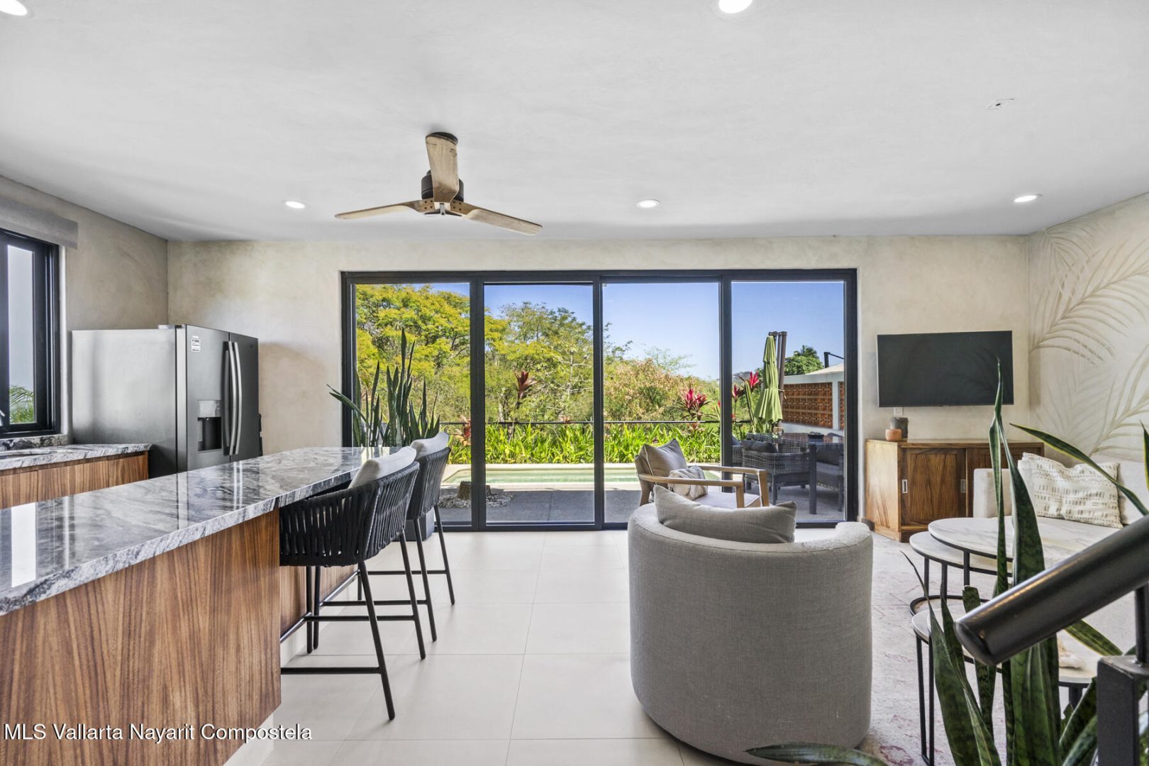 Casa Primavera blends modern comfort with tropical living in the gated jungle enclave of Selva Maaku, just a 5 minute golf cart ride to the heart of Sayulita. Surrounded by lush greenery and mature mango trees, this thoughtfully designed 3 bedroom home offers privacy, tranquility, and seamless indoor outdoor living. The open concept kitchen and living areas flow effortlessly to a private outdoor pool, creating the perfect setting for entertaining or quiet relaxation. A spacious rooftop patio captures beautiful jungle views and warm coastal breezes. With well water, solar panels, and quality finishes throughout, this home is move-in ready. Residents also enjoy access to the common-area that includes a stunning lap pool and oversized palapa within this secure and peaceful community.