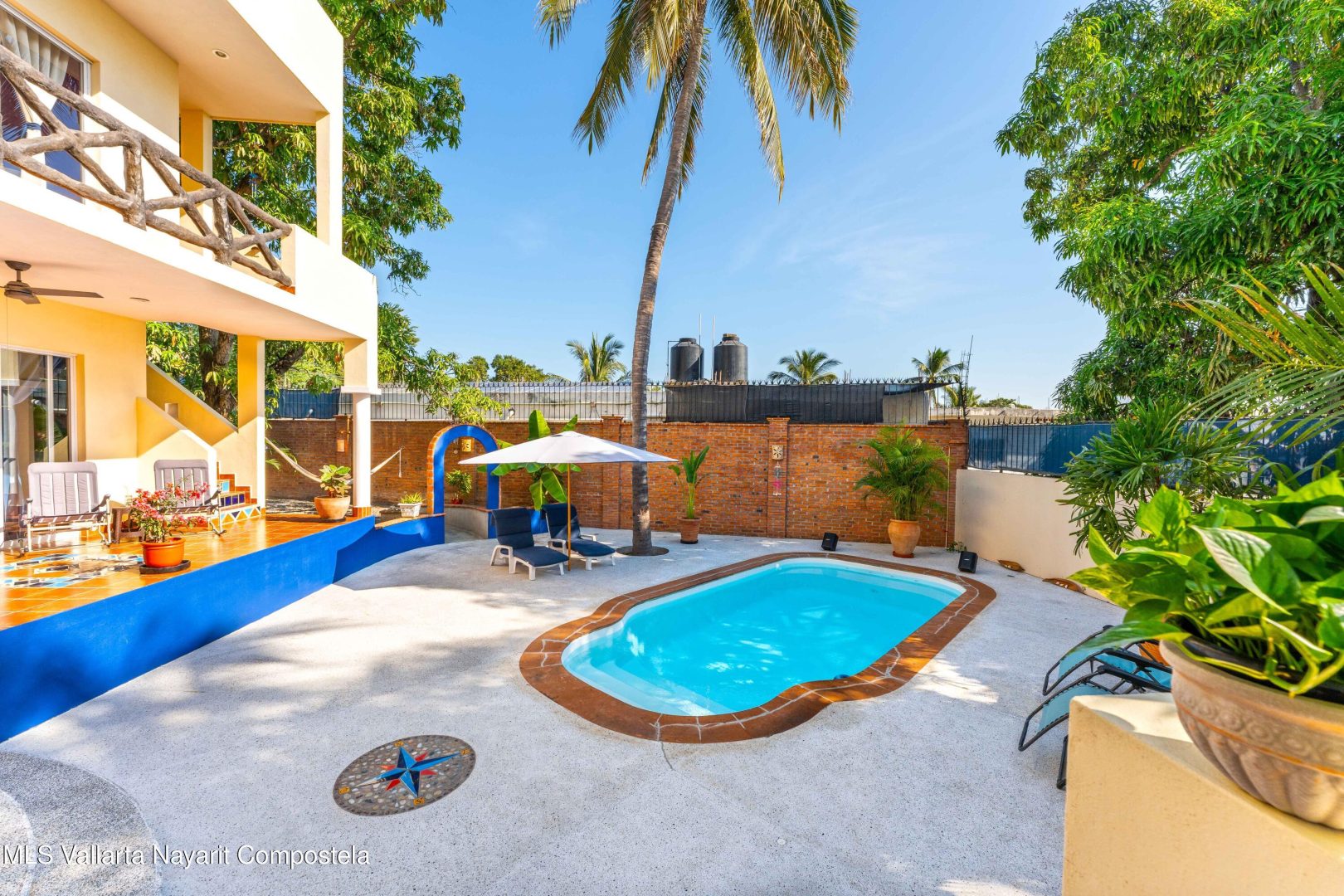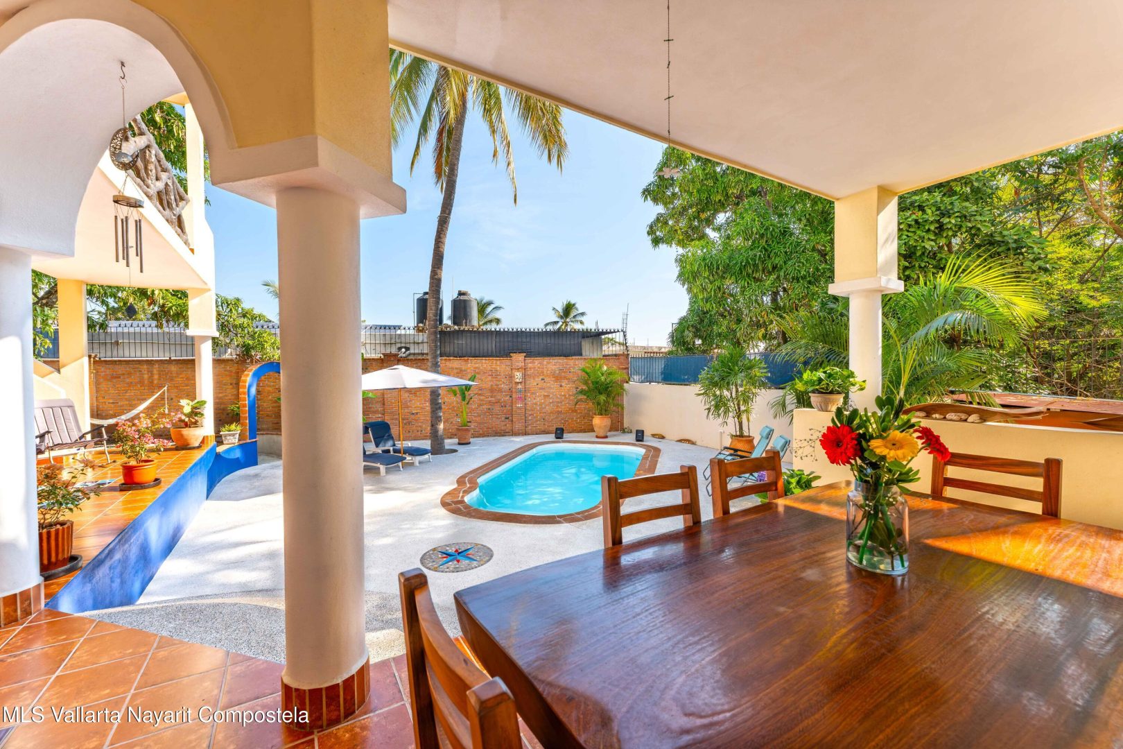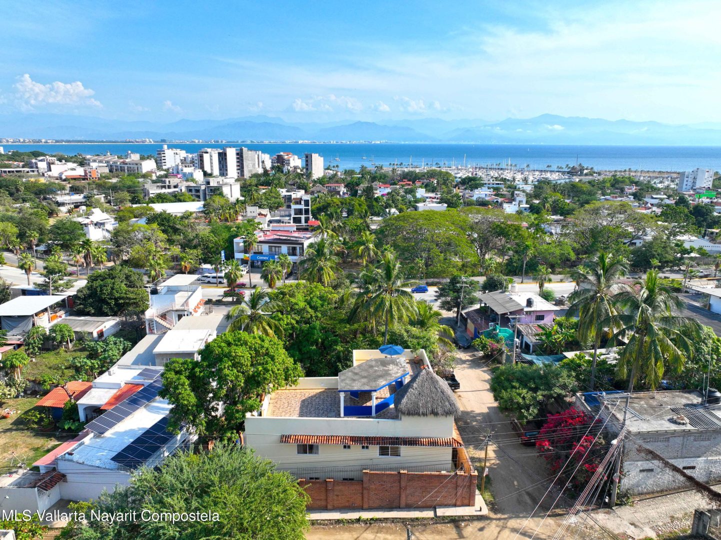 ENGLISH BELOW/ LISTA PARA HABITAR-Casa Residencial en La Cruz de Huanacaxtle – 4 Dormitorios, 4 Banos completos, 2 medio banos, 2 plantas y una terraza en la azotea con vista parcial al mar y a la Bahia. Completamente amueblada, con cocina de concepto abierto. Cuenta con balcones en ambos niveles, estacionamiento privado, alberca, con comedor y area de estar al aire libre y jardin. Frente a un camino de acceso sin pavimentar. // TURNKEY-Residential Home in La Cruz de Huanacaxtle – 4 Bedrooms, 4 full bathrooms, 2 half bathrooms, 2 levels and a rooftop terrace with partial views of the ocean and the Bay. Fully furnished, with an open-concept kitchen. Features balconies on both levels, private parking, a swimming pool, outdoor dining and lounge areas and garden. Fronts an unpaved access road.
