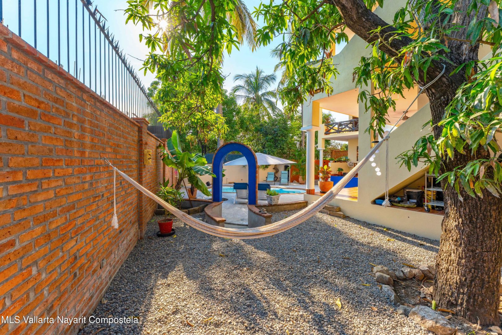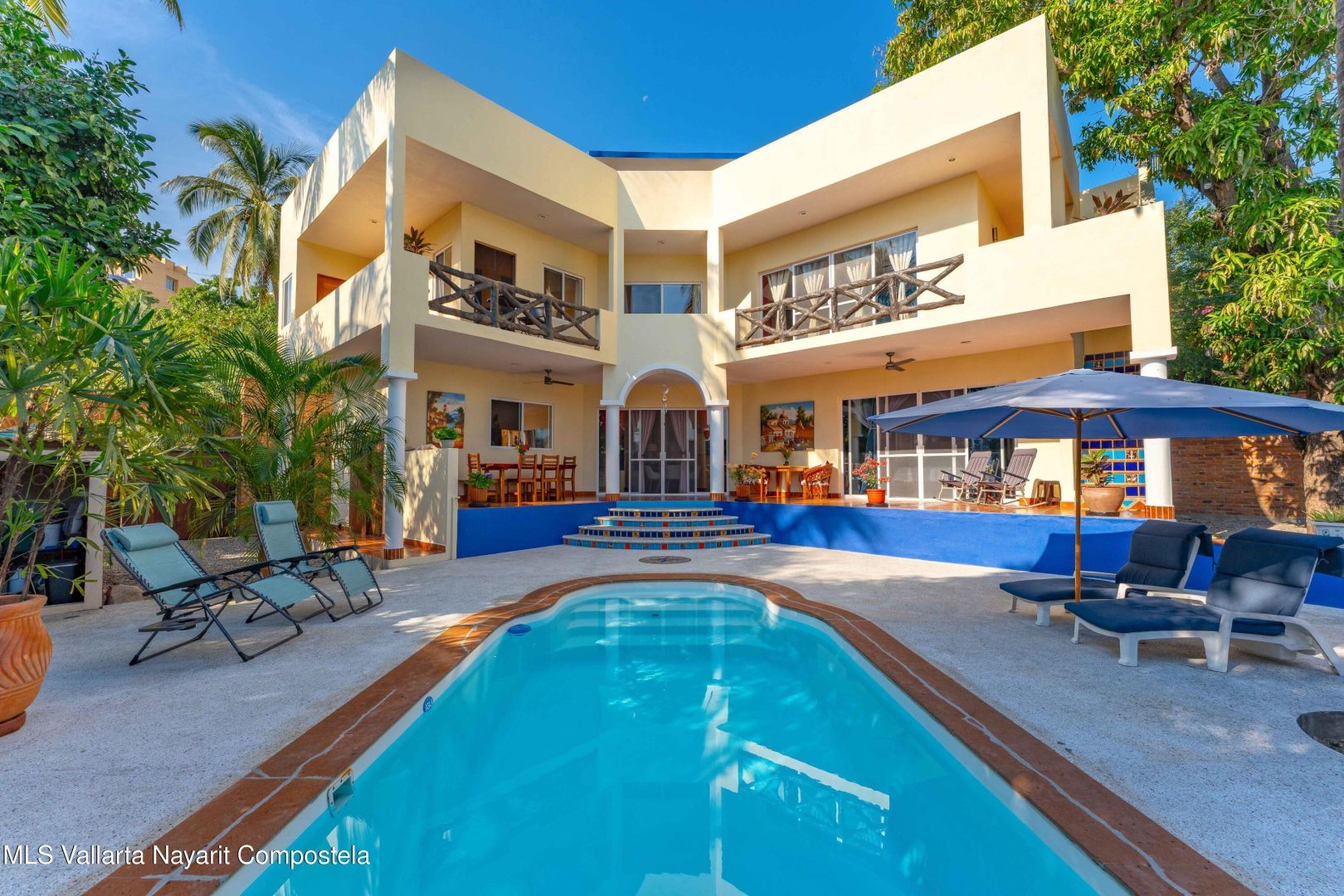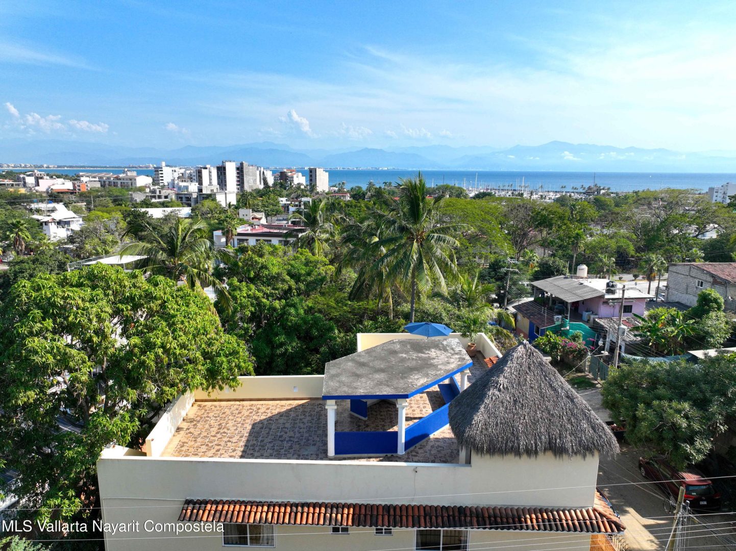ENGLISH BELOW/ LISTA PARA HABITAR-Casa Residencial en La Cruz de Huanacaxtle – 4 Dormitorios, 4 Banos completos, 2 medio banos, 2 plantas y una terraza en la azotea con vista parcial al mar y a la Bahia. Completamente amueblada, con cocina de concepto abierto. Cuenta con balcones en ambos niveles, estacionamiento privado, alberca, con comedor y area de estar al aire libre y jardin. Frente a un camino de acceso sin pavimentar. // TURNKEY-Residential Home in La Cruz de Huanacaxtle – 4 Bedrooms, 4 full bathrooms, 2 half bathrooms, 2 levels and a rooftop terrace with partial views of the ocean and the Bay. Fully furnished, with an open-concept kitchen. Features balconies on both levels, private parking, a swimming pool, outdoor dining and lounge areas and garden. Fronts an unpaved access road.