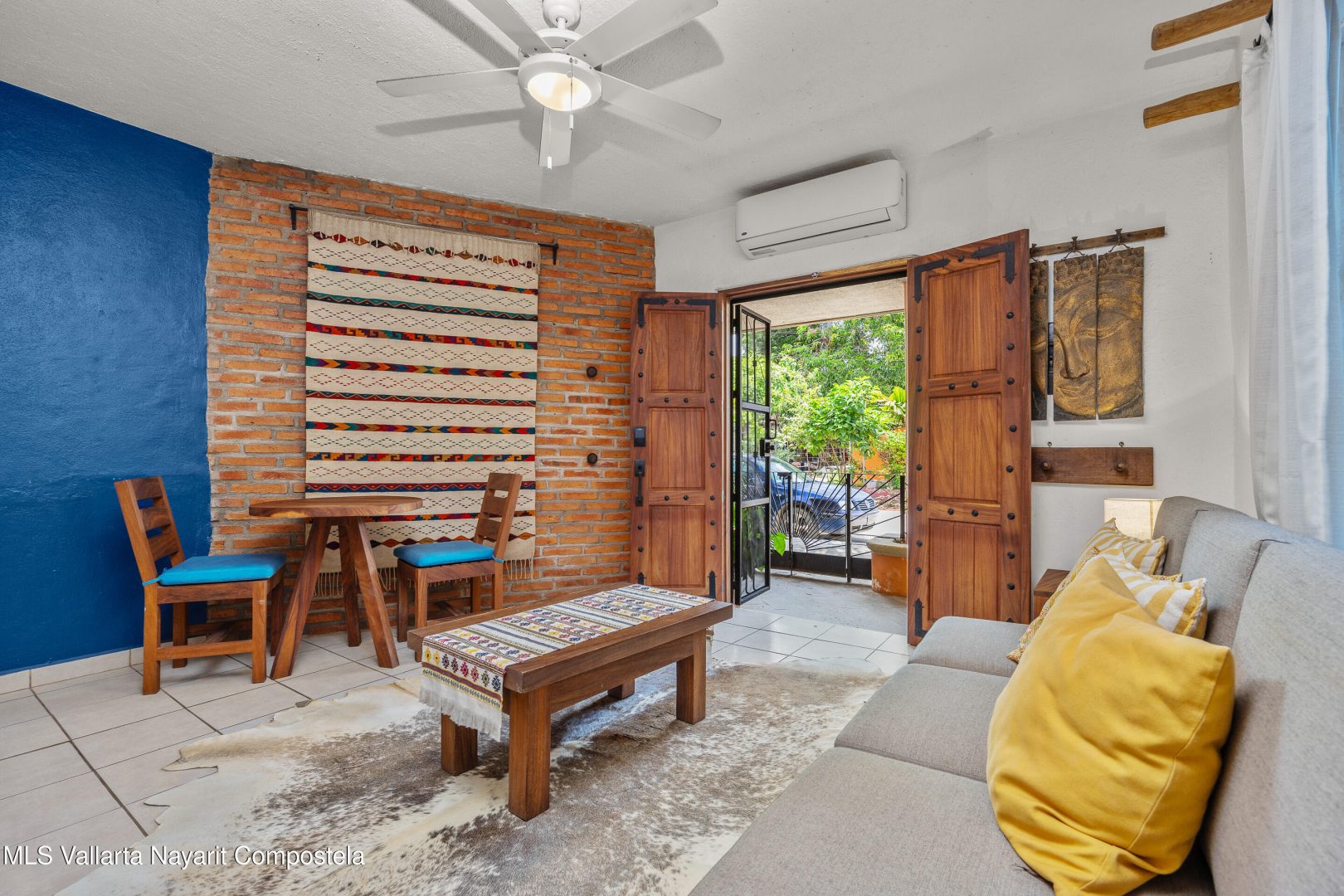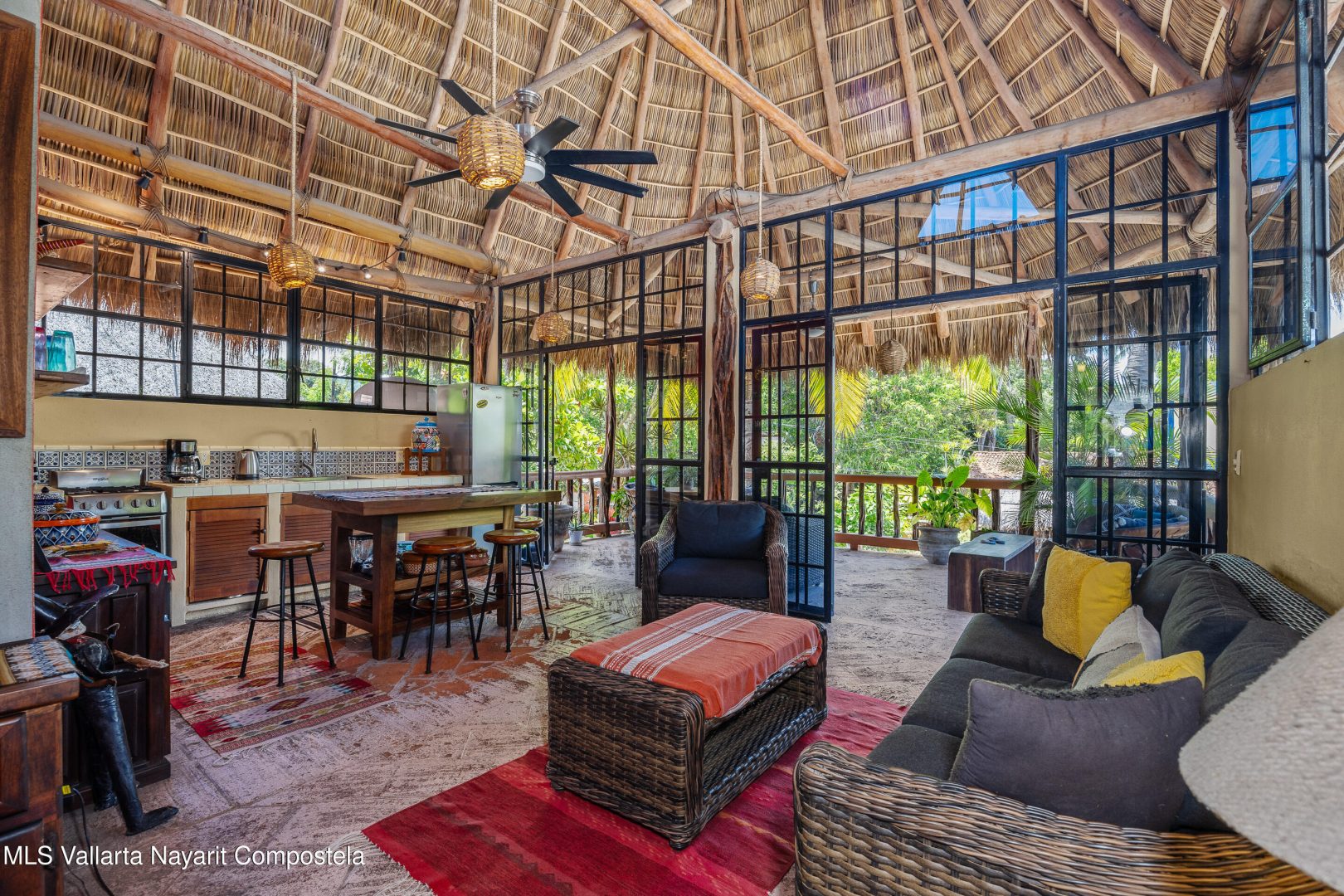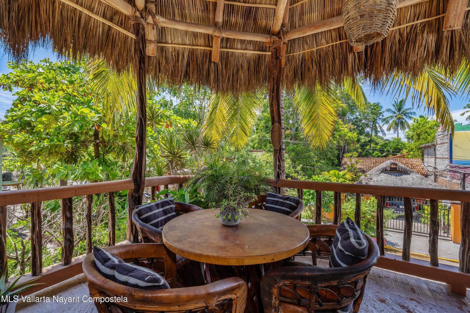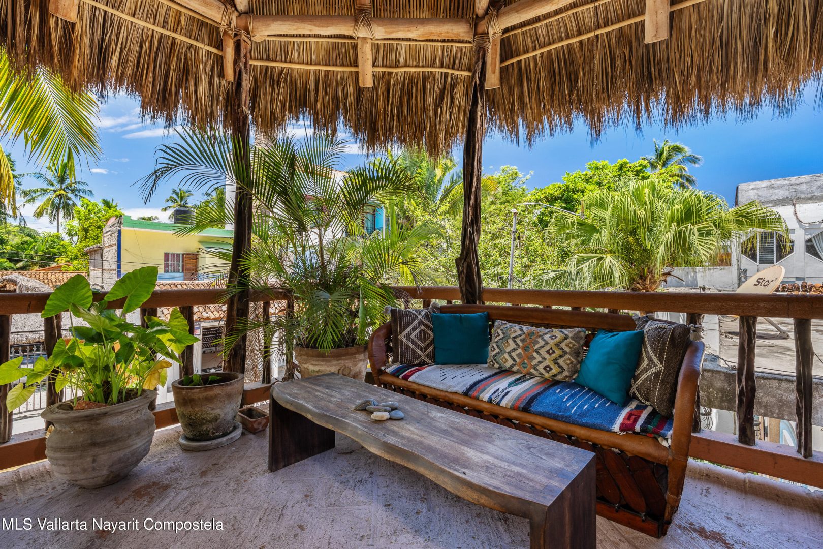 Just three blocks from the sandy shores, this property offers an unbeatable location on the town’s Main Street–placing you steps away from cafes, galleries, and the cultural rhythm that makes San Pancho so special. This unique duplex provides both character and versatility. The ground-floor unit, once a boutique storefront, has been thoughtfully remodeled into a well appointed and comfortable one-bedroom apartment with a full kitchen. Its history as a commercial space also leaves the door open for creative business opportunities. Upstairs, the spacious two-bedroom residence unfolds beneath a soaring palapa roof, a traditional hallmark of the region that brings in natural breezes and tropical charm. The open-concept flow onto a balcony overlooking Main Street.