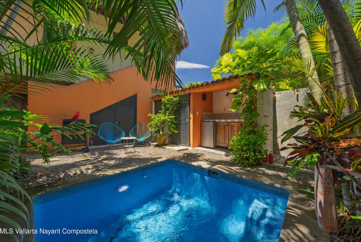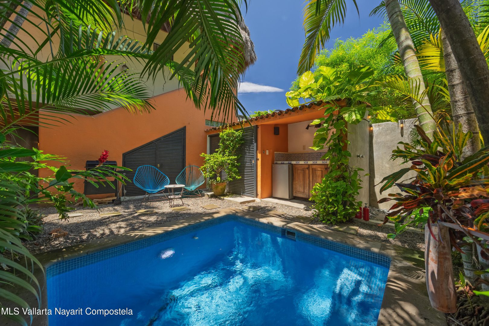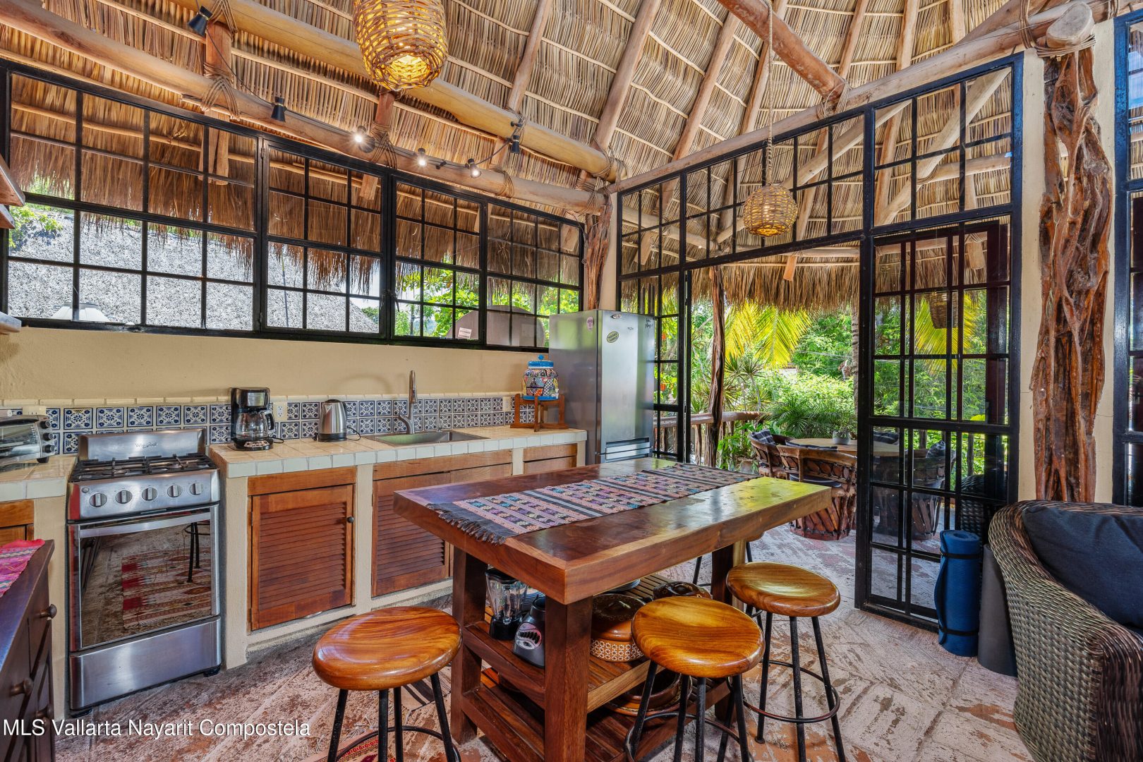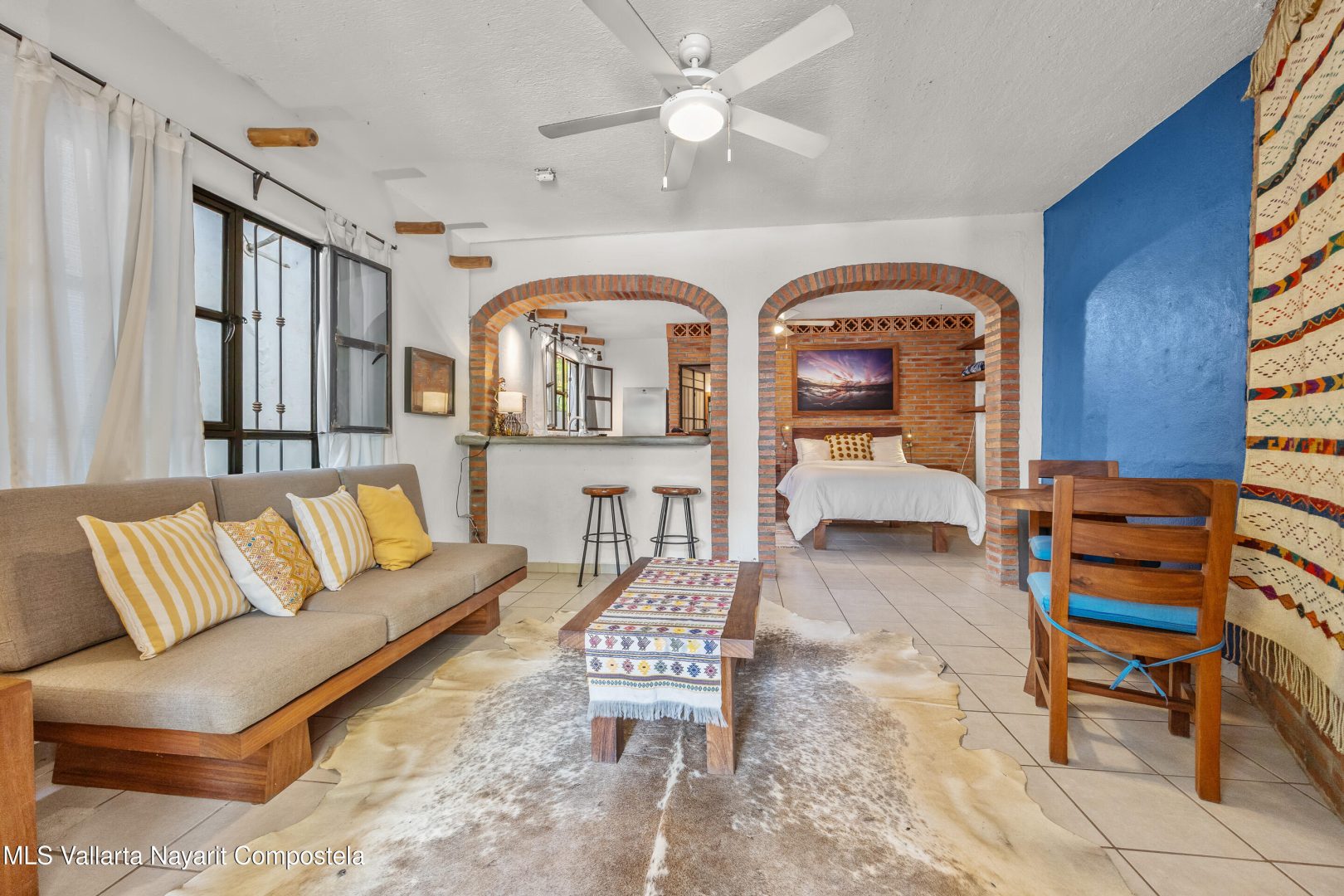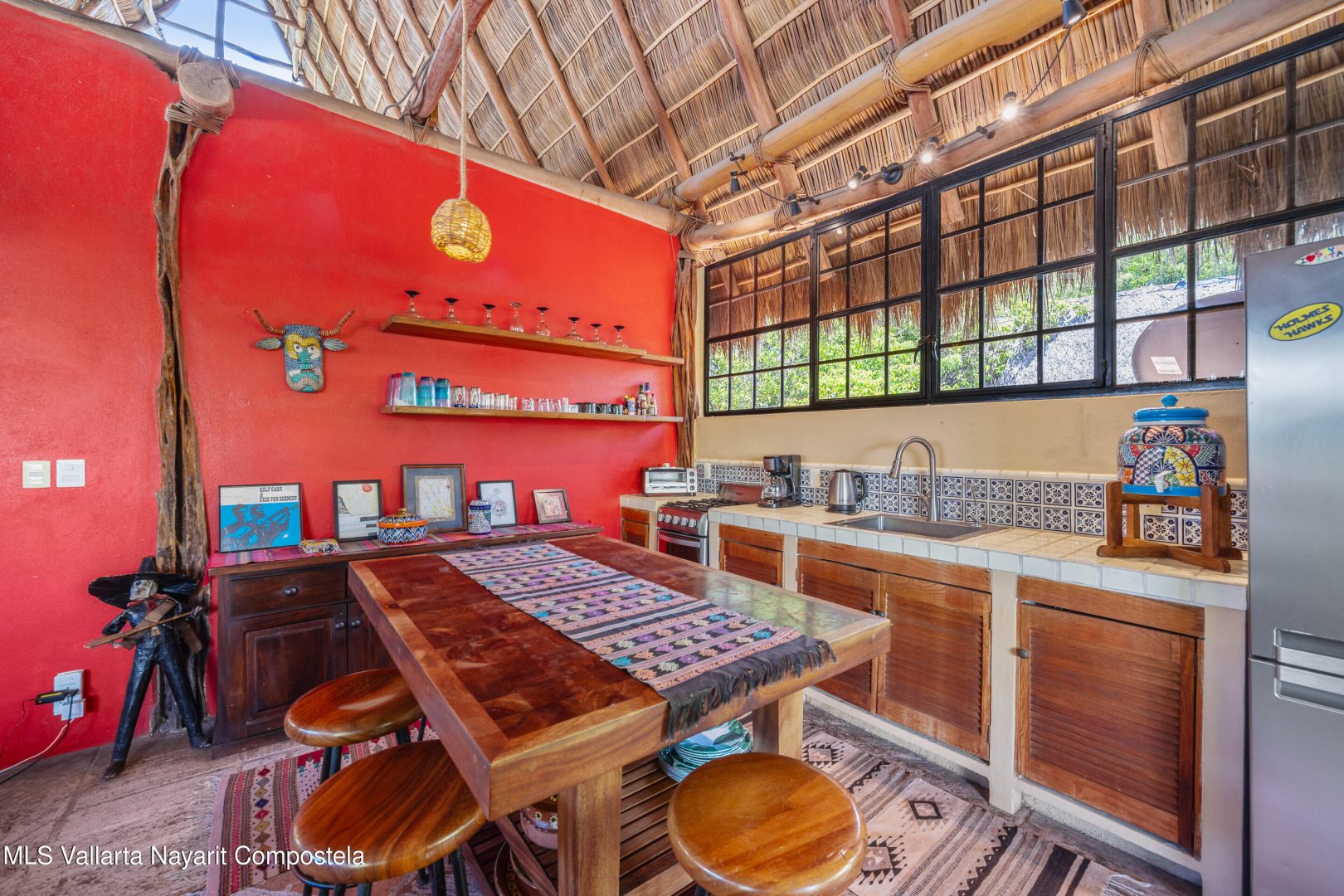 Just three blocks from the sandy shores, this property offers an unbeatable location on the town’s Main Street–placing you steps away from cafes, galleries, and the cultural rhythm that makes San Pancho so special. This unique duplex provides both character and versatility. The ground-floor unit, once a boutique storefront, has been thoughtfully remodeled into a well appointed and comfortable one-bedroom apartment with a full kitchen. Its history as a commercial space also leaves the door open for creative business opportunities. Upstairs, the spacious two-bedroom residence unfolds beneath a soaring palapa roof, a traditional hallmark of the region that brings in natural breezes and tropical charm. The open-concept flow onto a balcony overlooking Main Street.