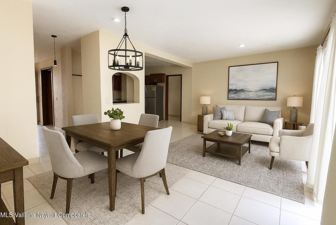 Casa nueva de 2 pisos en Nuevo Ixtapa, Puerto Vallarta, ideal para vivir o invertir. A solo 10-15 min del aeropuerto, esta propiedad cuenta con 3 recamaras, 2.5 banos, cocina de madera, area de lavado independiente y patio trasero listo para personalizar. La recamara principal ofrece bano en suite, aire acondicionado y terraza con vista al area verde. Construccion solida, nunca habitada, sin gravamenes ni cuotas de HOA. Ubicada cerca de supermercados, transporte y servicios. Potencial de crecimiento y expansion a futuro.