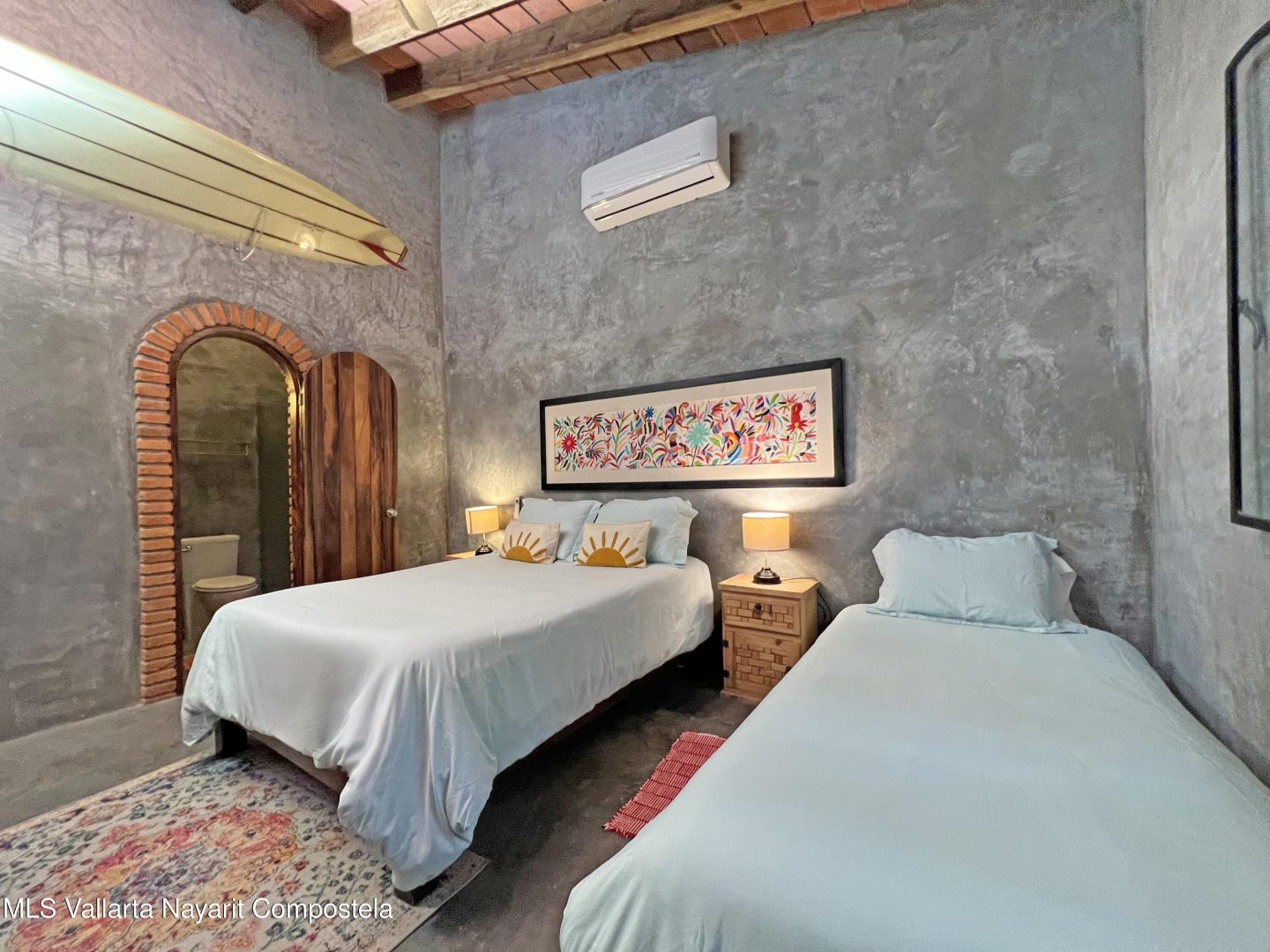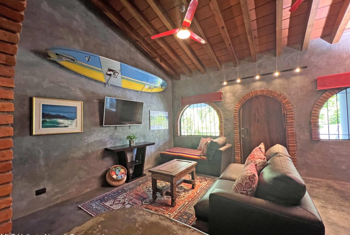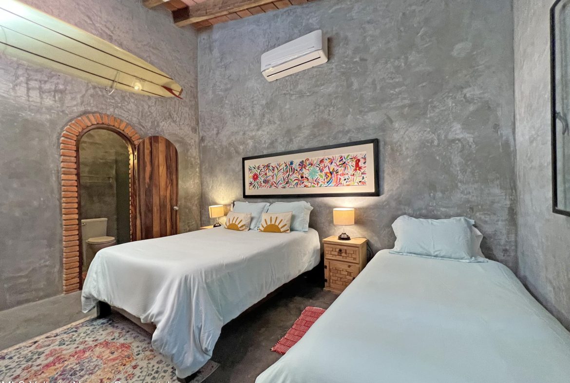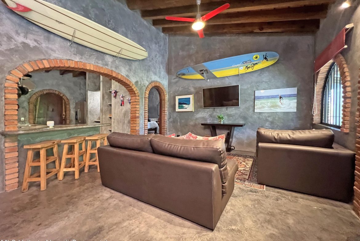 Casa Roberto (Sayulita, Nayarit) If location is everything Casa Roberto is a surfer’s dream … Nestled a couple of hundred meters above the north-side surf break in Sayulita, Casa Roberto sits inside a private walled-in and gated courtyard. The traditional ejido design was built brand new from the foundation up with all modern amenities; gourmet kitchen, beamed ceilings, tile roof, two en suites — both with full baths — living room, dining room and a wrap around porch. The 967 sq meter lot boasts a spacious yard, great for pets of all sizes with plenty of room for a pool. Casa Roberto has a basketball/pickleball court and an exotic garden shaded by a spectacular higuera (fig tree.