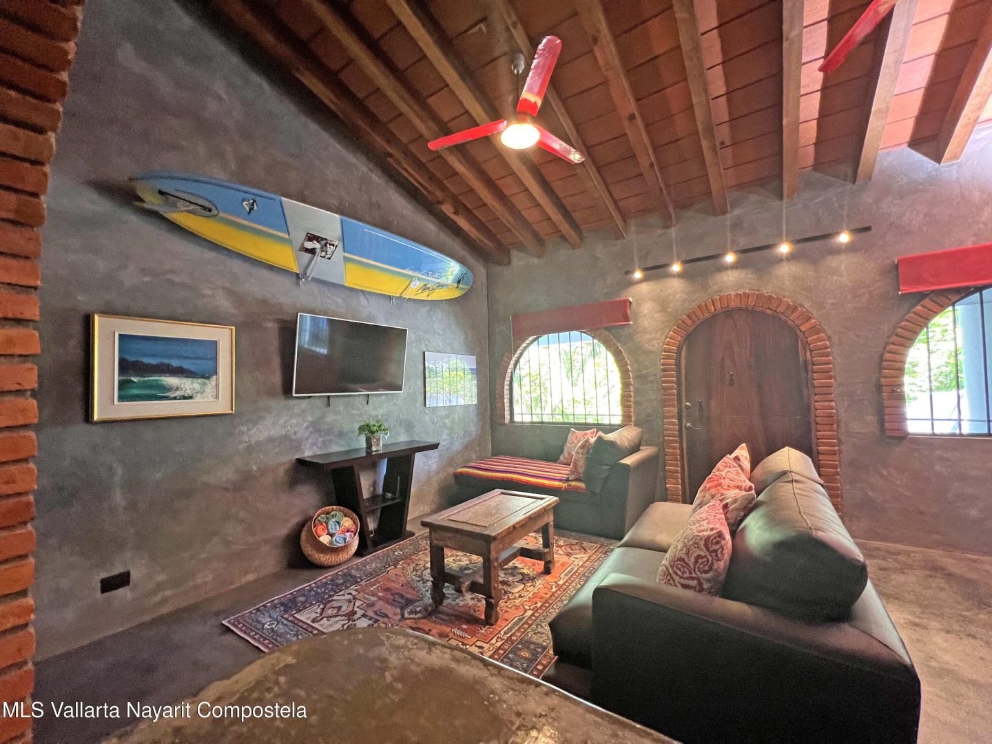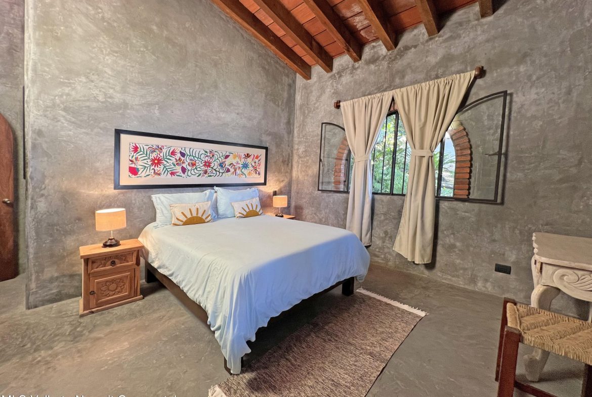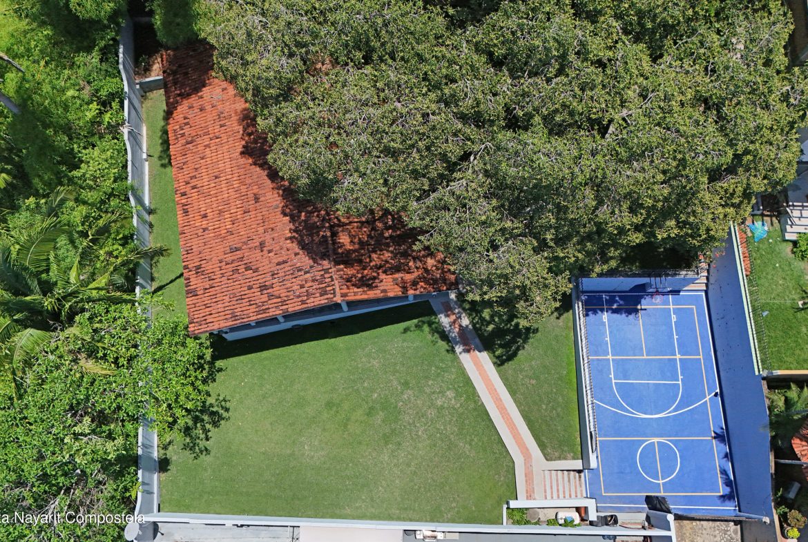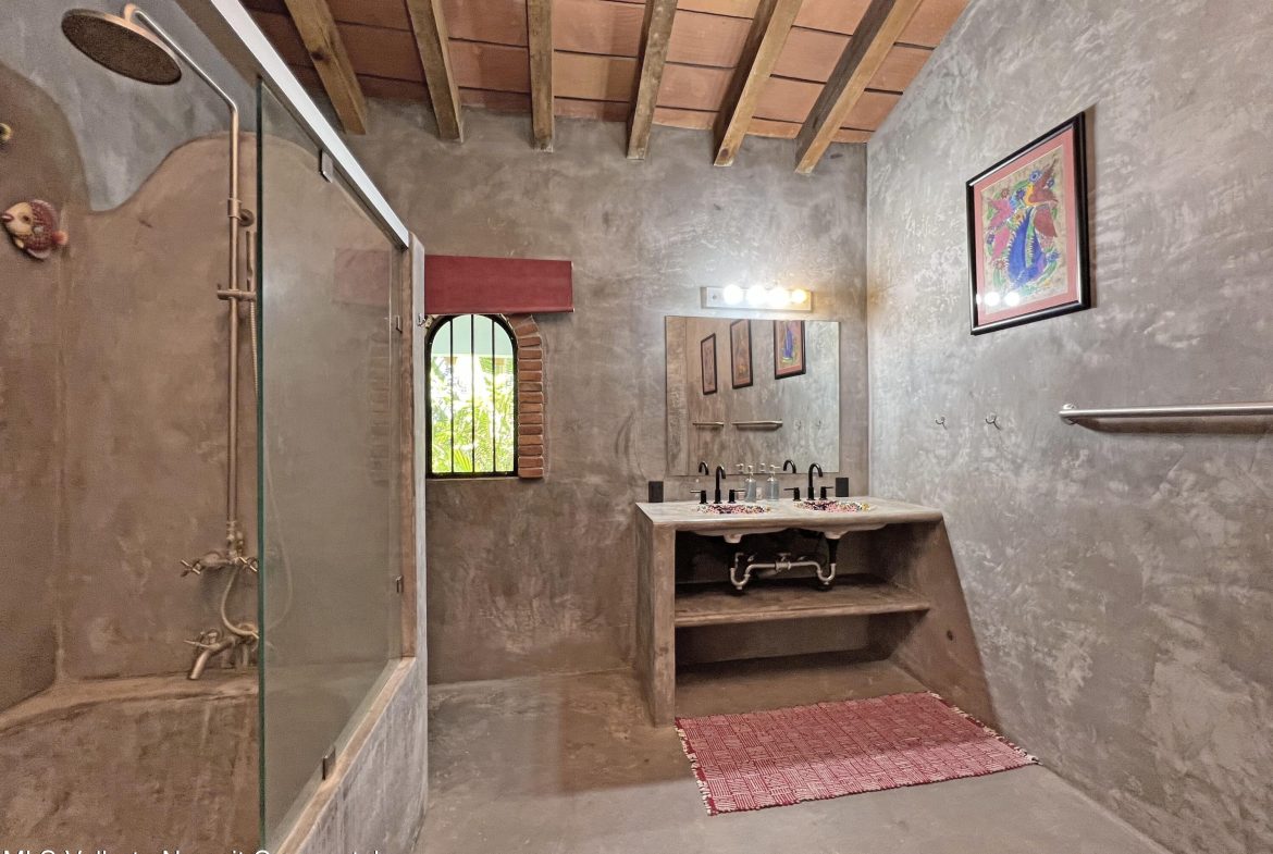 Casa Roberto (Sayulita, Nayarit) If location is everything Casa Roberto is a surfer’s dream … Nestled a couple of hundred meters above the north-side surf break in Sayulita, Casa Roberto sits inside a private walled-in and gated courtyard. The traditional ejido design was built brand new from the foundation up with all modern amenities; gourmet kitchen, beamed ceilings, tile roof, two en suites — both with full baths — living room, dining room and a wrap around porch. The 967 sq meter lot boasts a spacious yard, great for pets of all sizes with plenty of room for a pool. Casa Roberto has a basketball/pickleball court and an exotic garden shaded by a spectacular higuera (fig tree.