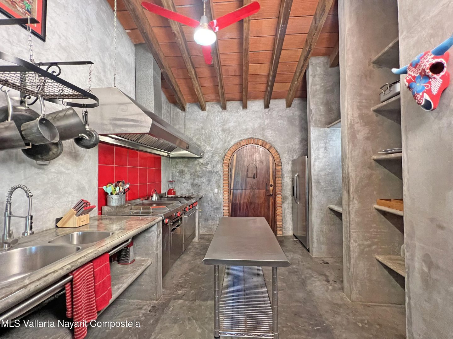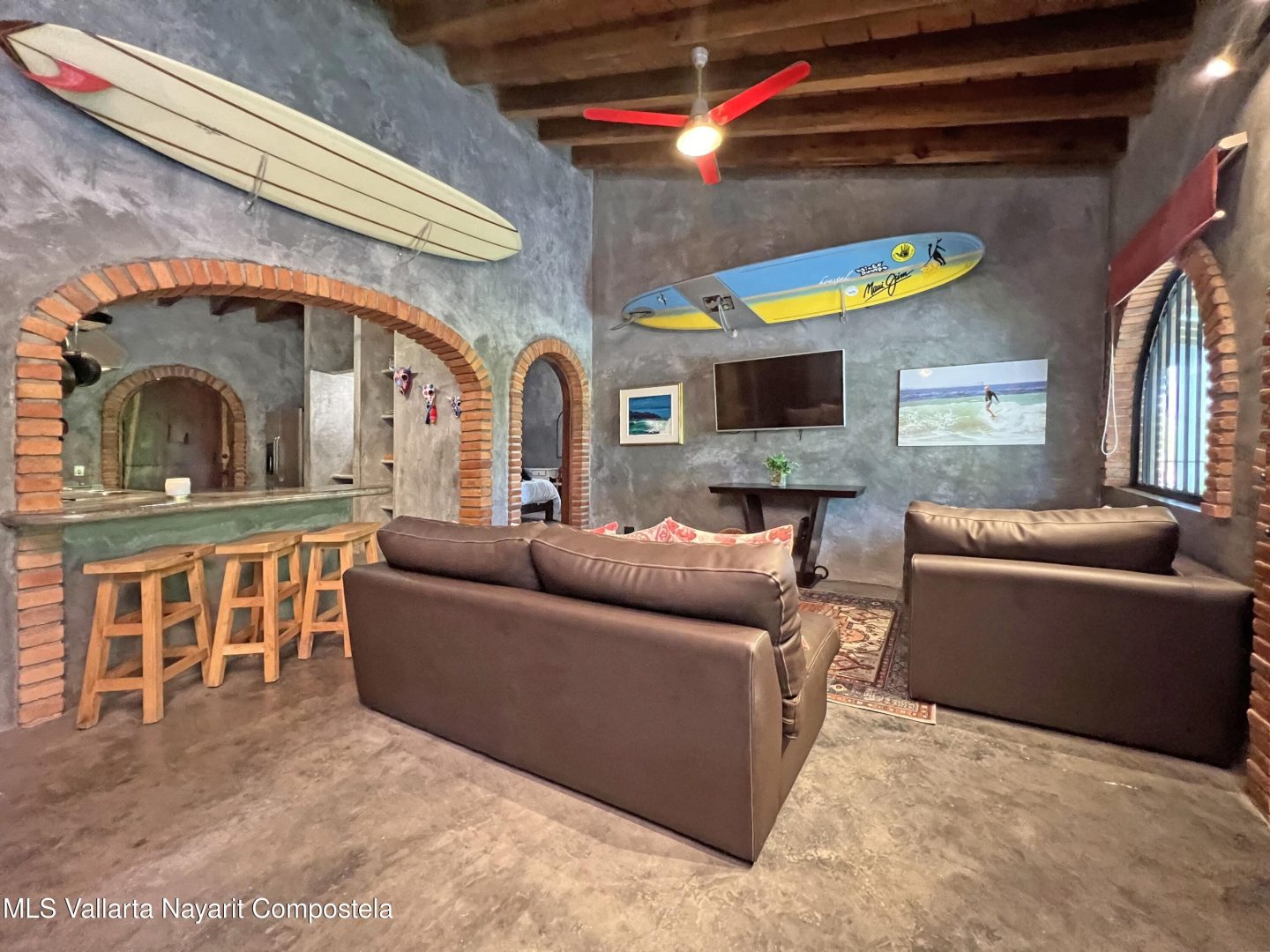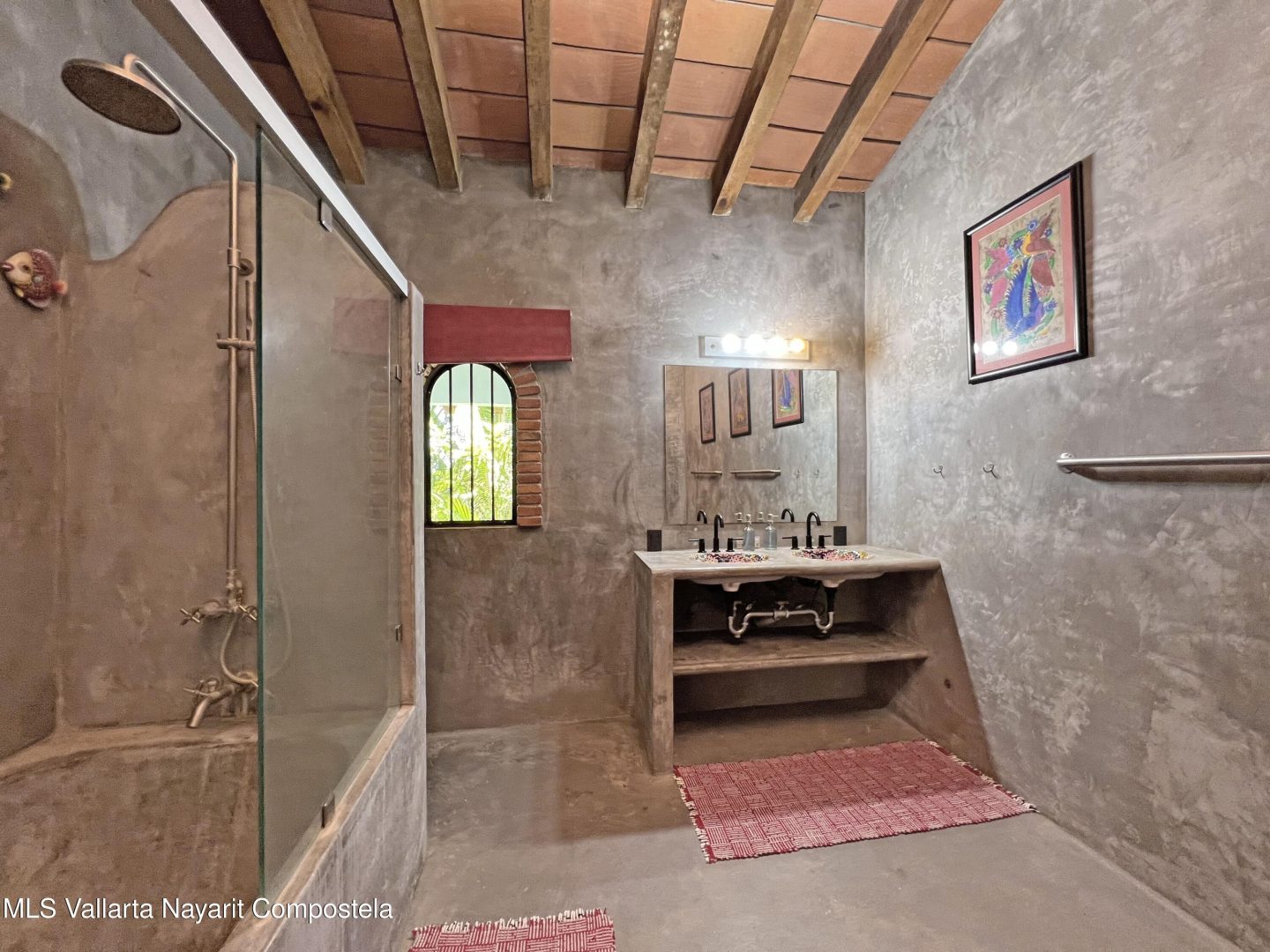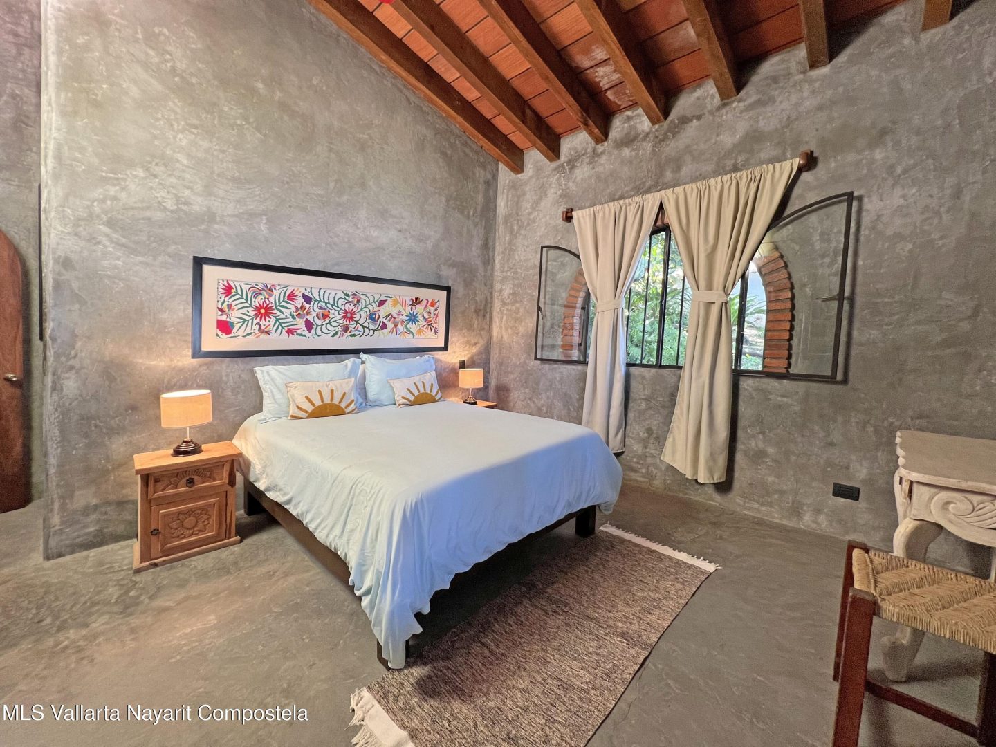 Casa Roberto (Sayulita, Nayarit) If location is everything Casa Roberto is a surfer’s dream … Nestled a couple of hundred meters above the north-side surf break in Sayulita, Casa Roberto sits inside a private walled-in and gated courtyard. The traditional ejido design was built brand new from the foundation up with all modern amenities; gourmet kitchen, beamed ceilings, tile roof, two en suites — both with full baths — living room, dining room and a wrap around porch. The 967 sq meter lot boasts a spacious yard, great for pets of all sizes with plenty of room for a pool. Casa Roberto has a basketball/pickleball court and an exotic garden shaded by a spectacular higuera (fig tree.