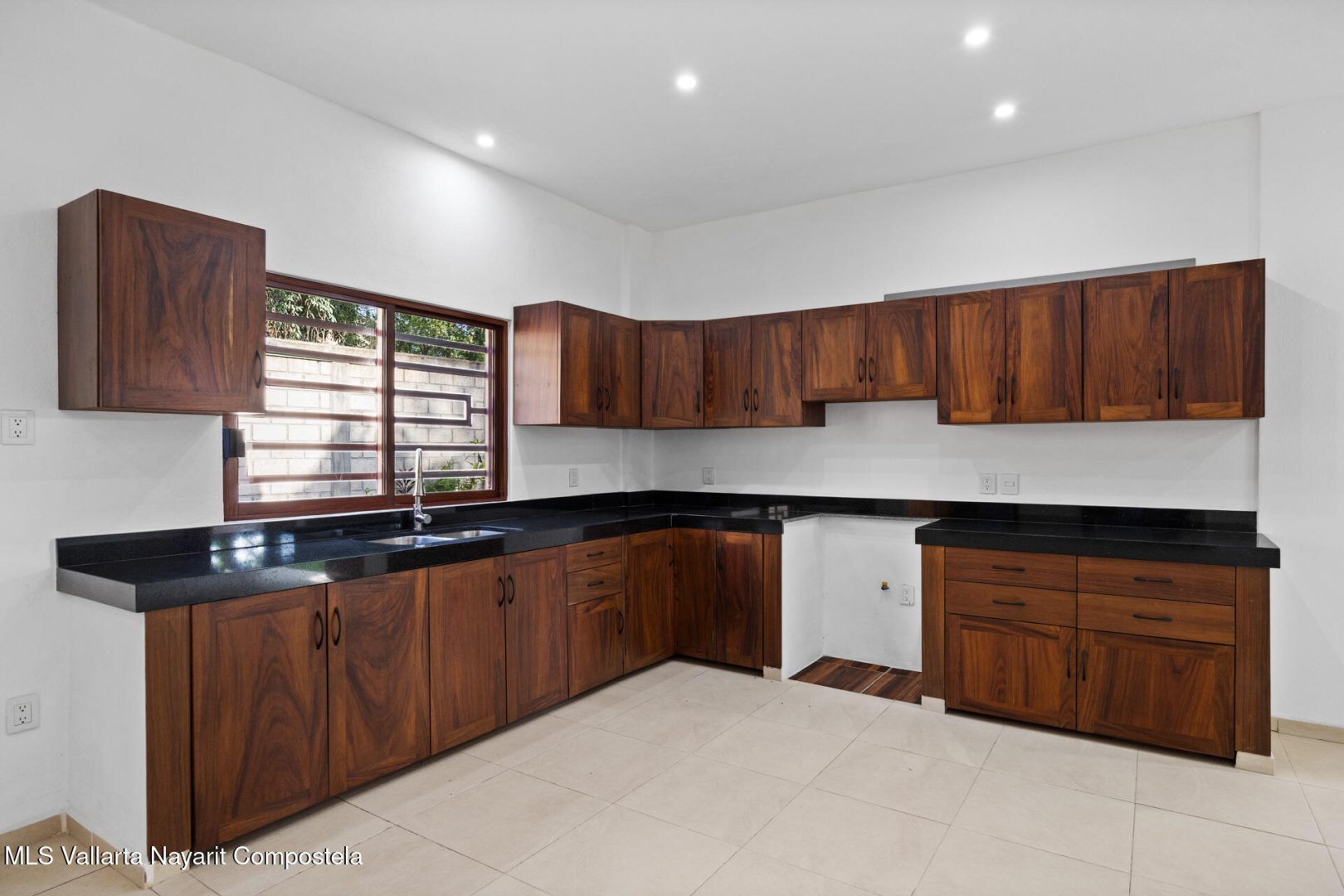 Casa nueva de 1 solo nivel con gran jardin lateral, en una zona tranquila y de muy facil acceso. La casa tiene posibilidad de crecimiento en un segundo nivel. Cuenta con espacio abierto de sala-comedor, la cocina con cubierta de granito negro y carpinteria de parota. Muy bien iluminada y ventilada naturalmente. 2 recamaras y la principal con bano y closet -vestidor incluidos. Espacio de lavanderia y closet.