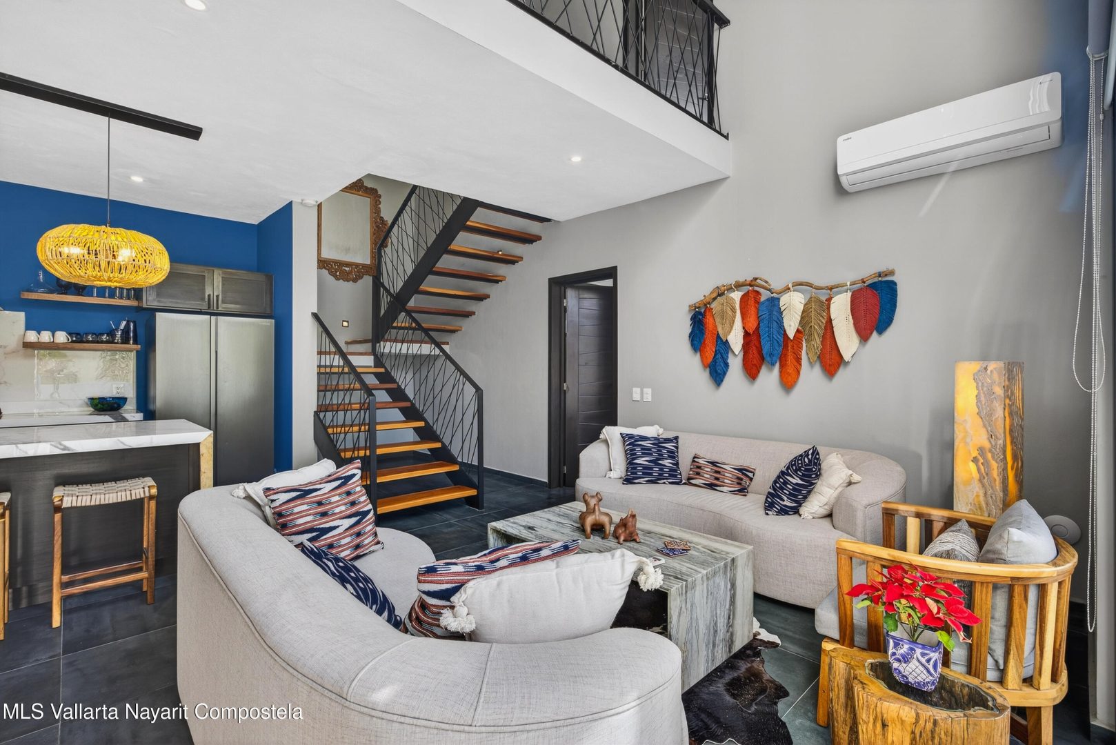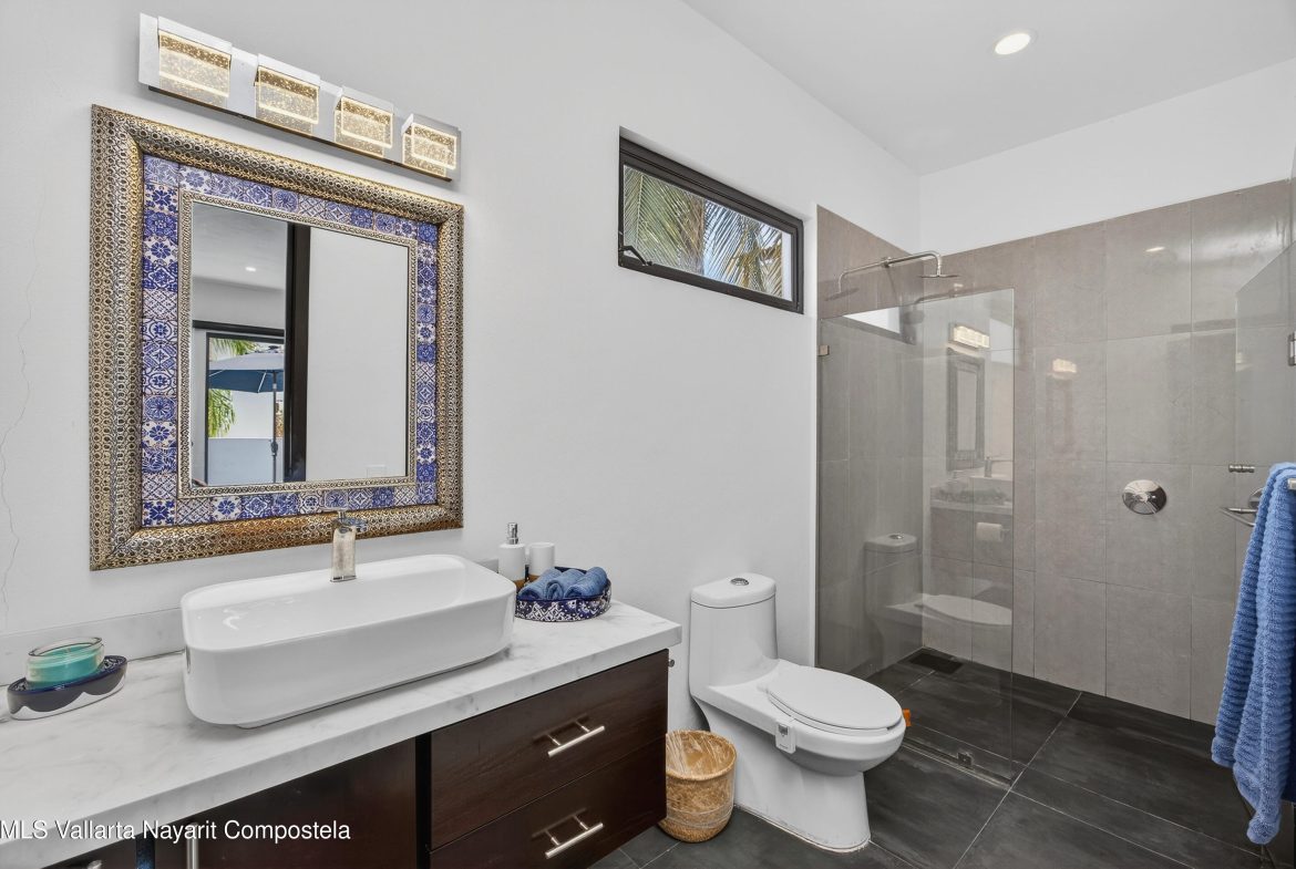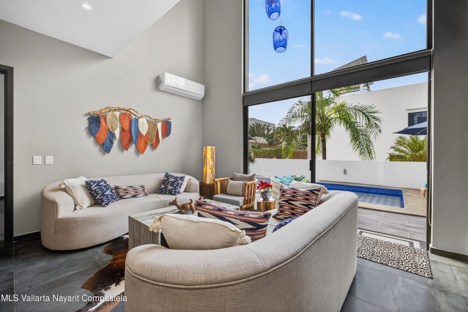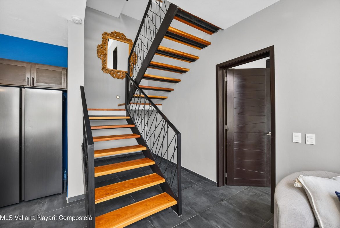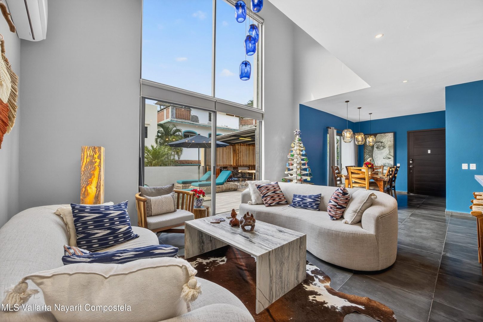 Casa Sol y Danza is a new modern home with ample natural light, an open kitchen with large prep island and open shelving. The focal point of the kitchen and living area is through large windows and sliding doors that open to a beautiful ornate pool complete with a shallow end for kids and/or just chillin’ with margaritas, surrounded by a large patio and outdoor bar lounge. It has three bedrooms, 3.5 bathrooms and a flex room that could be used as a gym, office, kids playroom or AV room. There is potential to put a pergola on the roof to catch evening sunsets reflected off the mountains that border the South end of San Pancho beach. Casa Sol y Danza is a 10 minute flat walk to the beach and all San Pancho restaurants and shops.