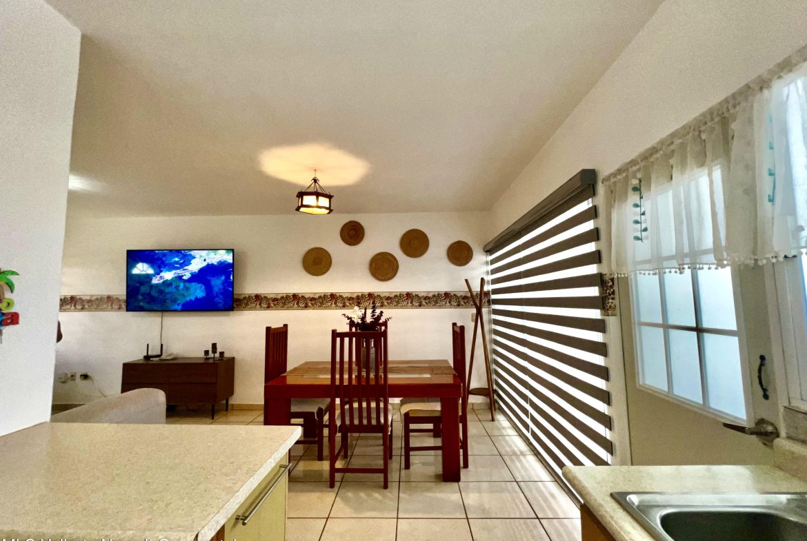 Casa en venta en Las Ceibas en el Coto Poseidon, dos niveles con sala-comedor, cocina integral, bano completo, patio de servicio y estacionamiento para 2 autos; en planta alta cuenta con 3 recamaras y 1 bano completo, la principal con balcon y las secundarias con vista a la montana. Equipada con aire acondicionado. Ubicada en fraccionamiento consolidado con rapido acceso a Puerto Vallarta, Riviera Nayarit, aeropuerto, autopista, restaurantes y plazas comerciales. El precio de venta es en Moneda Nacional: $4,100,000.00 MXN.
