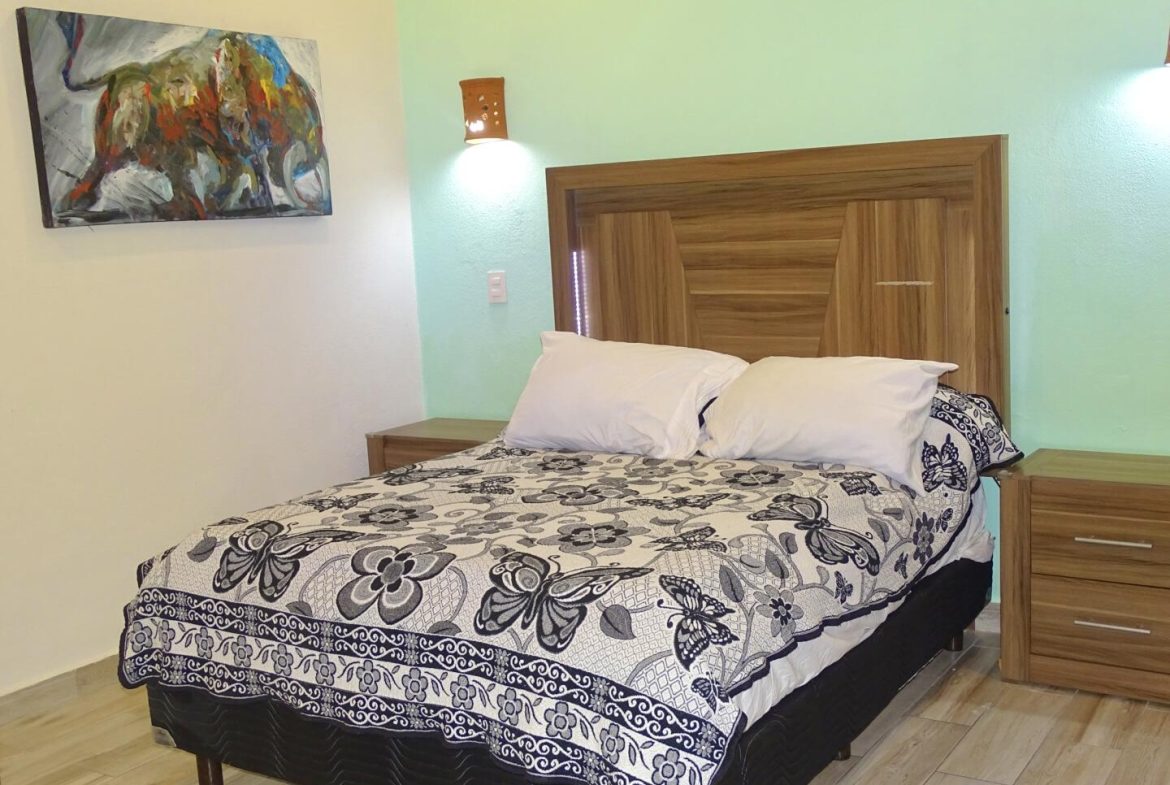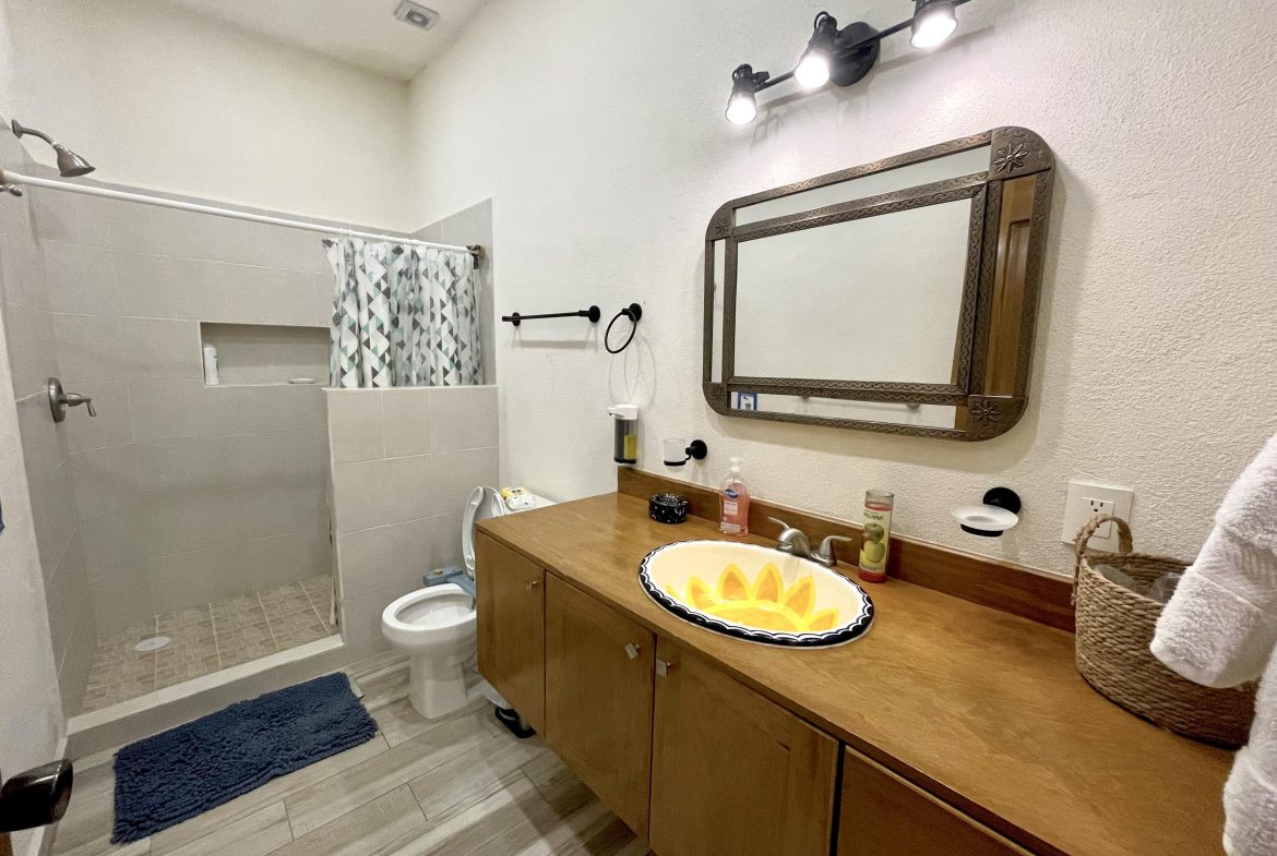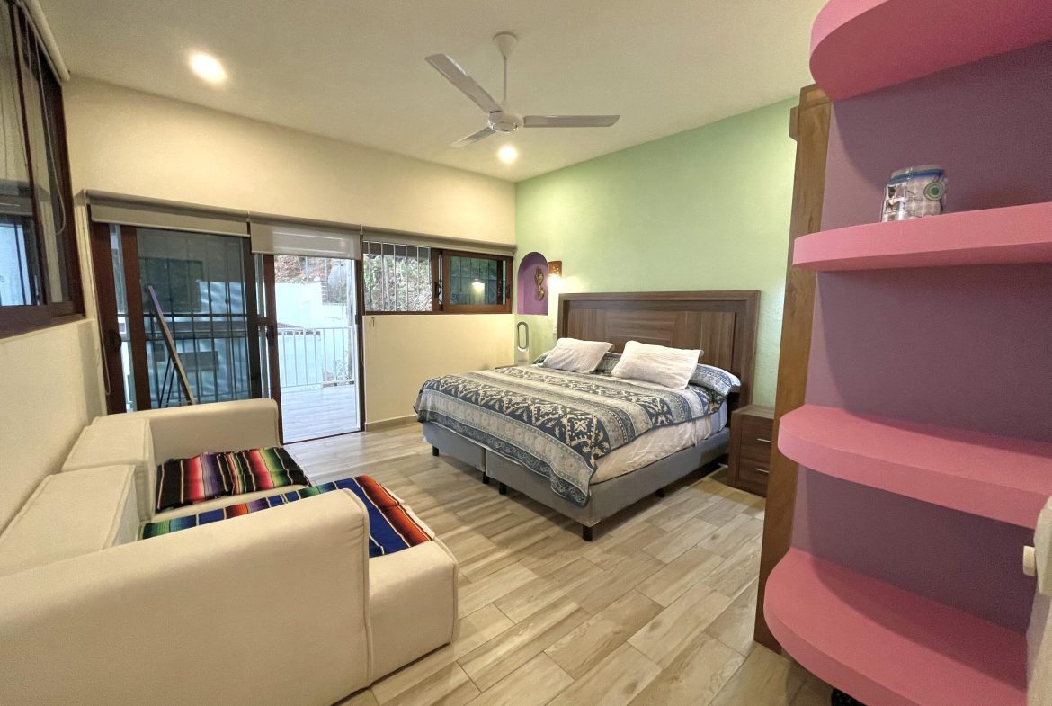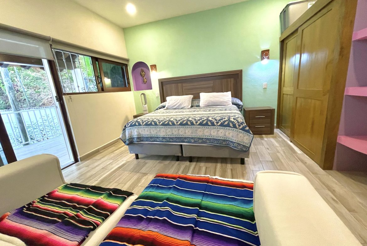 Casa Soles is a completely new property built with the efforts of a beautiful family that has decided to share this beautiful place with you. Located very close to the heart of Puerto Vallarta, It has 3 bedrooms, one of them on the ground floor, 2 bathrooms, two levels with high ceilings plus a terrace, tremendous view of the bay from the large rooftop terrace (The master bedroom has its own balcony and view as well). Large fenced in and very secure backyard that overlooks the jungle. Outside stairs lead to the large roof terrace which also has a covered cabana with wifi where one can sit and eat / drink / relax. 5 blocks from the beach, and 8 from the MalecAn (main promenade shops and restaurants).