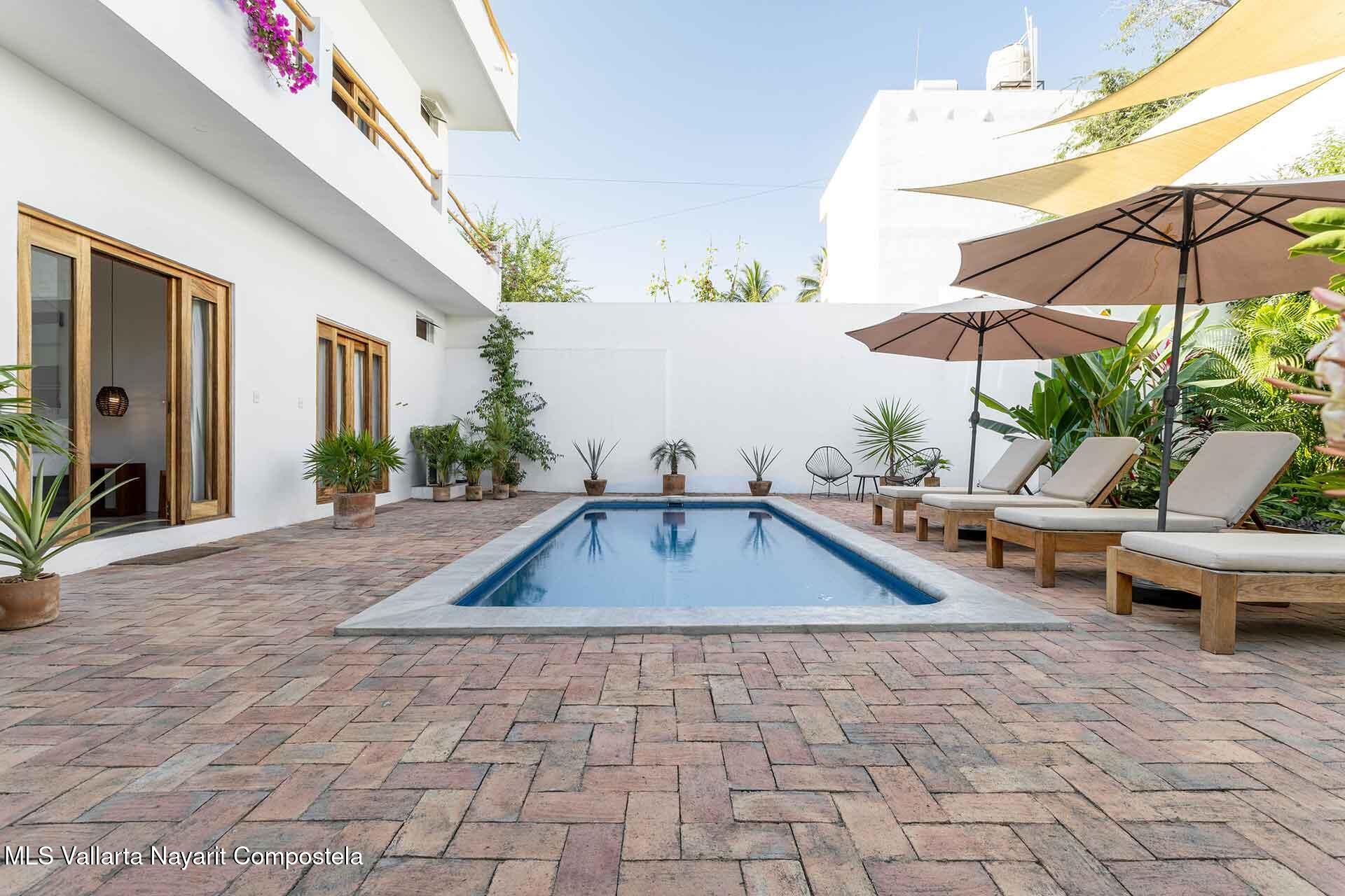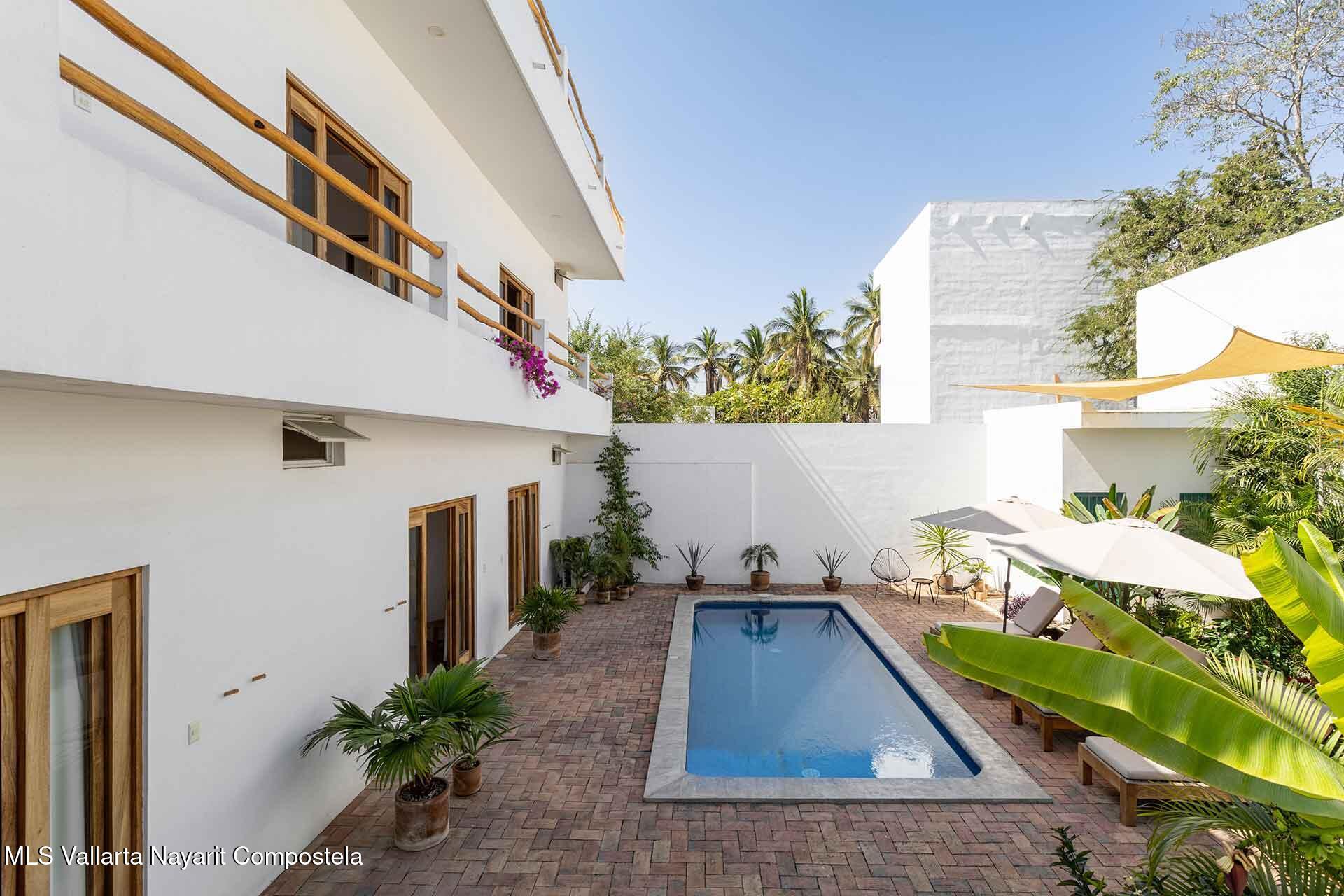 Casa Tienkei is a beautifully designed two-level home located on Luis Echeverria Street in the heart of Lo de Marcos, just 80 meters from the beach. Built with quality craftsmanship and a foundation ready for a future third floor, the property features four en-suite bedrooms, open living and dining spaces with ocean views, a pool and tropical garden, and a rooftop terrace overlooking the Pacific, town, and mountains. Thoughtfully equipped with solar panels, efficient A/C units, and sold fully furnished, Casa Tienkei offers a seamless blend of beachside living and strong investment potential, ideal as a private residence, vacation rental, or live-and-host property.