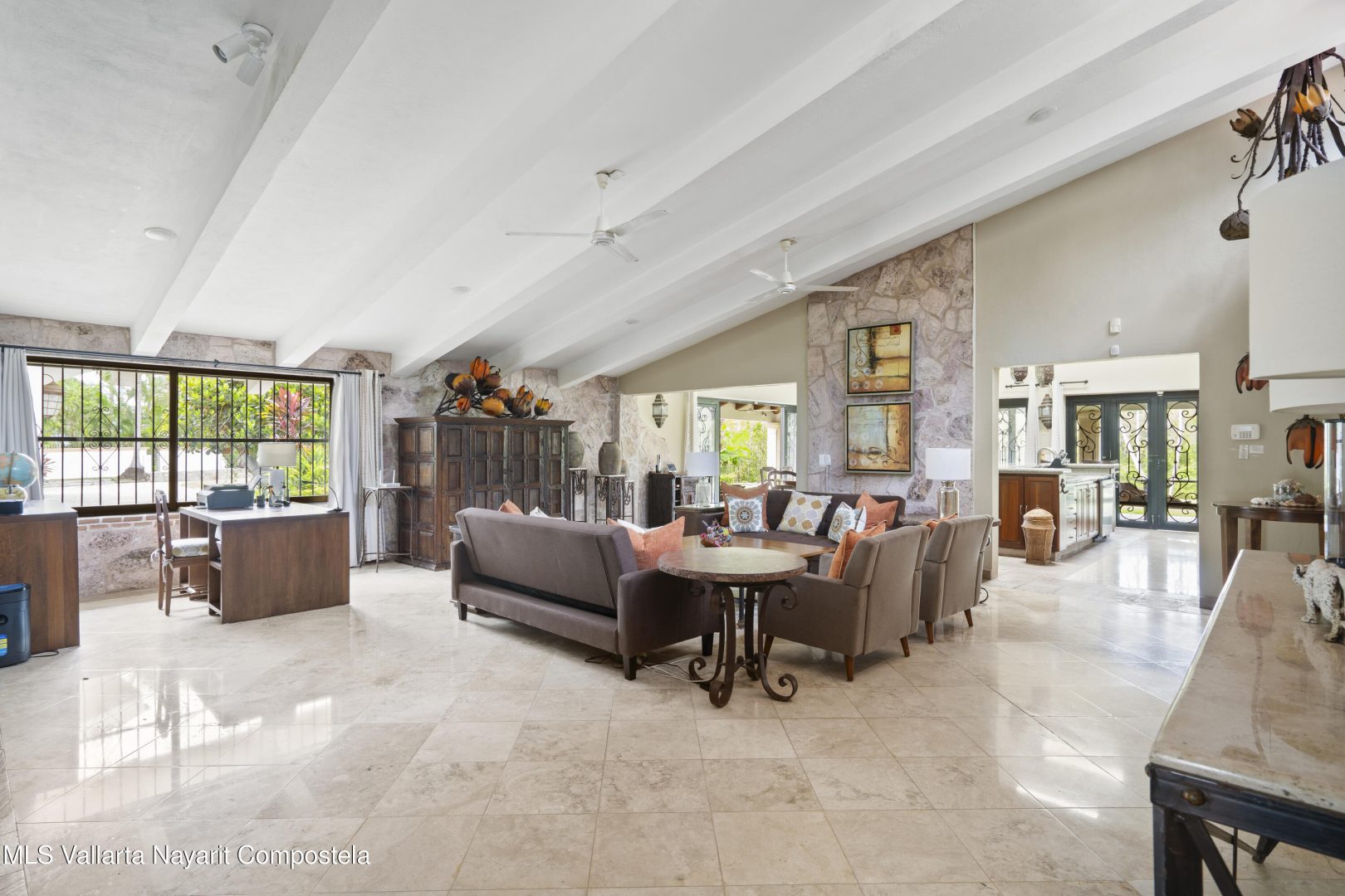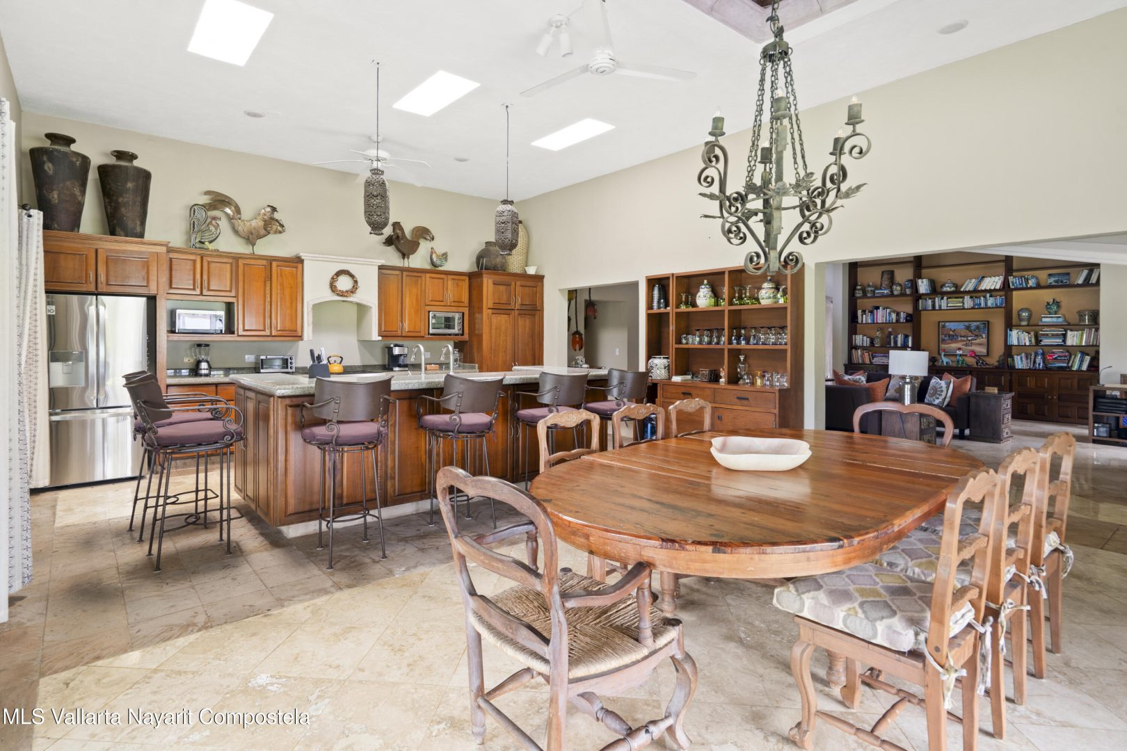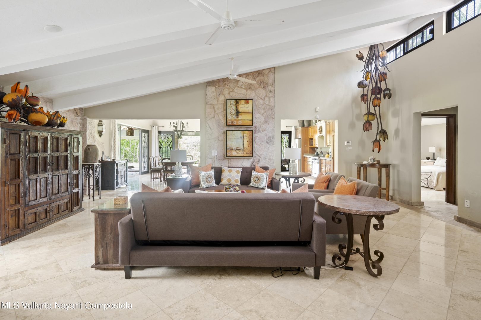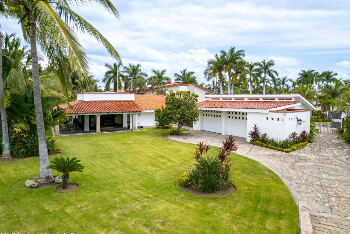 Beautiful house in Nuevo Vallarta with a view to a huge garden area full of trees, palm trees and also the natural canal! This is a single level house, it has carport for 2 cars, huge garage/storage, with a boat included! Beach? The closest is just 9 min away by car. Garden area has a charcoal BBQ grill and a small dock where you can park your boat. This house also offers a separated maids living quarter, there is a security guard at the entrance of the residential and very impotant to mention that this property used to be 2 lots! That is why it has such a outside space.Nuevo Vallarta area is well known for its large sidewalks where you can walk with your pets, jog or be on your bicylce. Also, its one of the neighborhoods that has a lot of restaurants, bars and coffeshops