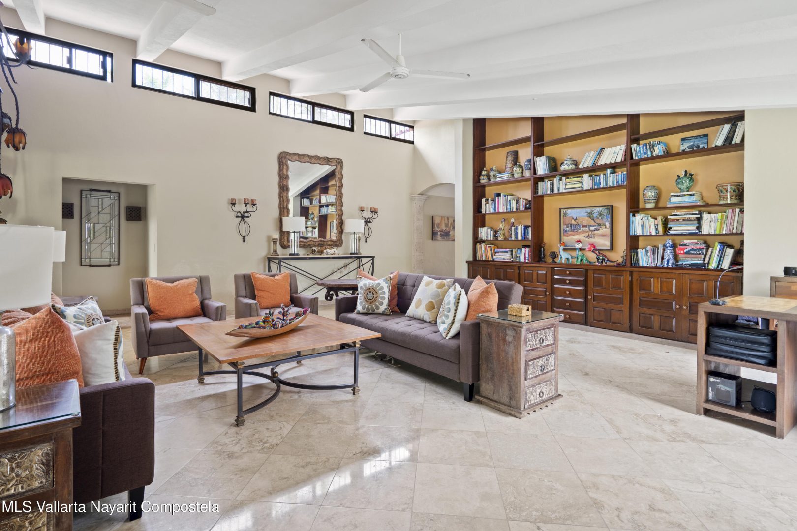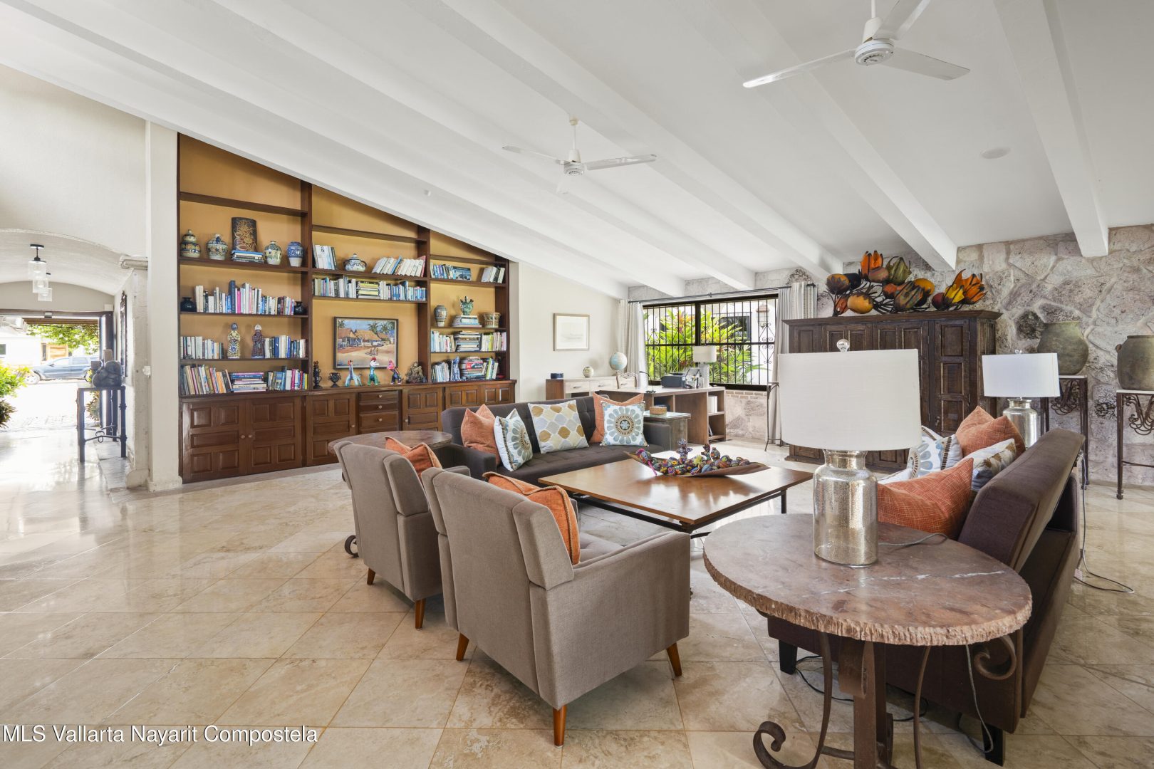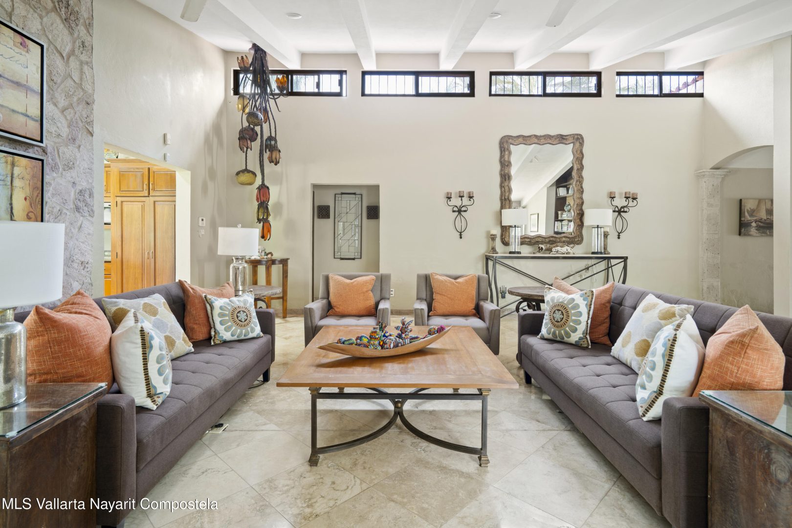 Beautiful house in Nuevo Vallarta with a view to a huge garden area full of trees, palm trees and also the natural canal! This is a single level house, it has carport for 2 cars, huge garage/storage, with a boat included! Beach? The closest is just 9 min away by car. Garden area has a charcoal BBQ grill and a small dock where you can park your boat. This house also offers a separated maids living quarter, there is a security guard at the entrance of the residential and very impotant to mention that this property used to be 2 lots! That is why it has such a outside space.Nuevo Vallarta area is well known for its large sidewalks where you can walk with your pets, jog or be on your bicylce. Also, its one of the neighborhoods that has a lot of restaurants, bars and coffeshops