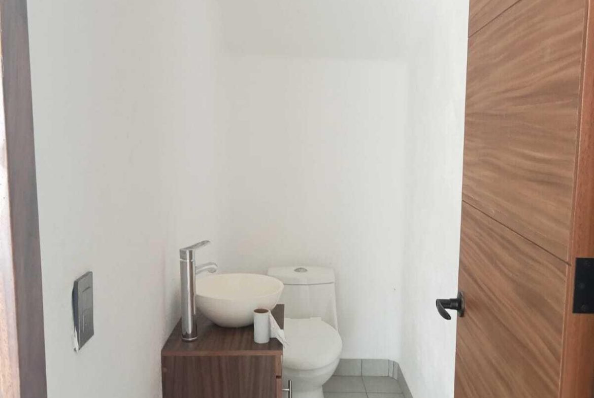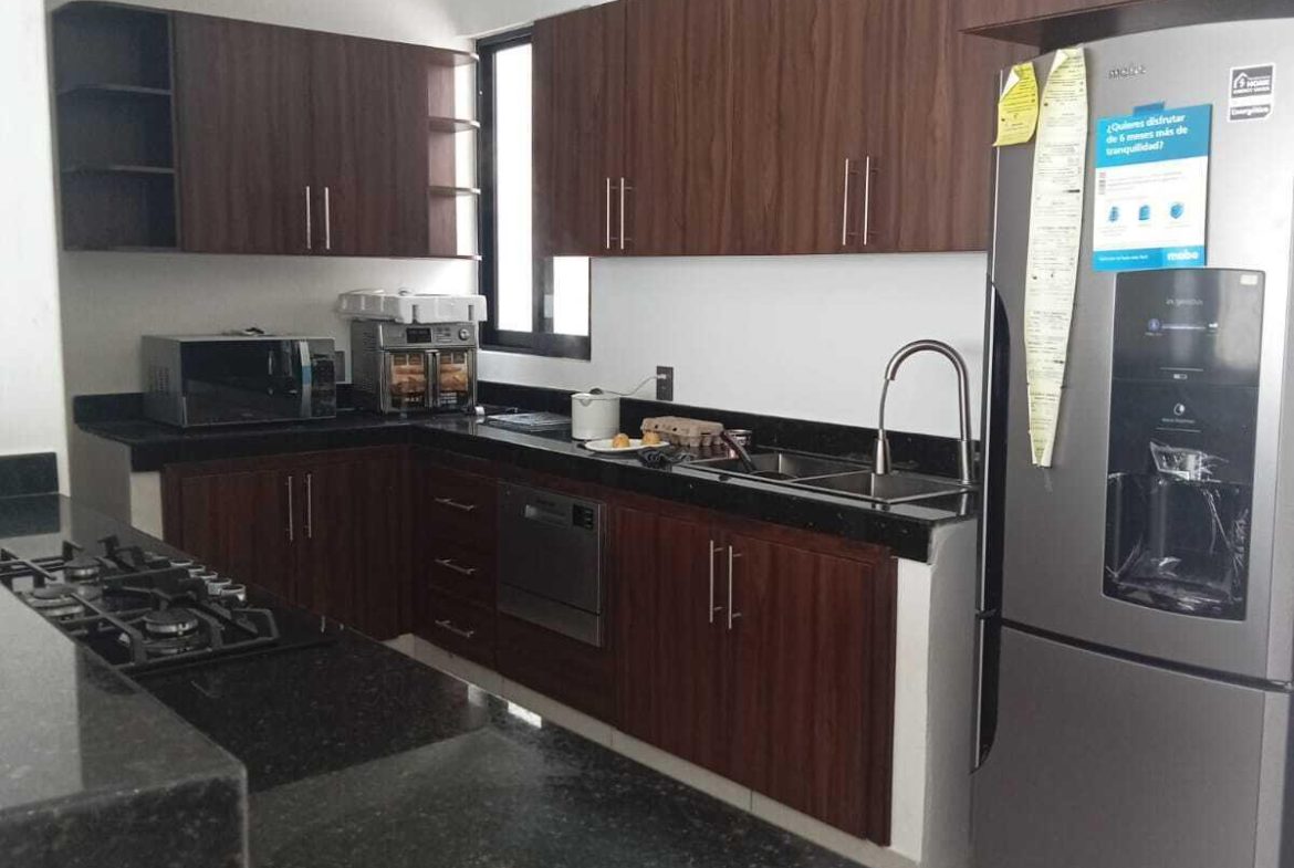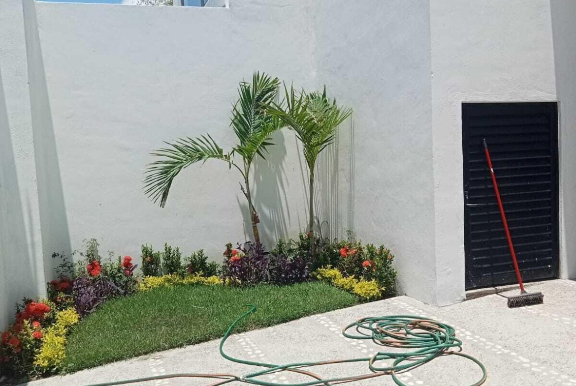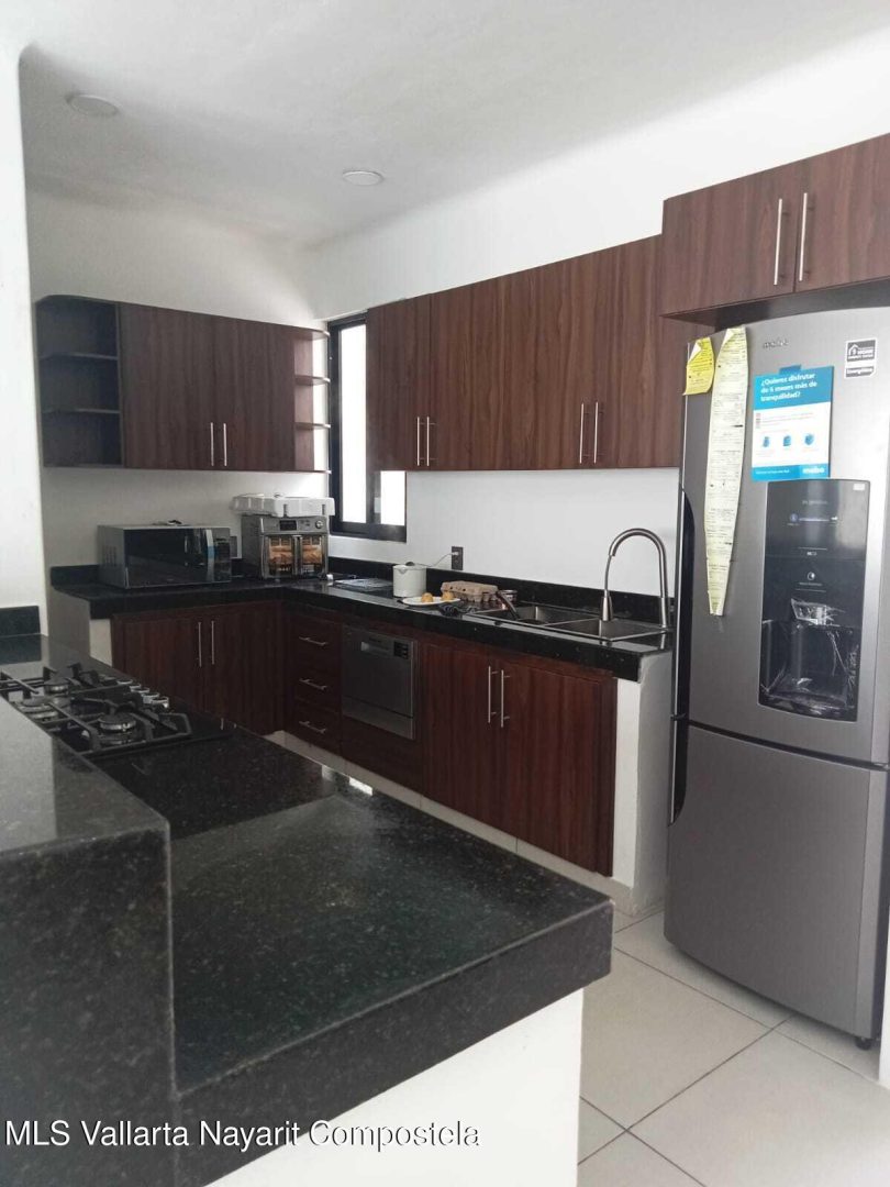 5 recamaras: en planta baja se encuentra una recamara principalcon vestidor, jardin privado y bano de lujo con doble inodoro y doble lavamanos, ademas de dosrecamaras secundarias con acceso independiente y bano compartido. En planta alta, hay dosrecamaras adicionales que comparten un bano completo, una de ellas equipada con cocineta, idealpara huespedes, renta o personal de servicio. La casa tambien dispone de una amplia sala-comedorcon elegante muro lloron, cocina integral con cubierta de granito, alberca privada, terraza en plantaalta, estacionamiento para dos autos, muros altos que garantizan privacidad y confort, y cercaelectrica para mayor seguridad. Su ubicacion es privilegiada: a solo 10 minutos de la playa y a unacuadra de la carretera federal.