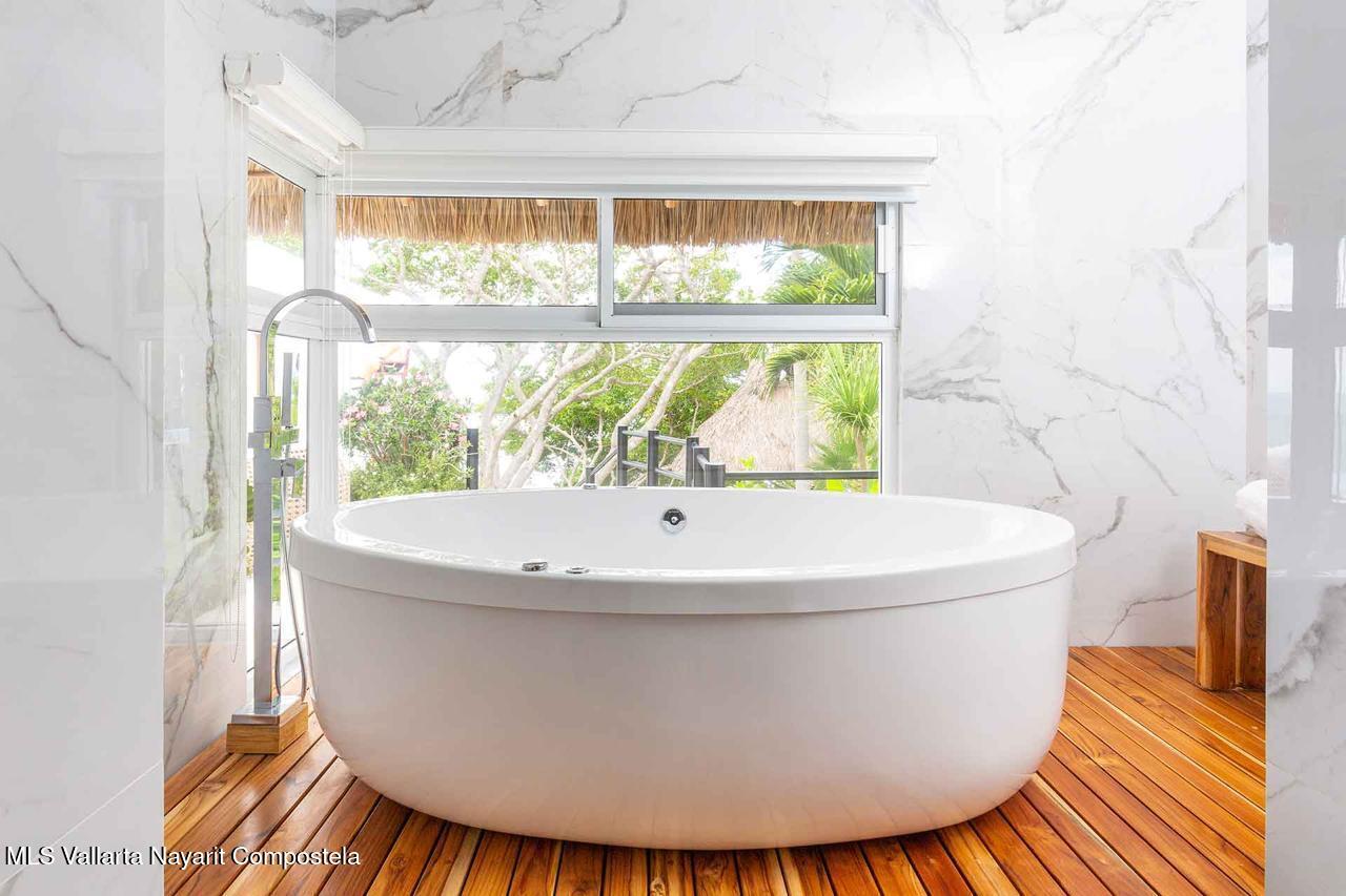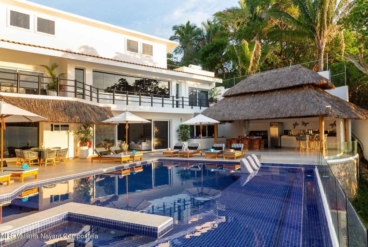 Perched dramatically above the Pacific on one of San Pancho’s most coveted cliffside locations, this fully remodeled luxury estate offers sweeping ocean views from nearly every room and direct private stair access to a secluded beach. Designed for refined coastal living and effortless entertaining, the property includes a stunning main residence and two beautifully appointed guest casitas.