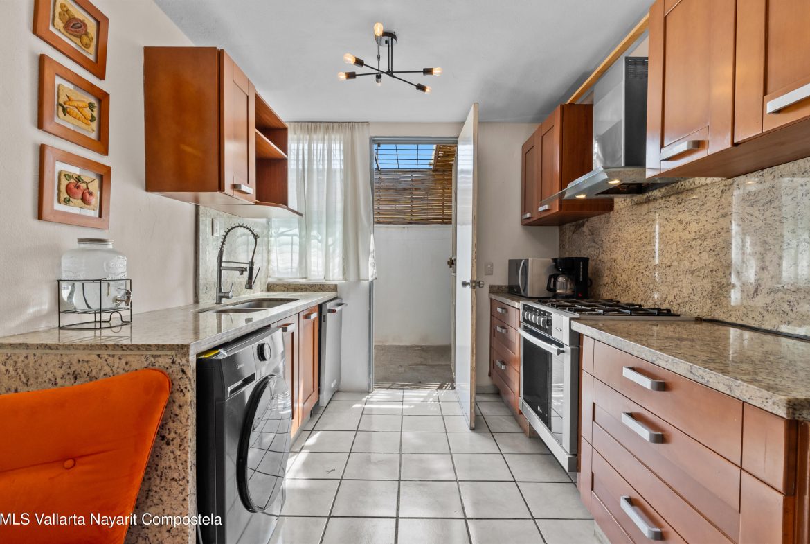 Ubicada en uno de los fraccionamientos mas buscados de Bahia de Banderas, esta propiedad destaca por su excelente ubicacion y alto potencial de plusvalia. Su entorno permite disfrutar de una vida practica y comoda, con acceso peatonal a Chedraui, farmacias, servicios y a toda la zona comercial de Valle Dorado, ademas de una conexion inmediata a la Carretera Federal 200.La casa cuenta con 2 recamaras, area de sala-comedor y una cocina integral remodelada con acabados de nivel residencial, que incluye alacenas de madera solida, barra de granito, lavavajillas y lavasecadora integrada, elementos poco comunes en este tipo de propiedades. El bano tambien fue remodelado, ofreciendo un espacio moderno y funcional.