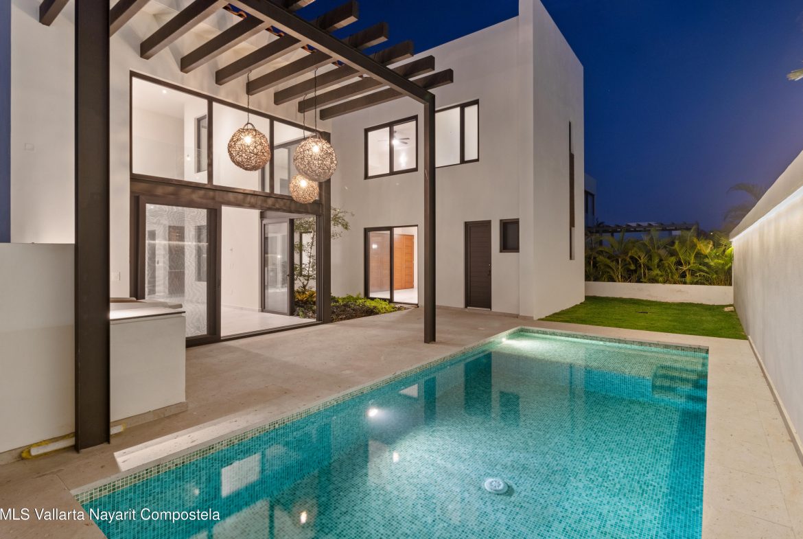 Elegant New 2-Story Villa in Los Tigres.Step into this brand-new, meticulously designed 2-story villa, where quality finishes meet modern luxury. The home is thoughtfully crafted with exquisite Parrota wood accents throughout, including the kitchen, doors, closets, and bathroom cabinets. The grand entrance immediately impresses with a double-story hallway and a stunning view of the vibrant inner yard, filled with colorful plants that enhance your first step into the home. Designed for maximum privacy, the villa offers the perfect sanctuary for relaxation while inviting abundant natural light throughout the day, creating a spacious and airy atmosphere.Ground Floor: The open-concept design on the ground floor features a spacious kitchen that seamlessly connects