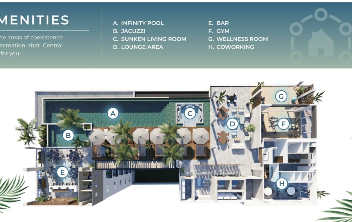 Introducing CENTRAL residences, the newest development in the Versalles neighborhood of Puerto Vallarta. Central will have 47 condos, of which 11 are type A, 24 type B and 12 type C. They range from 1 Bed + Den (type A), 2 Bed 2 Bath (Type B), 2 bed 2 bath + Lock off 1 bed 1 bath (Type C). Thirteen of those units will have mesmerizing ocean views. With an array of incredible rooftop amenities, Central will redefine luxury living – with an infinity pool that seemingly merges with the ocean and city, a fitness center, wellness room, co-working room, Bar and Jacuzzi all facing the ocean and mountain views. Underground parking and Bodega are a purchasable option to add onto your great Living Investment! Invest in your dream, invest in Versalles, Invest in Central!
