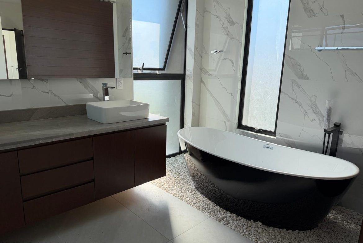 Casa habitacion de dos niveles que cuenta con 4 cuatro recamaras y 4 banos y medio, sala-comedor y cocina, alberca y patio.