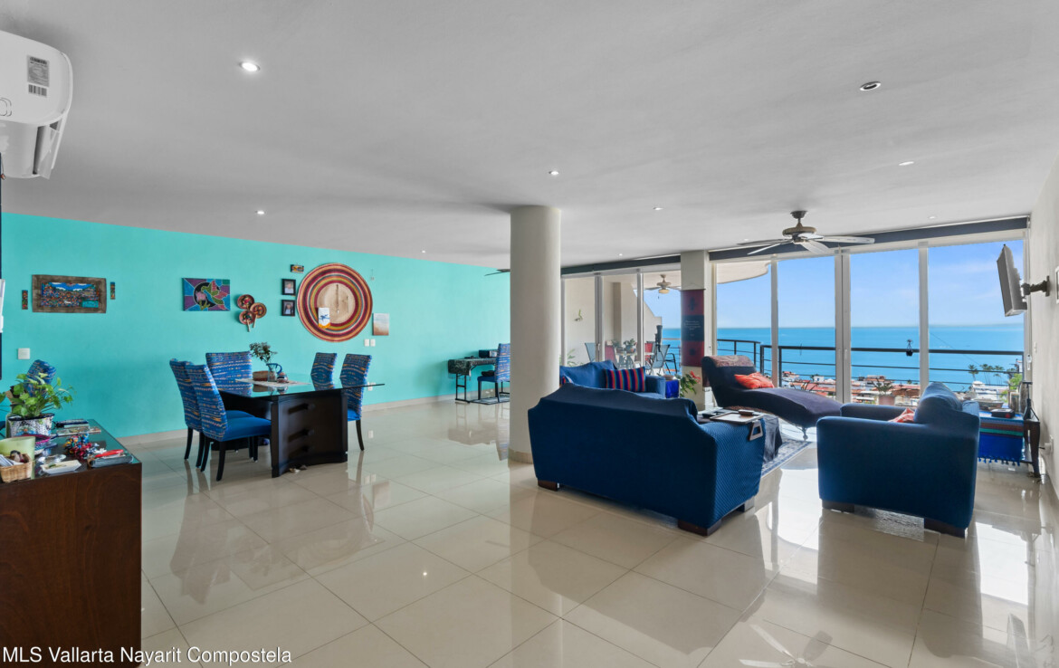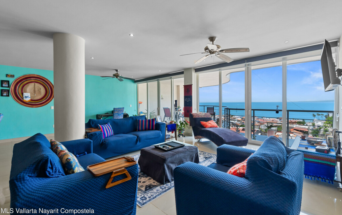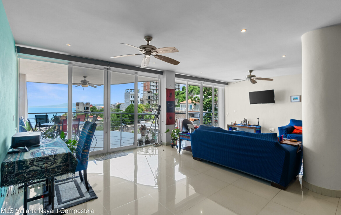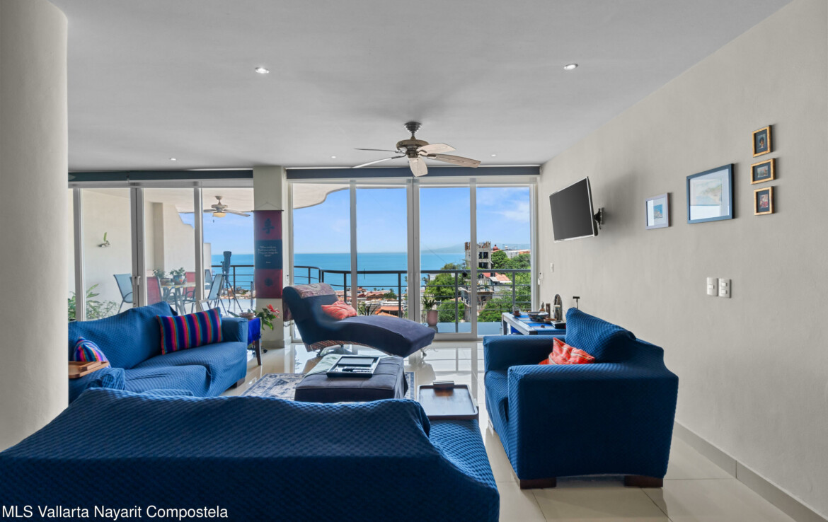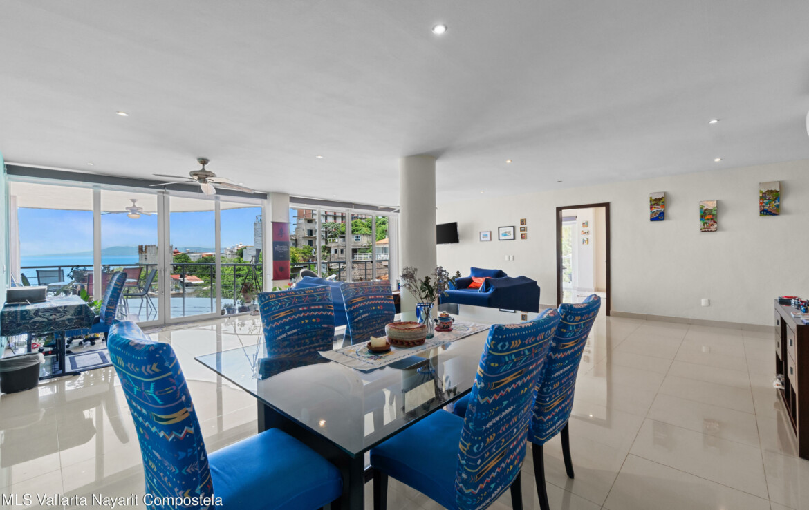 Espectacular departamento en esquina con vistas al oceano y ciudad, despierta cada manana contemplando la inmensidad del oceano desde tu recamara, Rich Coast se ubica en lo alto de la montana en el corazon de Puerto Vallarta, este departamento ofrece 2 recamaras la principal con bano completo y dos balcones, un bano adicional para visitas y dar servicio a la segunda recamara, cocina integral y una muy amplia terraza 189 m2 perfectamente distribuidos para dar una agradable sensacion de amplitud. Pide una cita para conocerlo ahora mismo.
