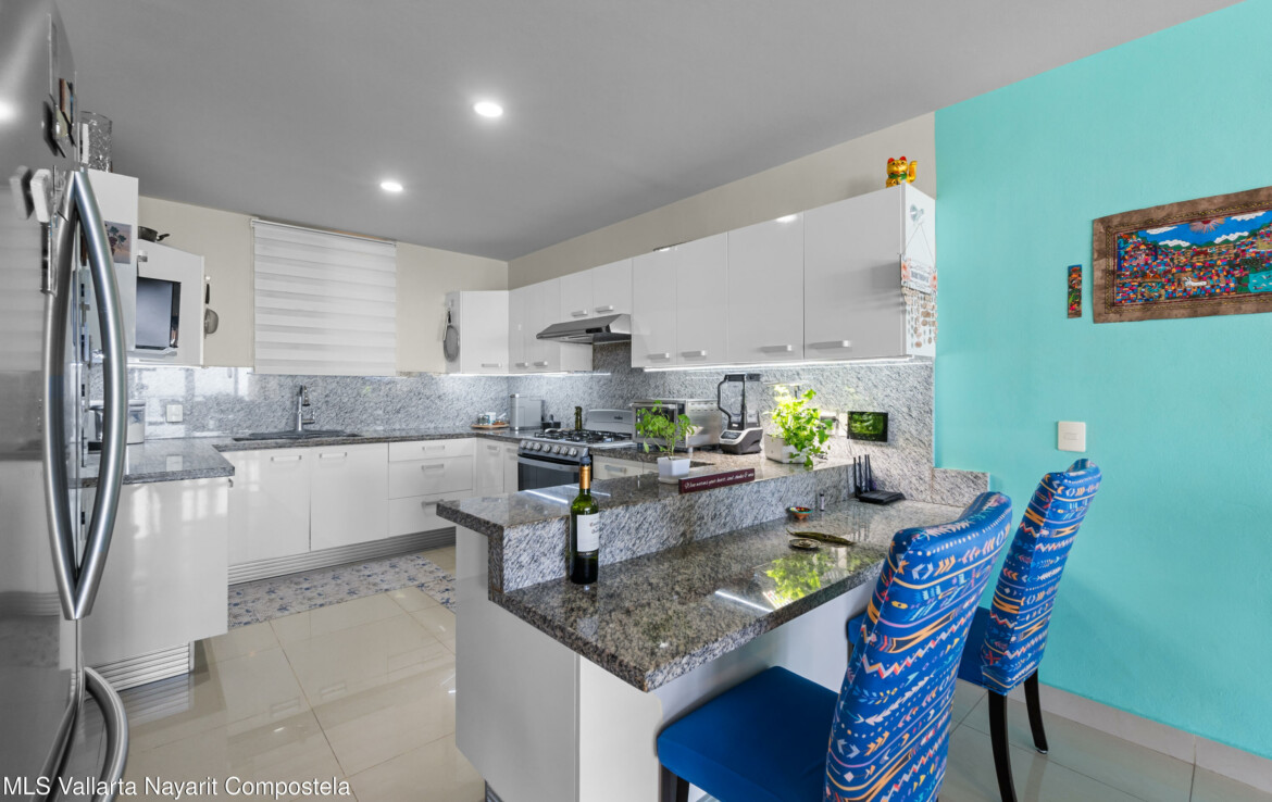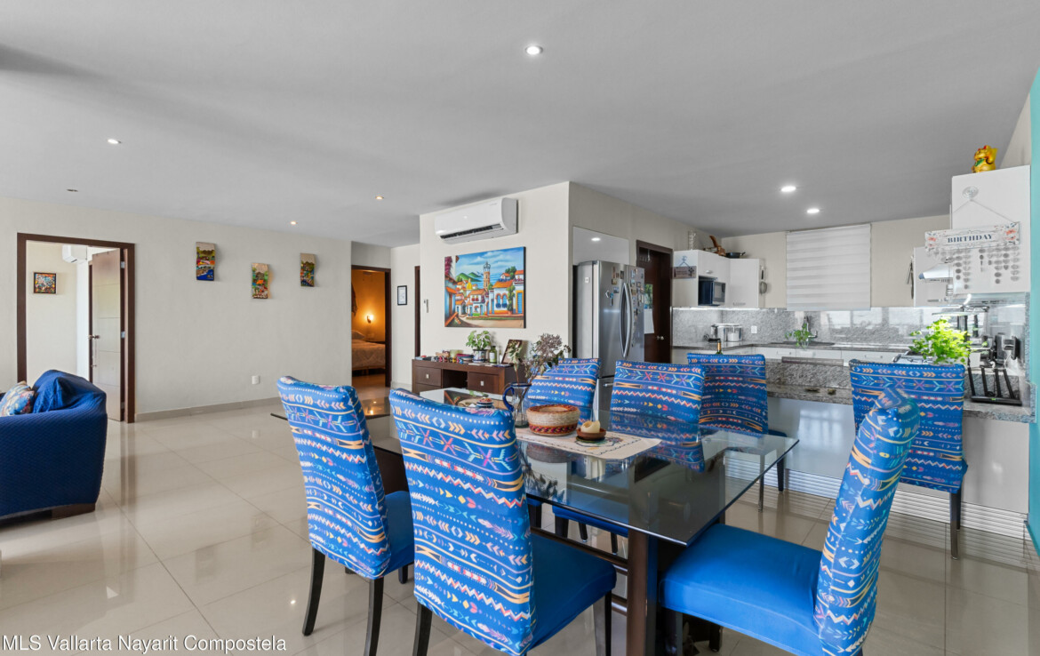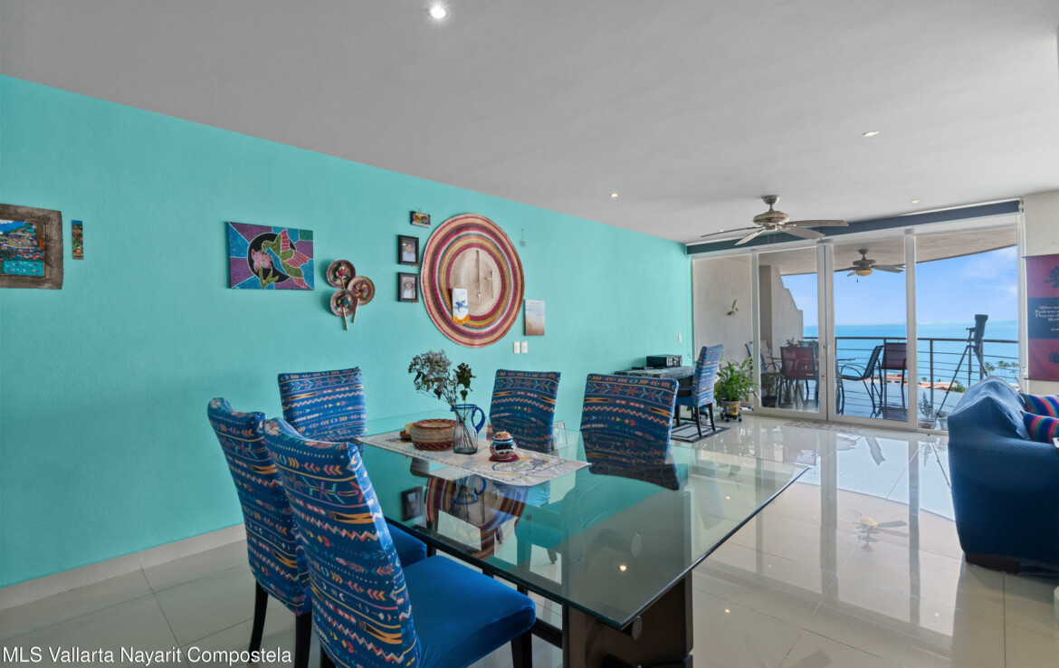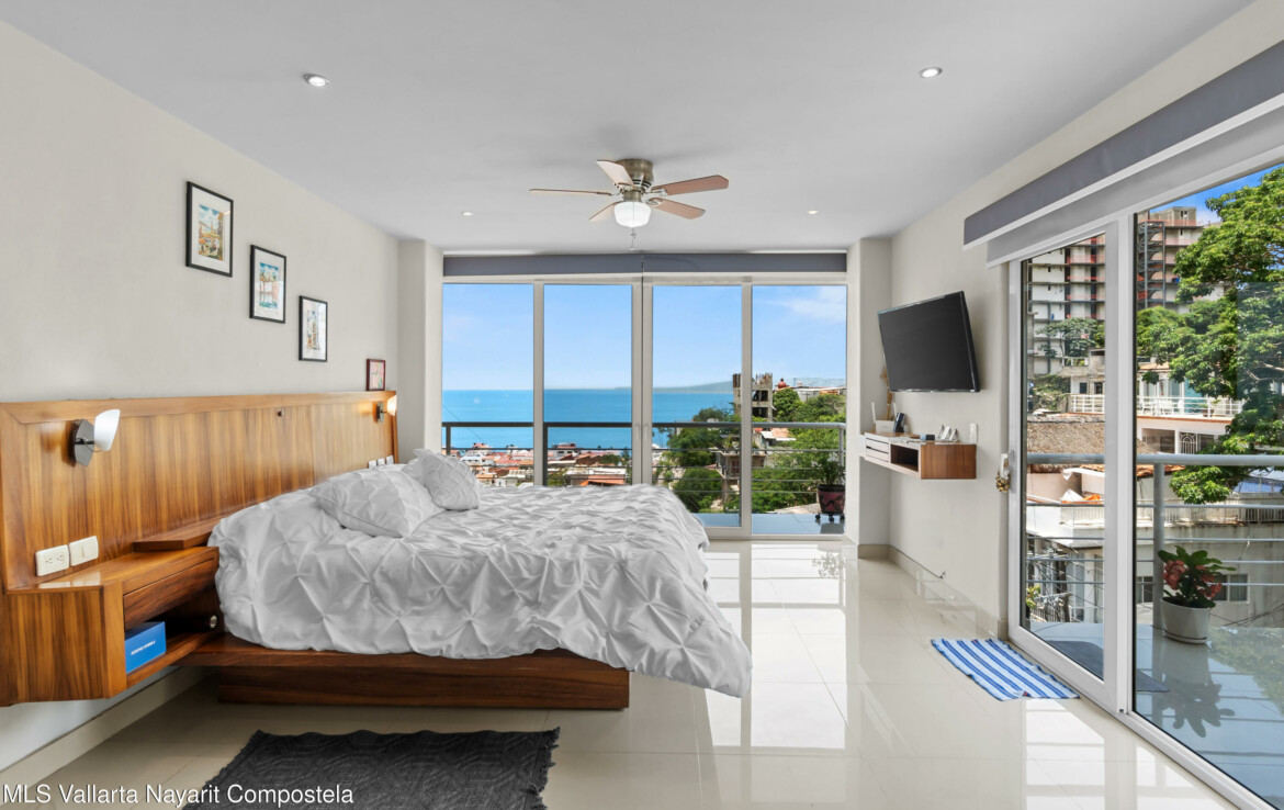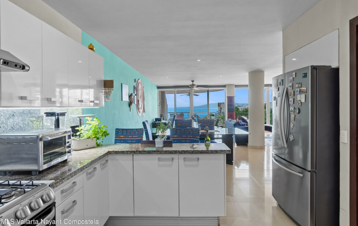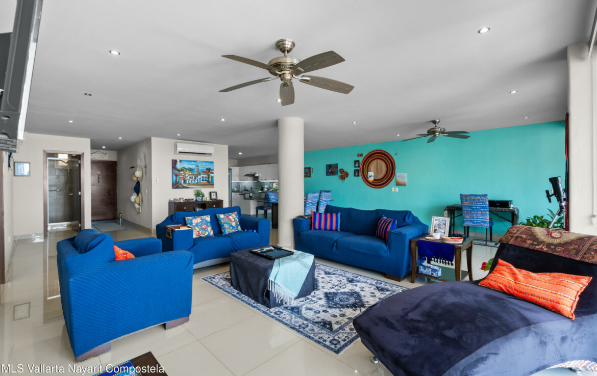 Espectacular departamento en esquina con vistas al oceano y ciudad, despierta cada manana contemplando la inmensidad del oceano desde tu recamara, Rich Coast se ubica en lo alto de la montana en el corazon de Puerto Vallarta, este departamento ofrece 2 recamaras la principal con bano completo y dos balcones, un bano adicional para visitas y dar servicio a la segunda recamara, cocina integral y una muy amplia terraza 189 m2 perfectamente distribuidos para dar una agradable sensacion de amplitud. Pide una cita para conocerlo ahora mismo.