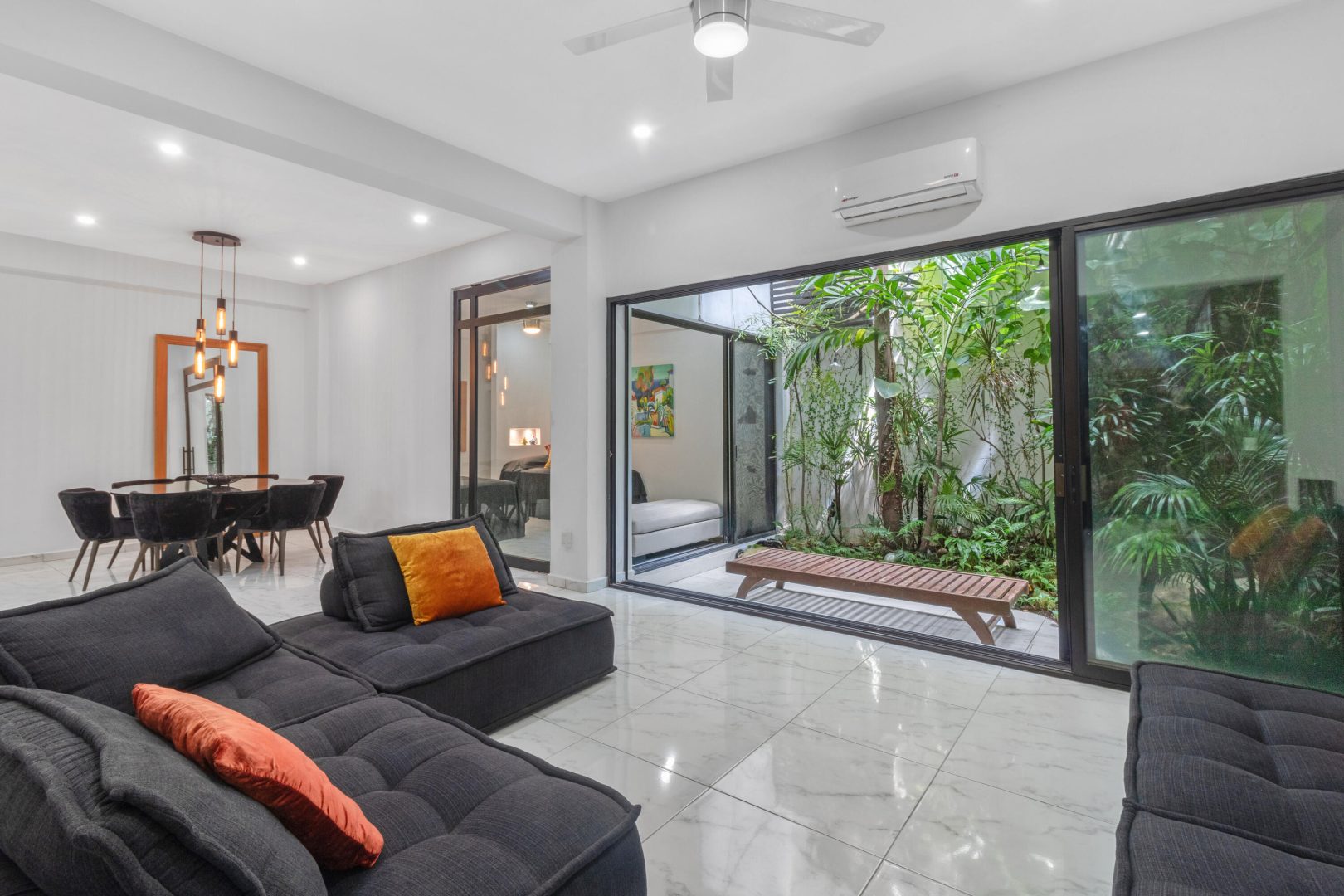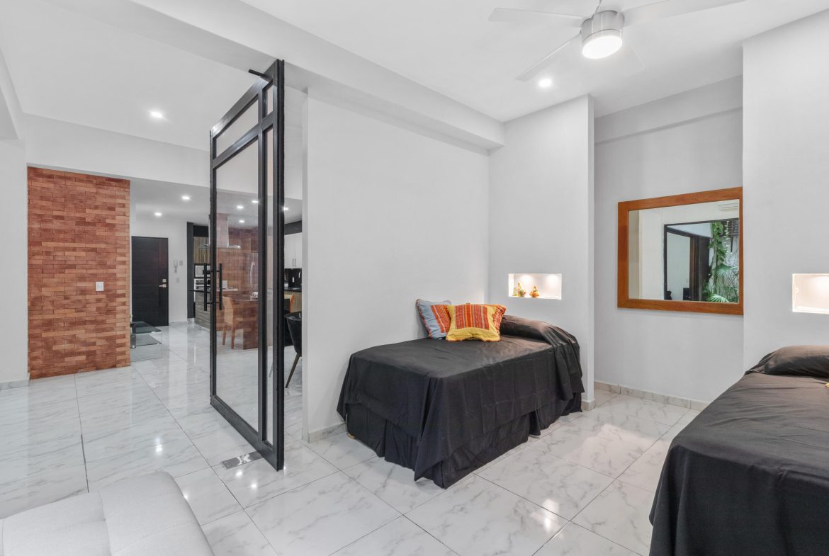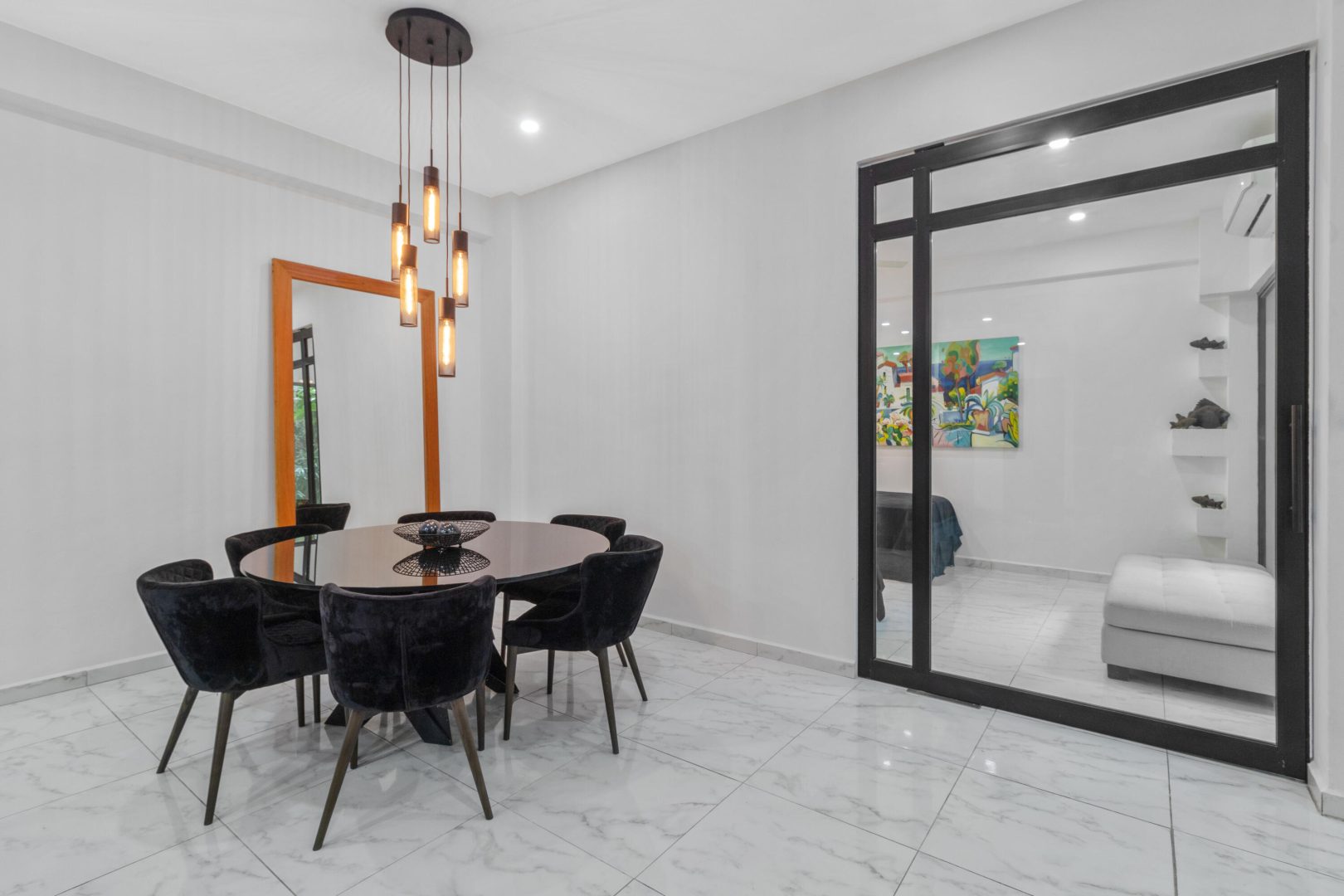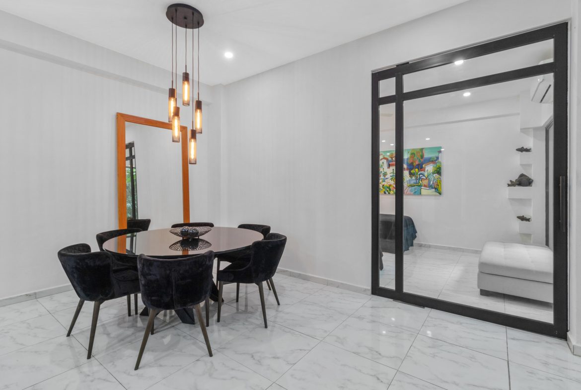 Welcome to Condo Aguacate, a stunning duplex with two seamlessly connected one-bedroom units. Independent entrances on both floors offer convenience and versatility. Each spacious level is fully self-contained with bedroom, bathroom, living room, dining area and kitchen. The ground floor is currently used as an entertainment space with a guest room and laundry facilities, while the second floor serves as the owner’s suite, featuring a landscaped front balcony and a bedroom to the rear with a Juliet balcony overlooking the lush, enclosed patio below. A lock-off door allows for complete separation between levels for both privacy and potential rental income. Located on a quiet, flat street, this property offers elegance and modern design at a great value for the neighborhood.