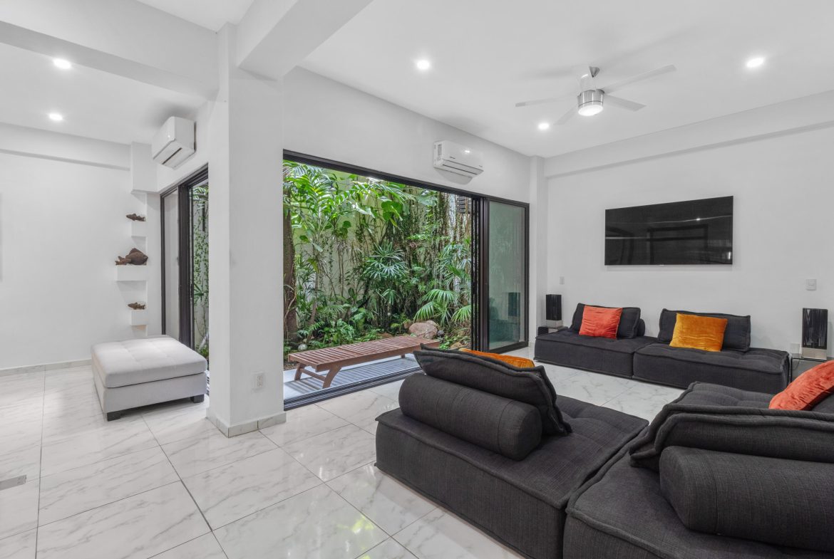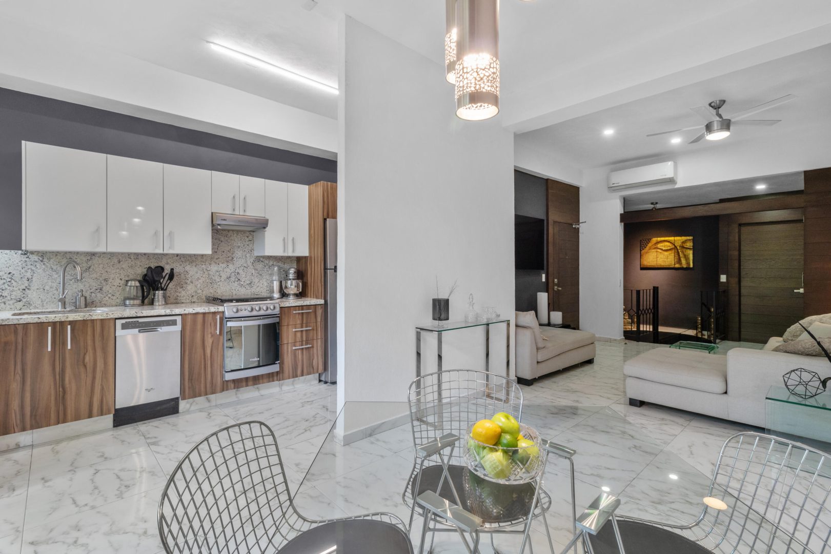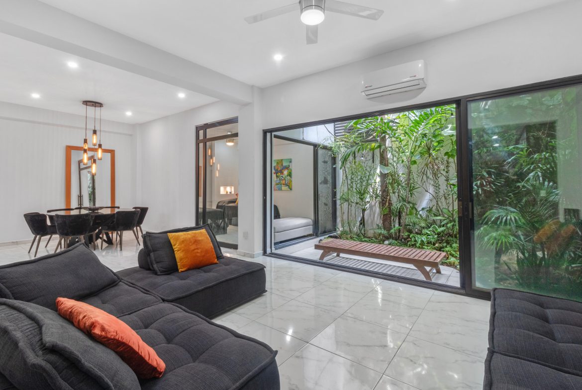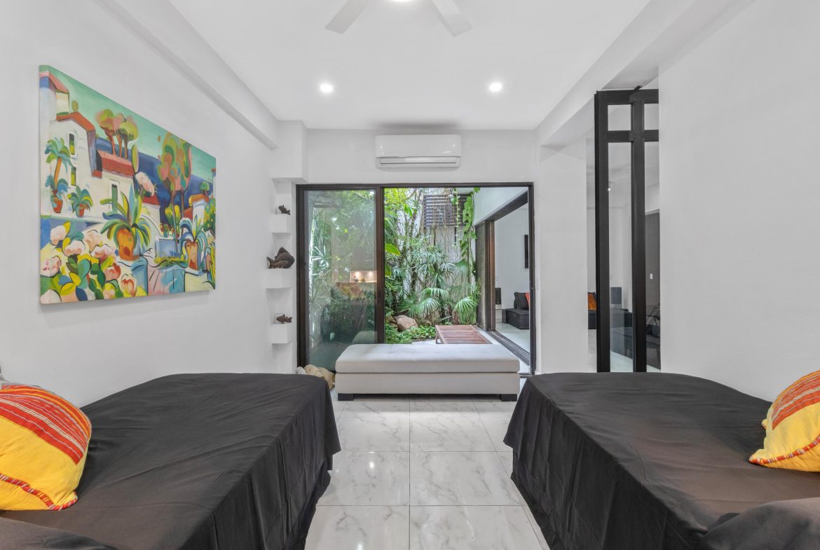 Welcome to Condo Aguacate, a stunning duplex with two seamlessly connected one-bedroom units. Independent entrances on both floors offer convenience and versatility. Each spacious level is fully self-contained with bedroom, bathroom, living room, dining area and kitchen. The ground floor is currently used as an entertainment space with a guest room and laundry facilities, while the second floor serves as the owner’s suite, featuring a landscaped front balcony and a bedroom to the rear with a Juliet balcony overlooking the lush, enclosed patio below. A lock-off door allows for complete separation between levels for both privacy and potential rental income. Located on a quiet, flat street, this property offers elegance and modern design at a great value for the neighborhood.