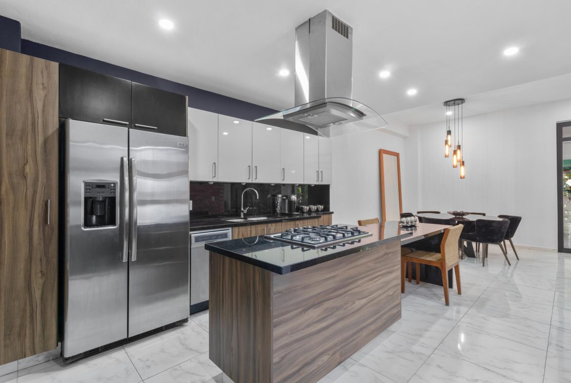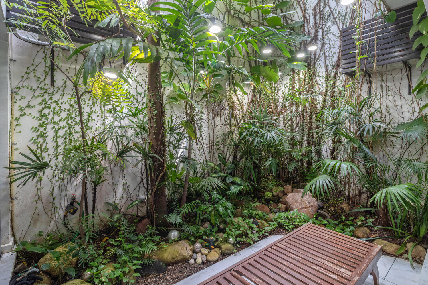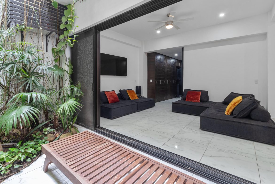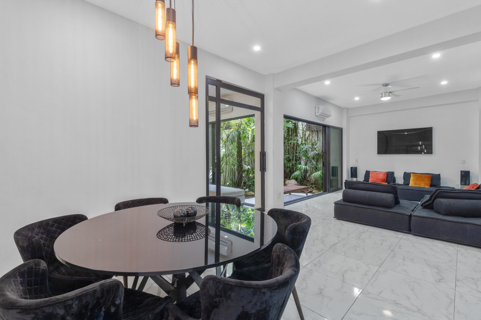 Welcome to Condo Aguacate, a stunning duplex with two seamlessly connected one-bedroom units. Independent entrances on both floors offer convenience and versatility. Each spacious level is fully self-contained with bedroom, bathroom, living room, dining area and kitchen. The ground floor is currently used as an entertainment space with a guest room and laundry facilities, while the second floor serves as the owner’s suite, featuring a landscaped front balcony and a bedroom to the rear with a Juliet balcony overlooking the lush, enclosed patio below. A lock-off door allows for complete separation between levels for both privacy and potential rental income. Located on a quiet, flat street, this property offers elegance and modern design at a great value for the neighborhood.
