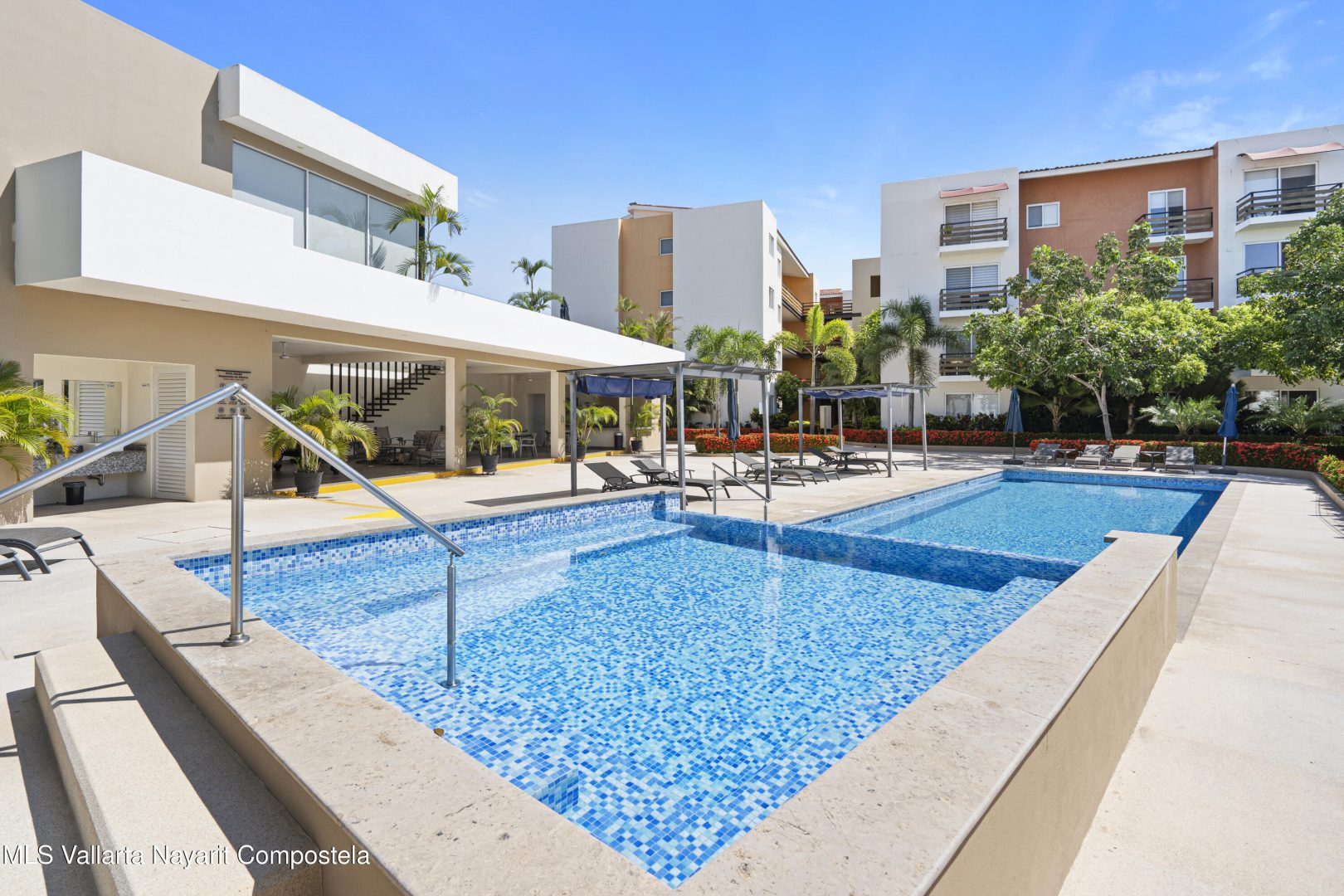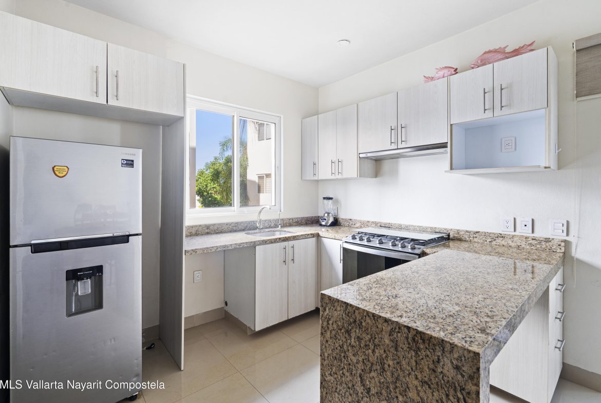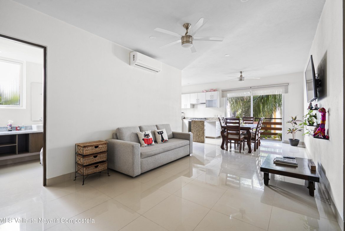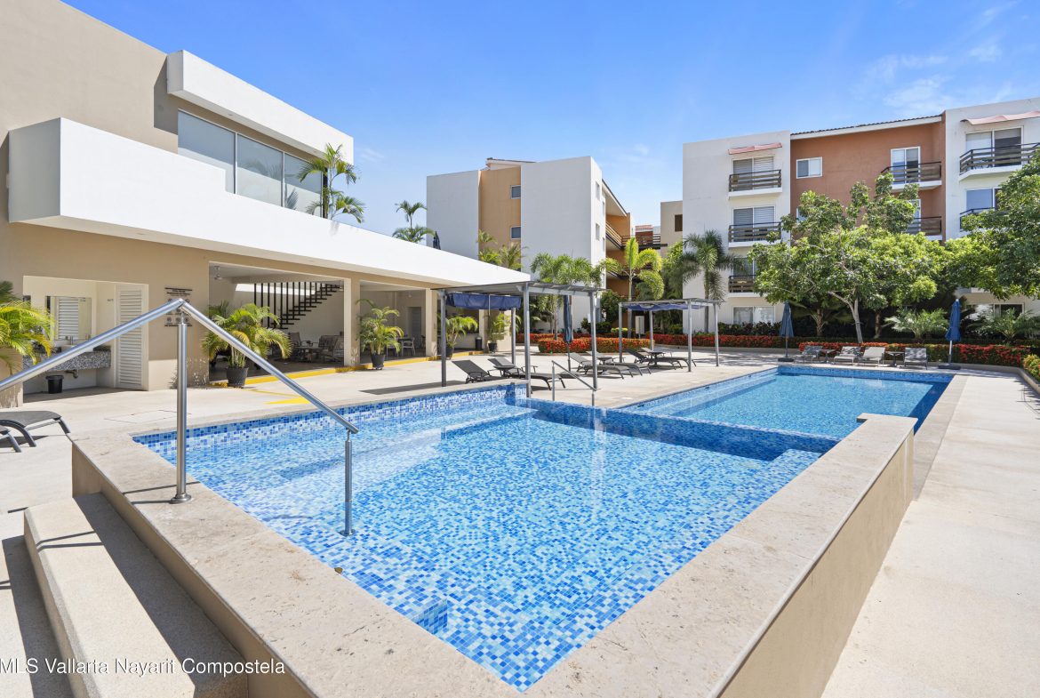 Condo Azulejos is a great and cozy unit, located in between Nuevo Nayarit and Jarretaderas, it is just 5 min drive to the closest beach! and very close to all the restaurants, bars and coffe shops in the area. Enjoy quietness and tranquility in this beautiful complex with great amenities. One of the best things of living in this area is how easy is to walk, jog or ride your bike through the streets of Nuevo Vallarta (Nuevo Nayarit). Common amenities:- Security 24/7- Pool- Gym- BBQ- Pool table- Seating and lounge area- JacuzziThe listed price is in pesos, the price in USD shown is on a exchange rate of $18 pesos equals $1 USD