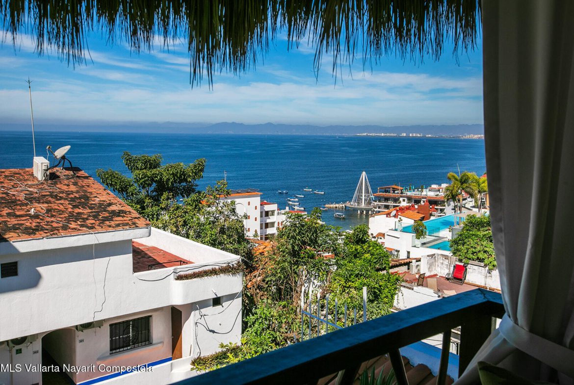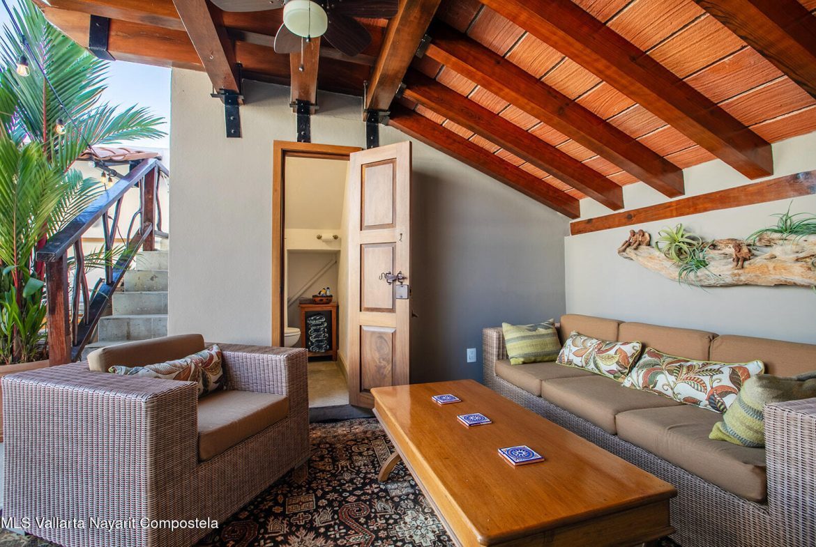 Disfrute de las vistas al mar de Playa Los Muertos. Condominio amueblado de 4 niveles ubicado en el prestigioso Amapas Inferior. Cuenta con 2 recamaras con banos en suite y terrazas llenas de plantas, palapa y alberca en la azotea, 2 banos para invitados, cochera, paneles solares, camaras de seguridad, estacionamiento. Camine hasta la playa en 5 minutos.Enjoy oceanviews of Playa Los Muertos. Furnished 4 level condo located in prestigious Lower Amapas features 2 bedrooms with ensuite baths and terraces full of plants, rooftop palapa and pool, 2 guest baths, garage, solar panels, security cameras, guest parking. Walk down to the beach in 5 minutes.