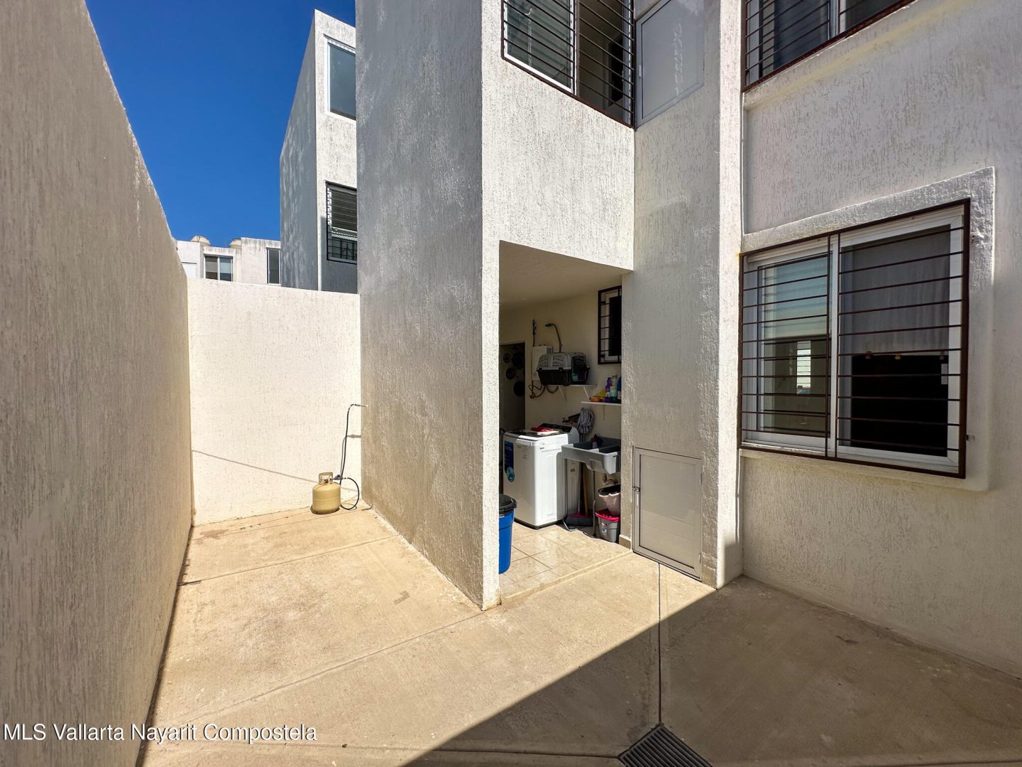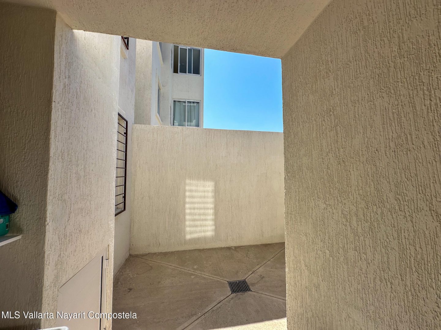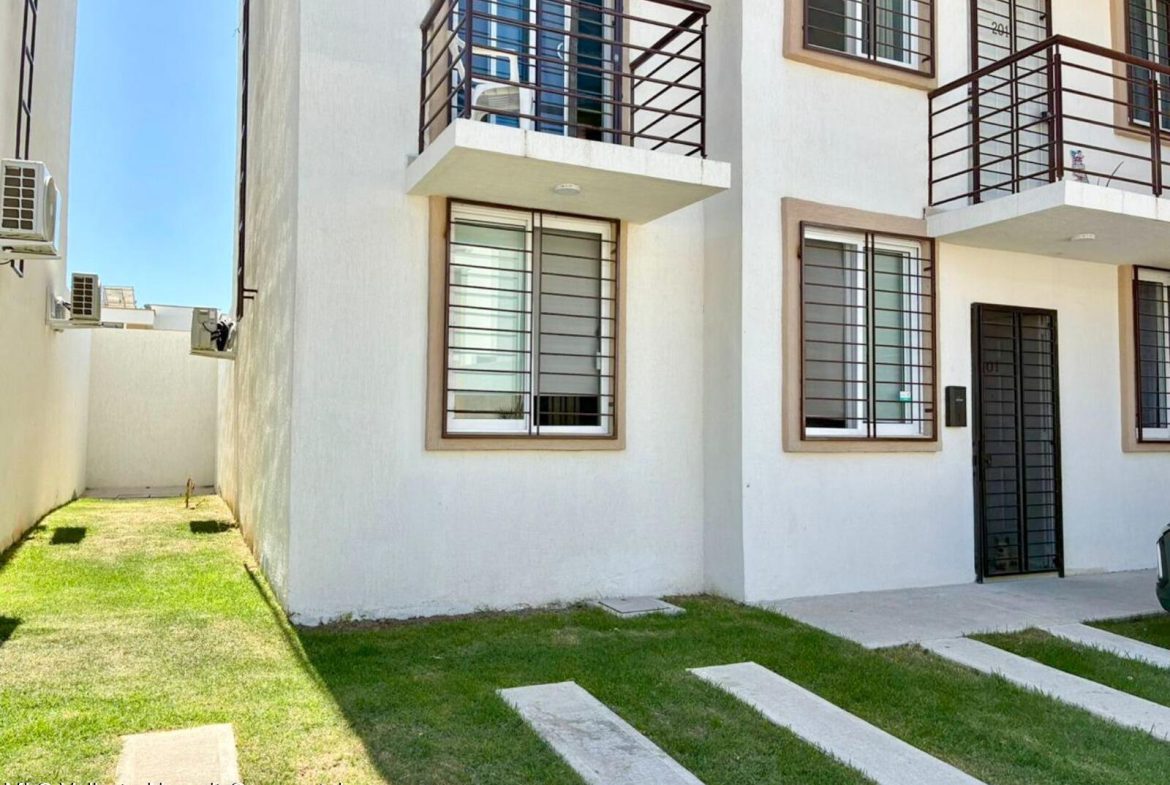 Esta unidad habitacional se ubica en la planta baja del edificio, lo que facilita el acceso directo sin necesidad de utilizar escaleras. El inmueble presenta una fachada con acabados en tonos claros y areas de jardin frontal que contribuyen a un entorno ordenado. Ofrece la flexibilidad de adaptar los espacios interiores segun los requerimientos del comprador. Cuenta con un patio posterior delimitado por muros altos, proporcionando un area abierta privada ideal para ventilacion natural o usos diversos de servicio.