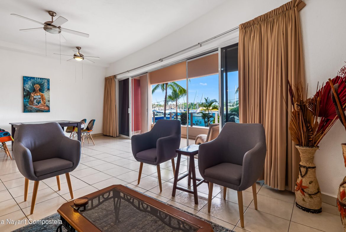 Espanol abajo Charming Condo in the Heart of Nuevo Nayarit’s Marina Experience the charm and convenience of marina living with this spacious and beautifully appointed 2-bedroom, 2-bathroom condo, located along the peaceful boardwalk of Nuevo Nayarit’s coveted marina. This property combines traditional Mexican design with modern comfort, creating a perfect balance of elegance and authenticity. This condo is ideally situated in Marina Nuevo Nayarit, one of the most desirable areas, offering easy access to the vibrant marina, shops, restaurants, and the beach all within walking distance. From the living spaces, enjoy stunning views of the marina, bringing natural light and a serene ambiance into your home.