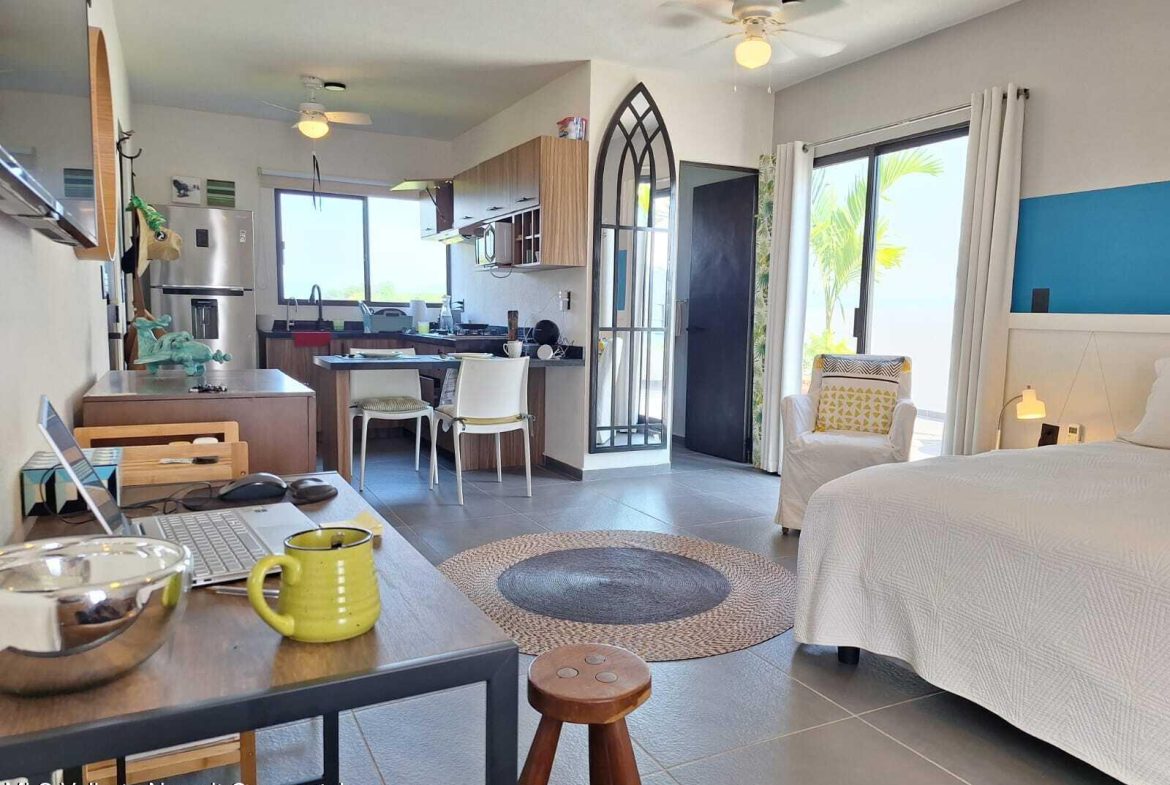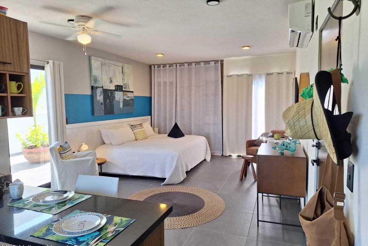 Hermoso condo 303-8, este comodo estudio se localiza en el tercer nivel y cuenta con una superficie total de 40.10 m de terreno y construccion. Se entrega totalmente listo para habitar, con mobiliario y equipamiento completo. Cuenta con una cocina integral, un bano completo, una terraza espaciosa, ventiladores de techo, aire acondicionado, lavadora, congelador y un area destinada para mascotas. Tambien ofrece cajon de estacionamiento y acceso a un patio de uso privado.
