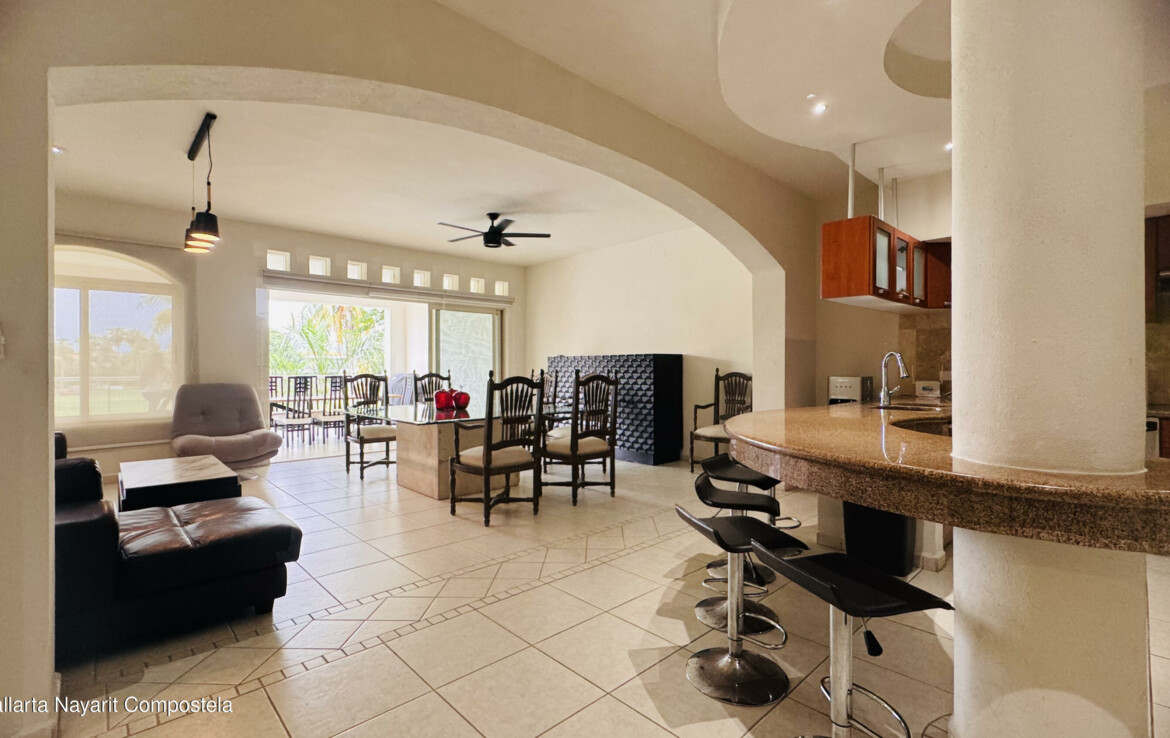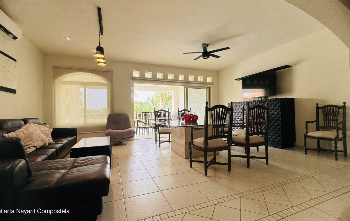 Este espacioso apartamento en segundo piso, de mas de 260 m, se encuentra dentro del Club de Golf El Tigre. Esta completamente amueblado y equipado.El apartamento consta de una cocina totalmente equipada con barra americana, una amplia sala y comedor con acceso directo a la terraza. Esta cuenta con jacuzzi y barbacoa. El condominio tambien cuenta con una acogedora oficina y un medio bano.La recamara principal tiene acceso directo a la terraza, vestidor y bano completo con tina y lavabos dobles. En el lado opuesto se encuentran dos recamaras secundarias: la primera con vestidor y bano completo, y la segunda con sala, vestidor y bano completo.Este apartamento tambien cuenta con un cuarto de servicio convertido en recamara con bano completo, junto al area de lavado.English in More