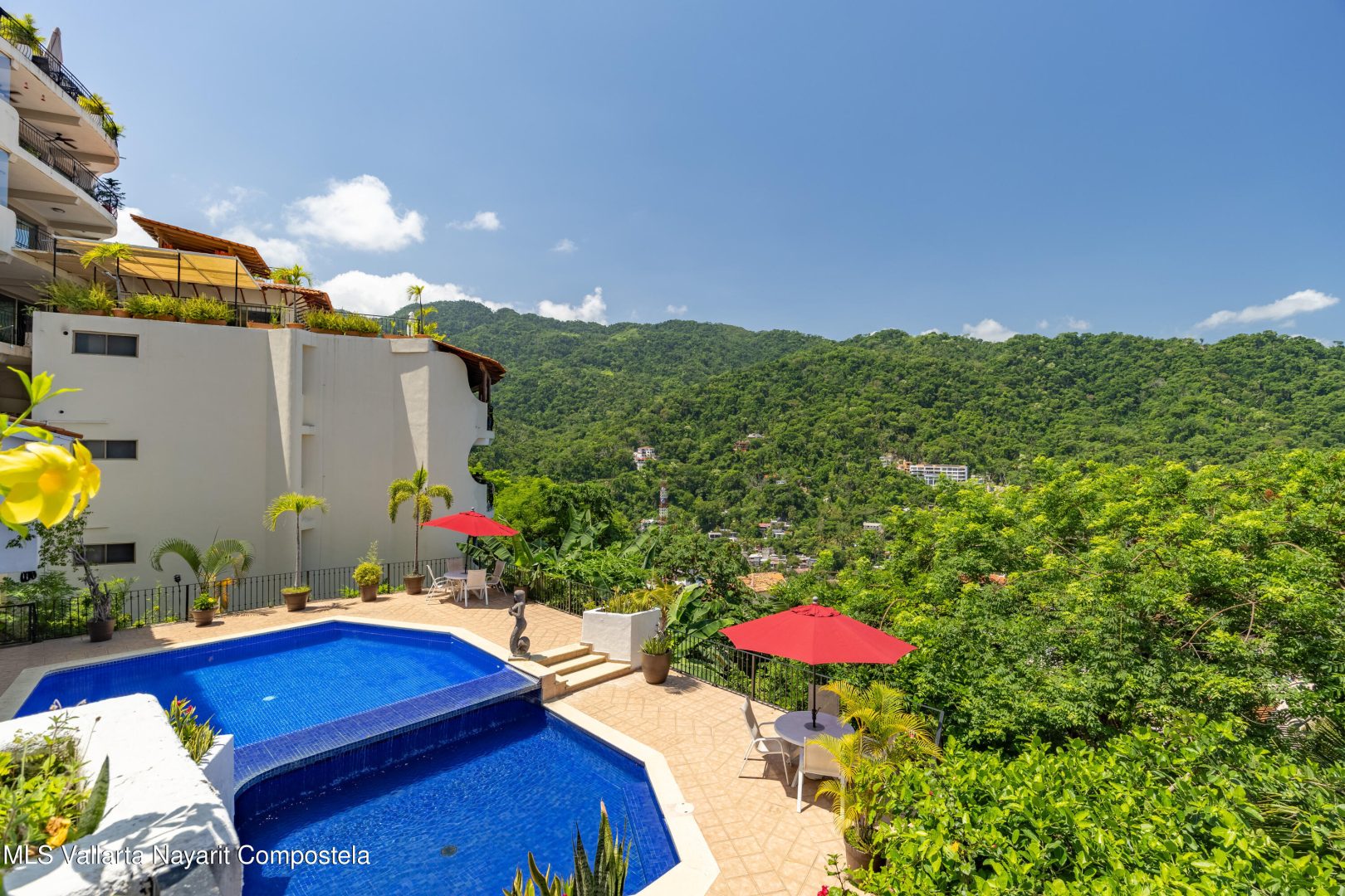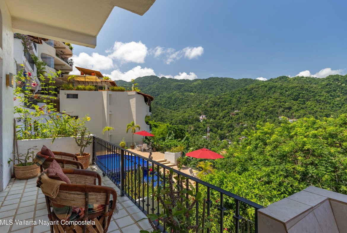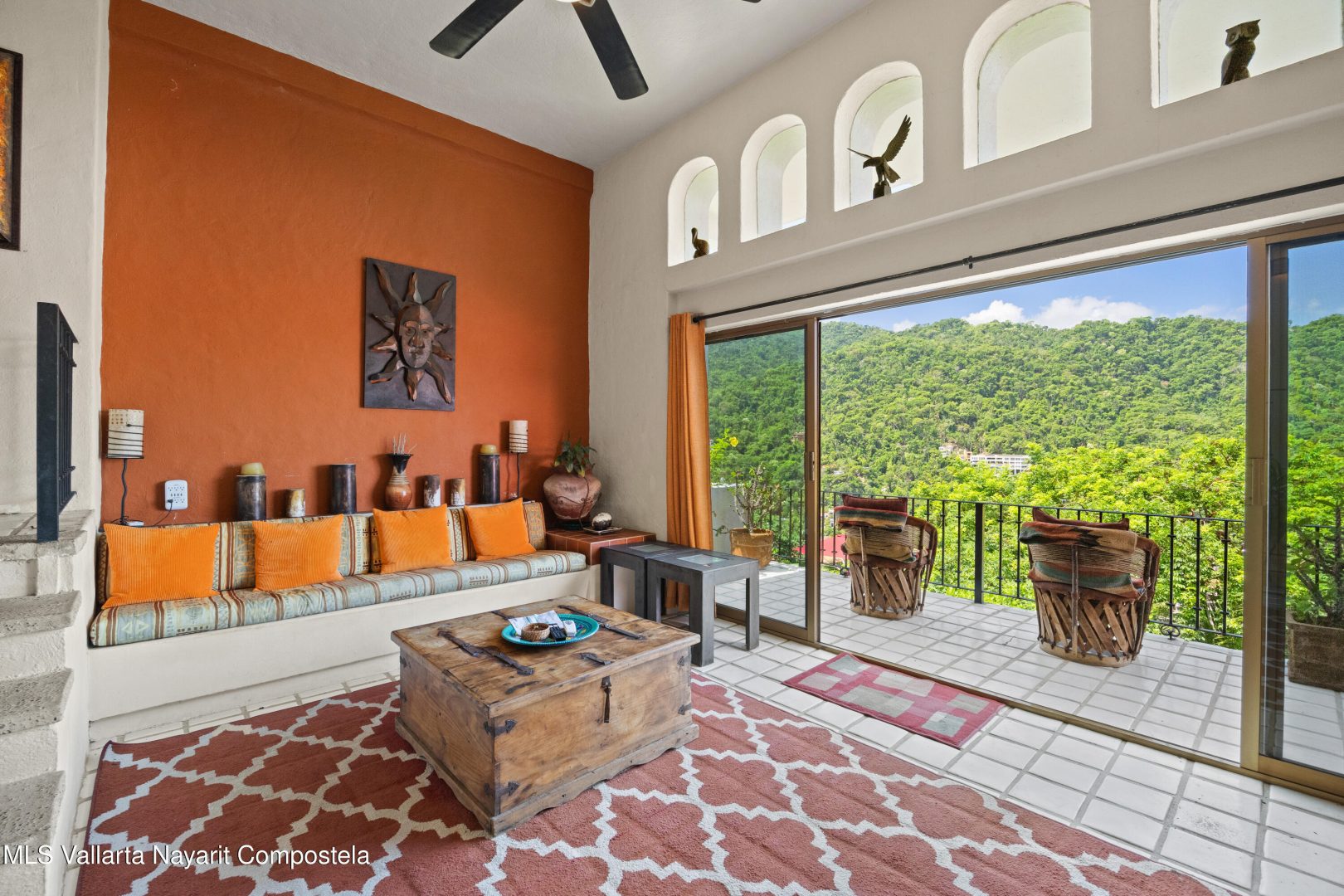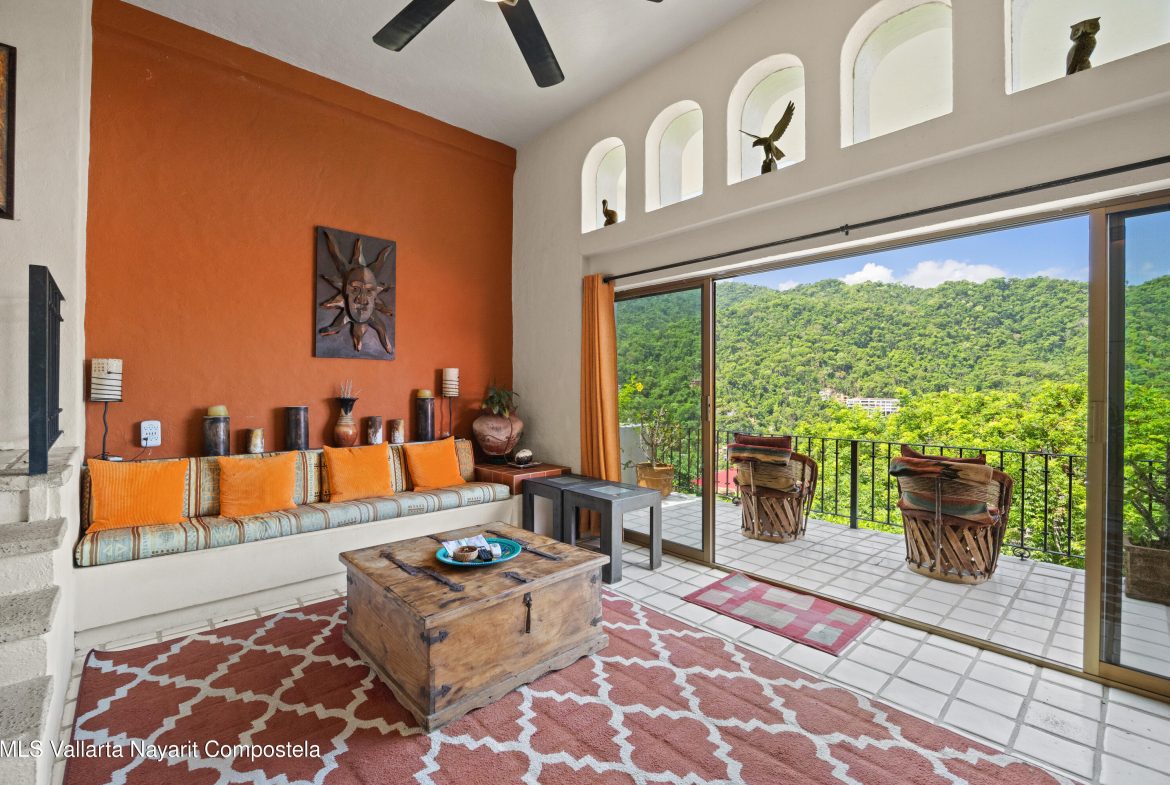 This 2br, 1-ba condo is located in one of the most stunning south shore locations overlooking the lush mountains, tropical forest, and the beach of Mismaloya, Puerto Vallarta. With 128 m of construction, this resale unit is mostly-furnished and features high ceilings, solid concrete finishes, and abundant natural light. Situated on the first level of a hillside building, it offers superb views from inside the condo and from the spacious veranda, all giving a strong sense of connection to nature. Perfect for those seeking a peaceful environment to relax, meditate, practice yoga, or work remotely. The development has only 12 units and includes a pool with ocean view, making it a suitable option for digital nomads or retirees looking for privacy and tranquility.