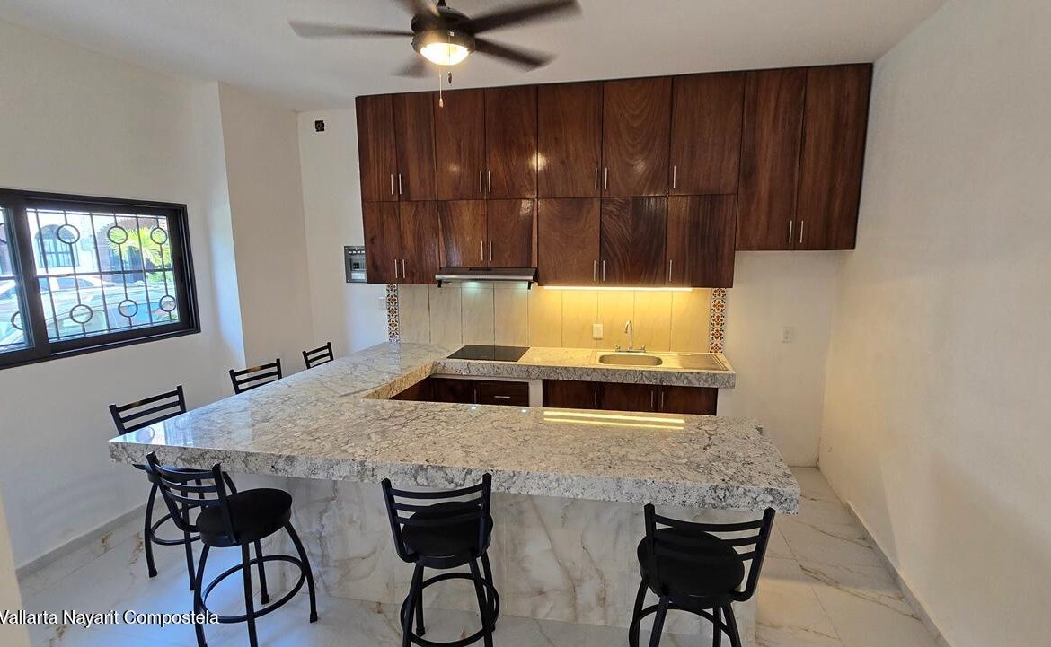Departamento recien remodelado en planta baja, ubicado en la Zona Romantica de Puerto Vallarta, a pocas cuadras de la playa y del Rio Cuale, cuenta con estancia amplia, cocina integral equipada, bano completo equipado externo de las recamaras, recamara principal con bano, segunda recamara o estudio, acabados modernos, aires acondicionados en todas las areas. Cuenta con lavanderia comun, no se aceptan mascotas