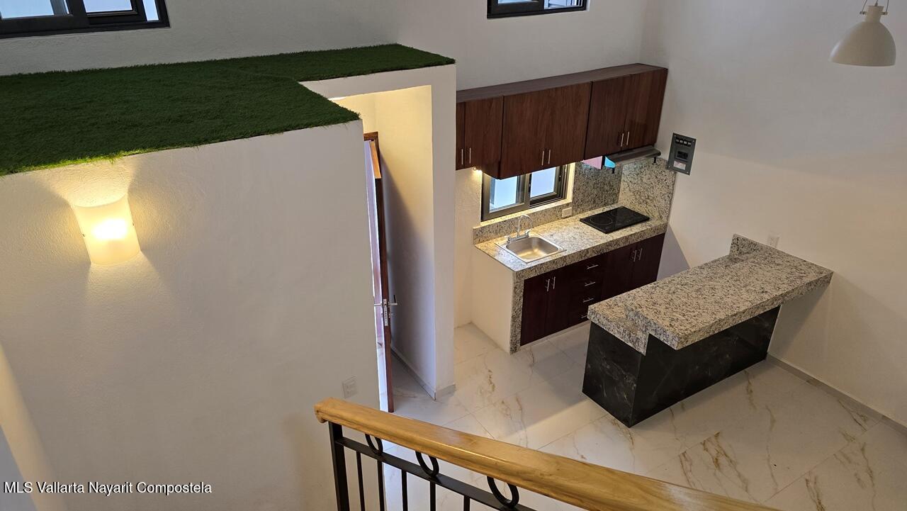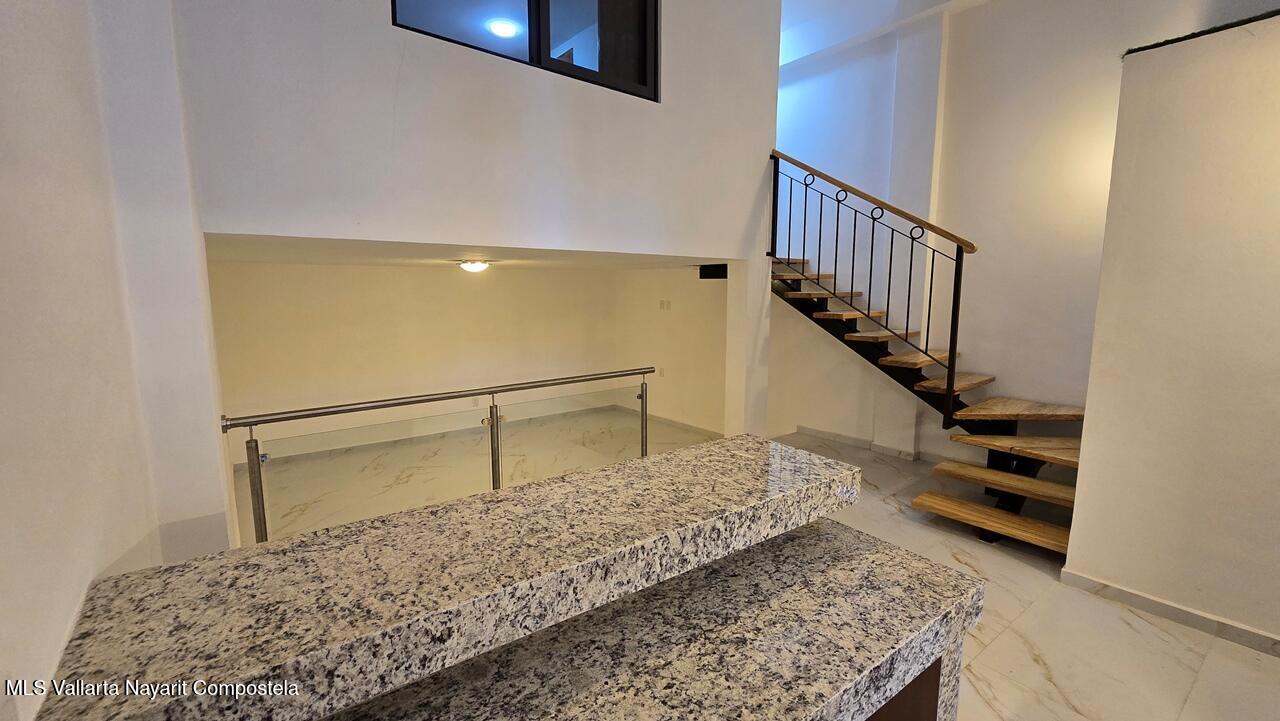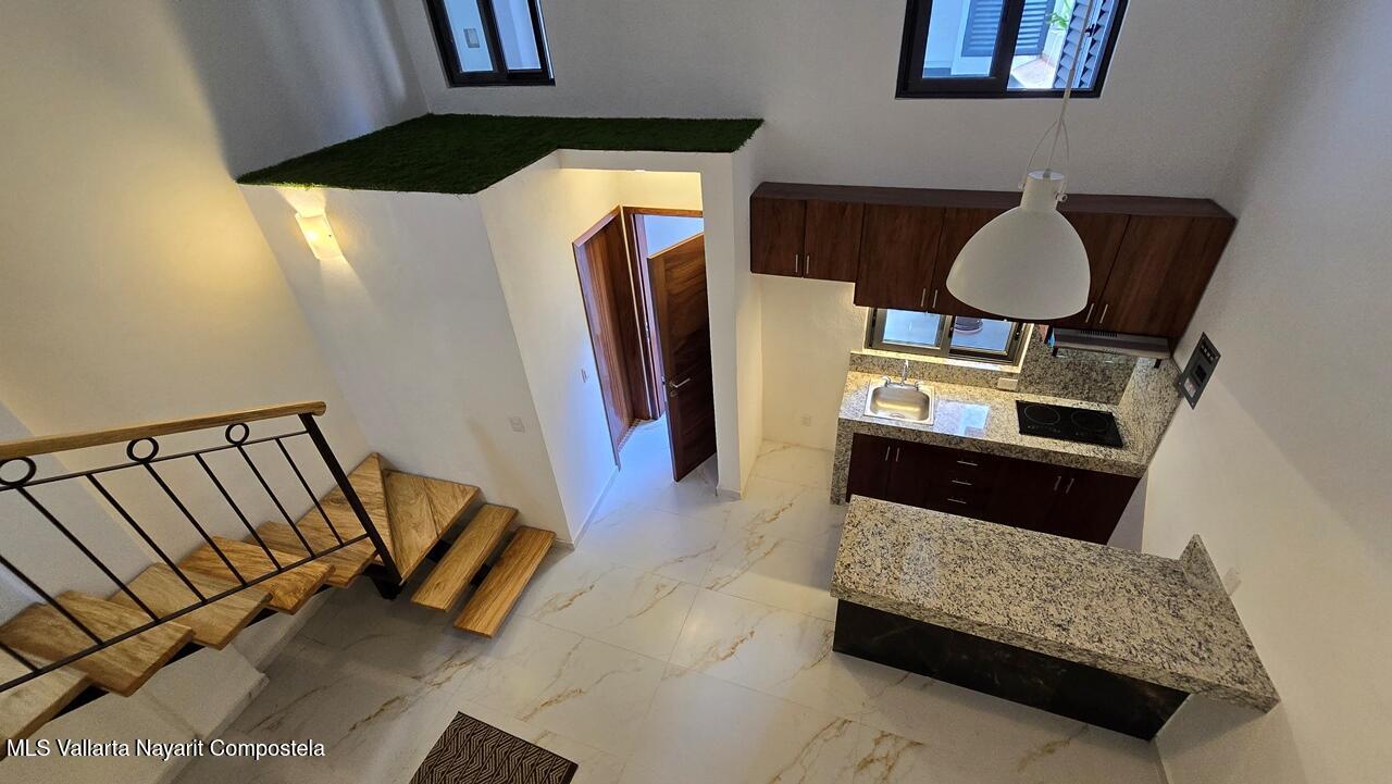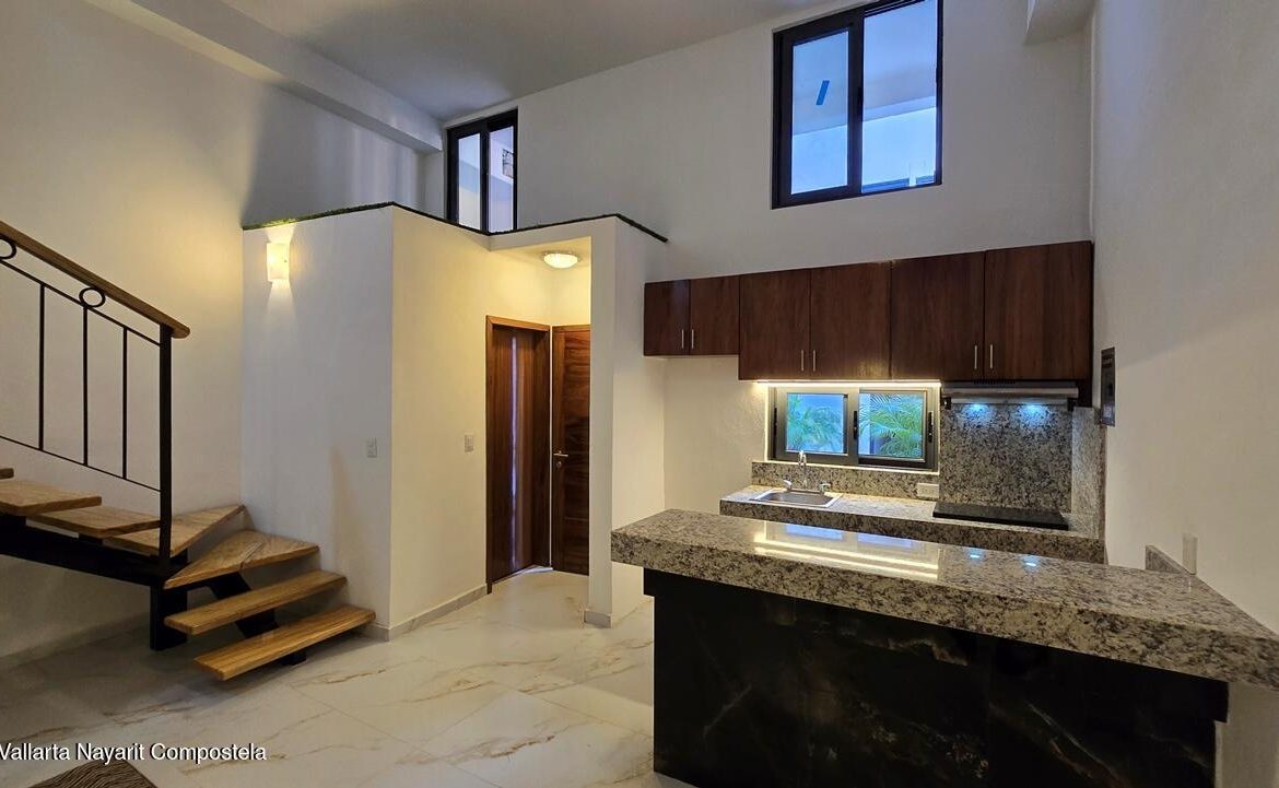 Departamento tipo loft en planta baja, ubicado en la Zona Romantica a pocas cuadras de la playa Los Muertos y el Malecon. Cuenta con cocina integral con barra, estancia amplia, medio bano en planta baja y recamara en planta alta con bano completo. Dispone de acabados de lujo, closet de parota y 2 aires acondicionados tipo minisplit. El condominio ofrece seguridad y lavanderia comun.