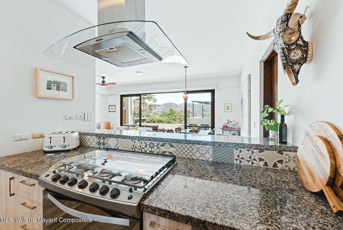 This stunning condominium is located in the desirable Gringo Hill neighborhood of Sayulita, Nayarit. It offers a perfect blend of luxury and comfort. Spanning an impressive 176 m2 of interior living space, this home features two spacious bedrooms, three full bathrooms, and a versatile flex room ideal for a home office, yoga studio, or guest room.The condo is designed for both indoor and outdoor enjoyment, with an additional 103 m2 of private garden and patio space, perfect for entertaining, relaxing, or embracing the lush tropical surroundings.