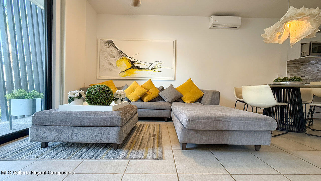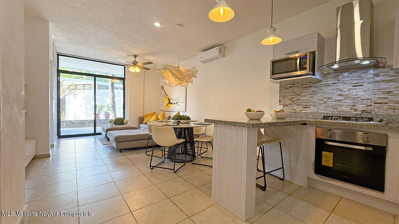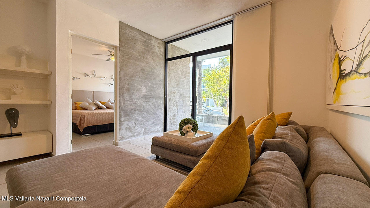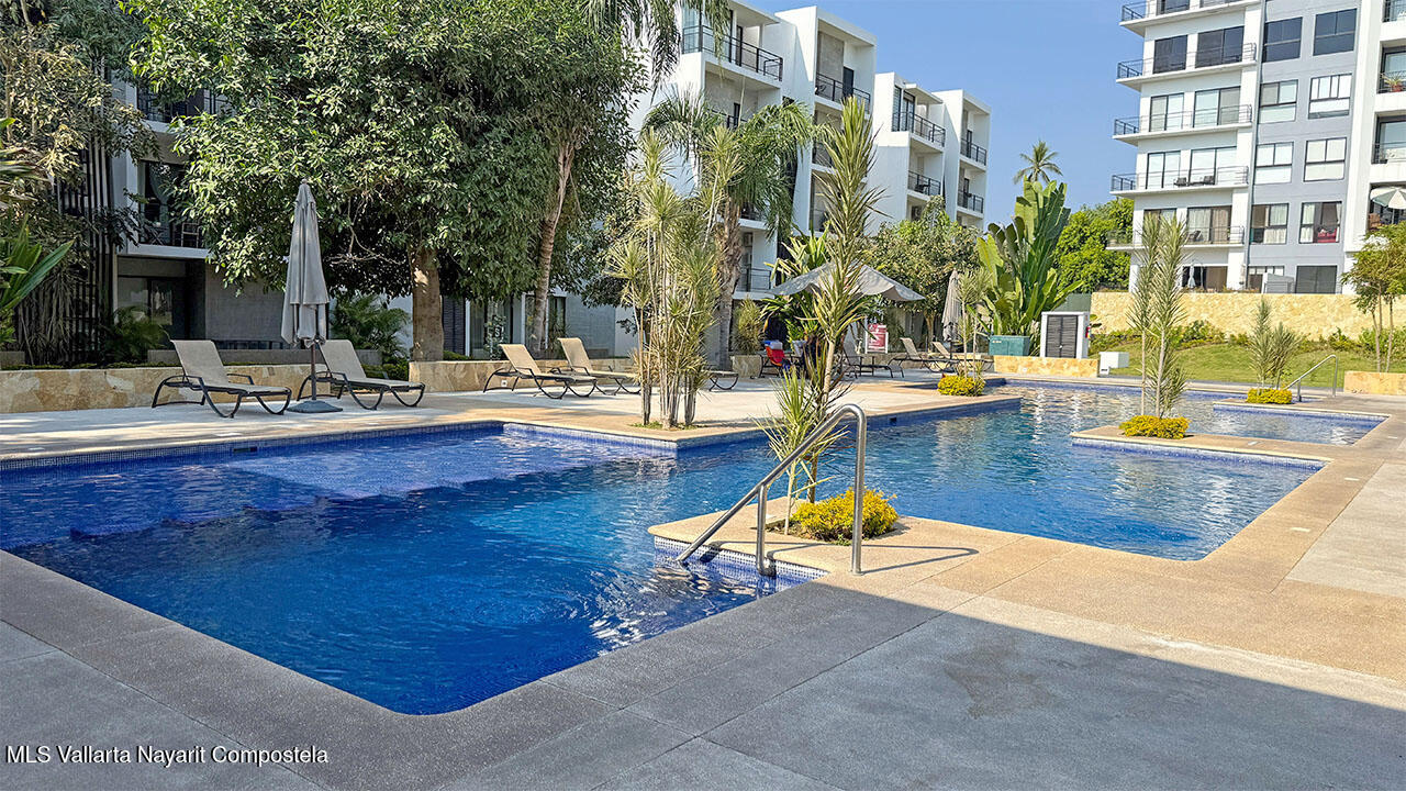 Cuenta con dos recamaras, dos banos, sala, comedor, cocina integral equipada, estacionamiento, jaula tipo bodega. Esta localizado en planta baja y se entrega completamente amueblado. Ademas el desarrollo cuenta areas comunes como alberca y area infantil de juegos.It features two bedrooms, two bathrooms, a living room, dining area, fully equipped kitchen, parking space, and a storage cage. It is located on the ground floor and is delivered fully furnished. Additionally, the development includes common areas such as a swimming pool and a children’s play area.