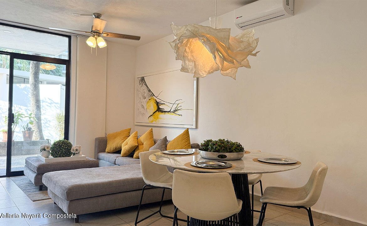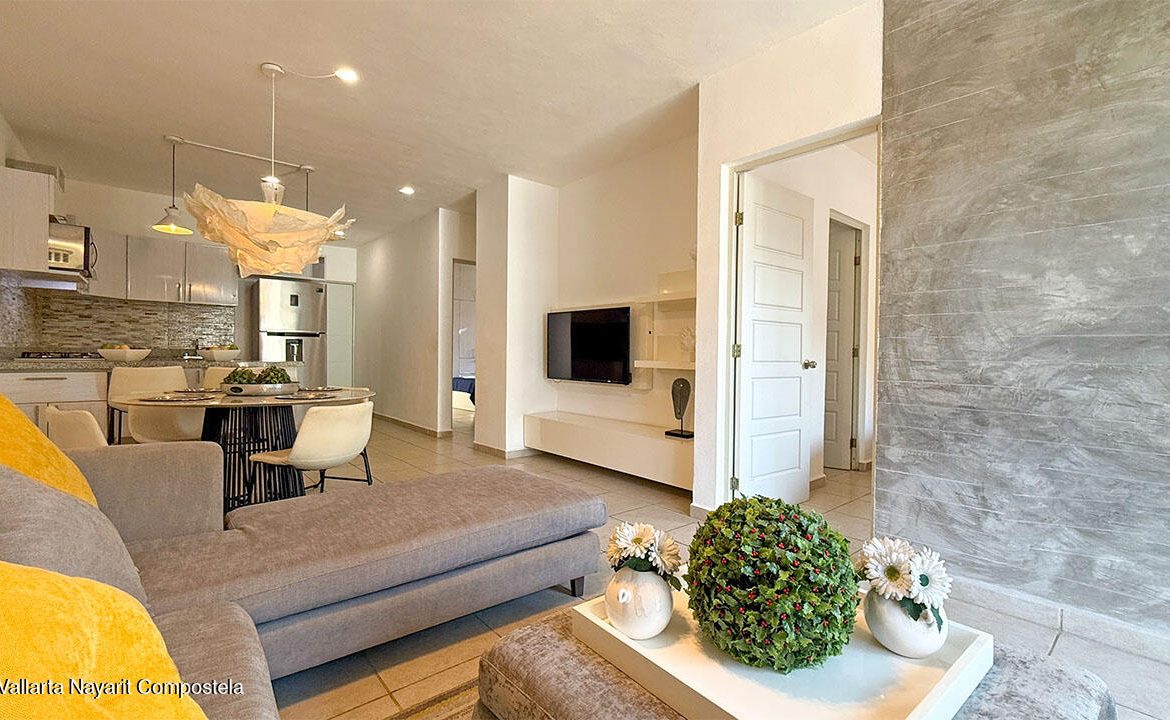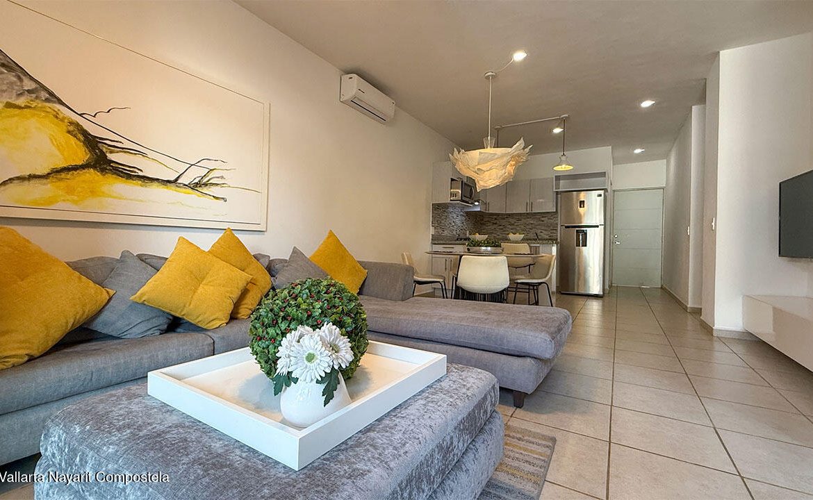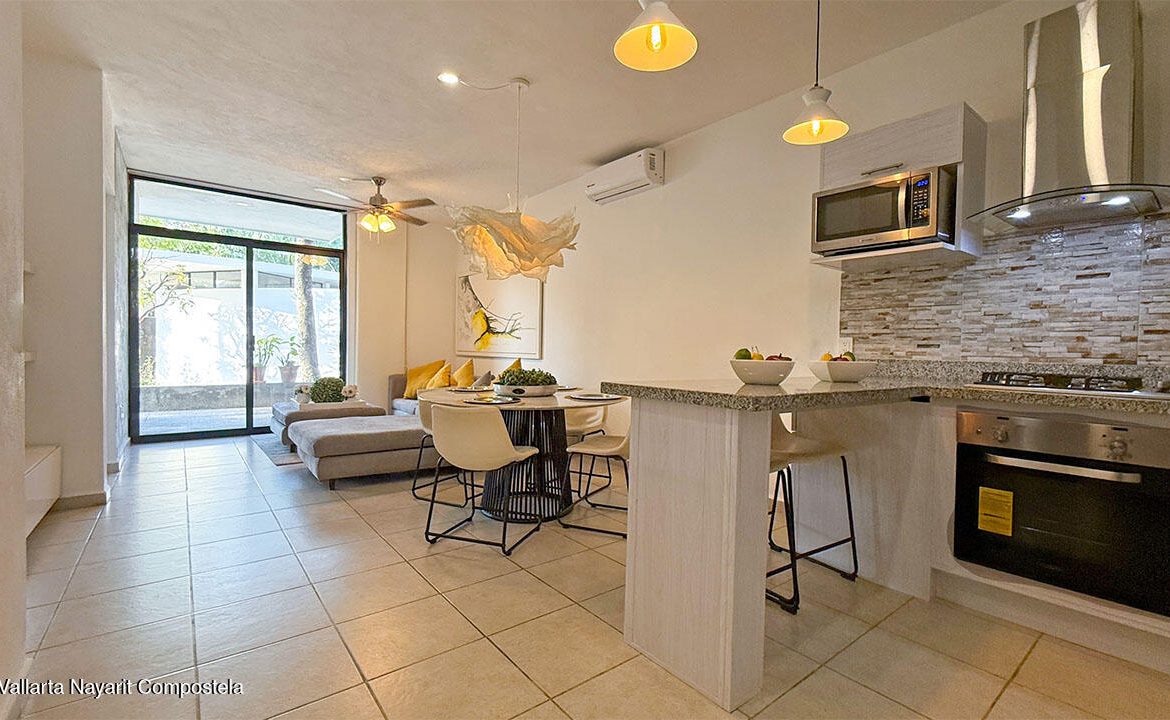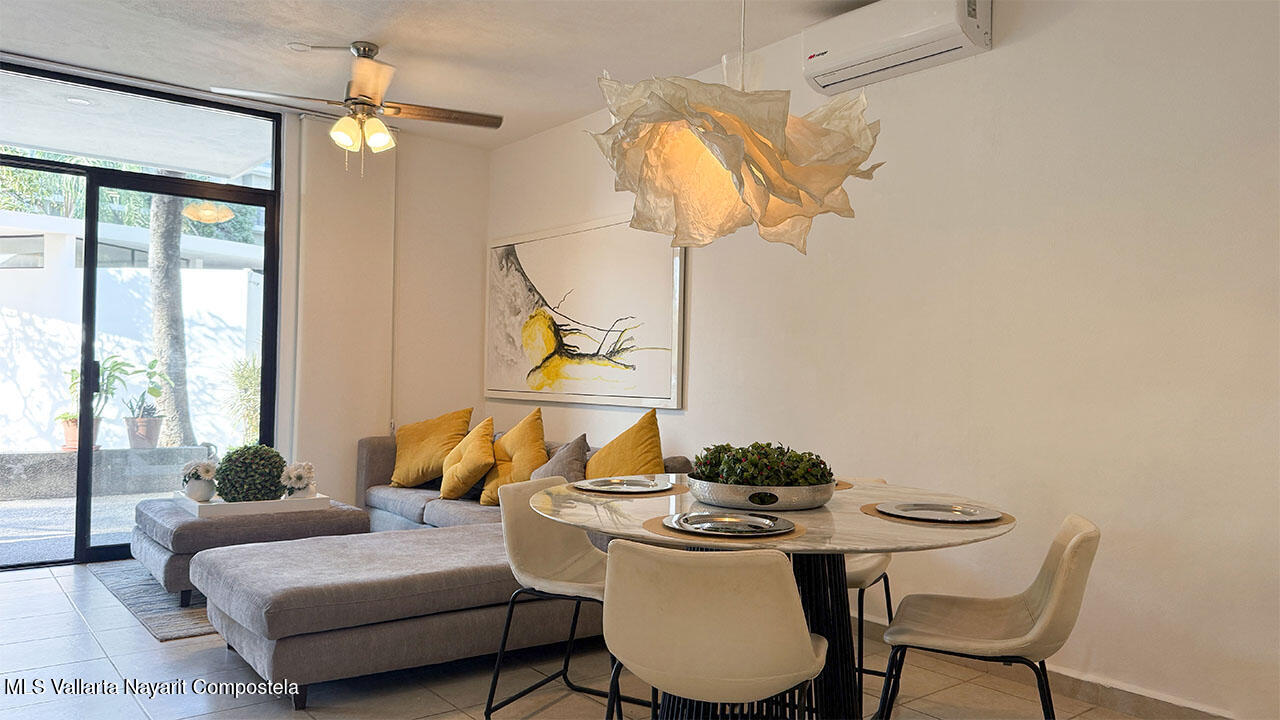 Cuenta con dos recamaras, dos banos, sala, comedor, cocina integral equipada, estacionamiento, jaula tipo bodega. Esta localizado en planta baja y se entrega completamente amueblado. Ademas el desarrollo cuenta areas comunes como alberca y area infantil de juegos.It features two bedrooms, two bathrooms, a living room, dining area, fully equipped kitchen, parking space, and a storage cage. It is located on the ground floor and is delivered fully furnished. Additionally, the development includes common areas such as a swimming pool and a children’s play area.