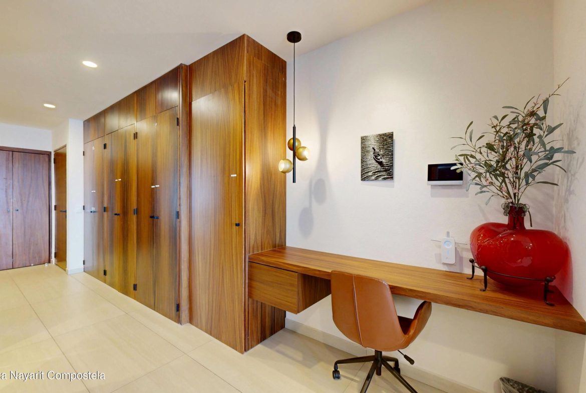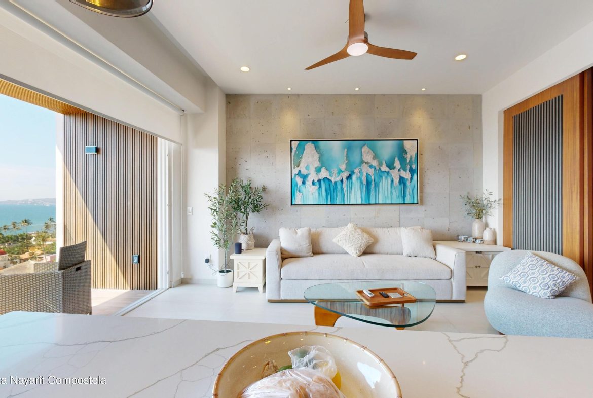 Stunning 2 bedroom, 2 bath condo located on the 9th floor of Maralmas sought after Amber Tower in Bucerias. This residence offers panoramic ocean and sunset views from the main living area, complemented by designer furnishings and high quality upgrades throughout. The condo is sold fully furnished, featuring 4 custom closets, a generous pantry, ceiling fans, blackout curtains in the primary suite, and sun screen shades in the living room. Maralma provides exceptional amenities with two rooftop levels, including an infinity pool, hot tub/Jacuzzi, and comfortable lounge areas. Situated just steps from the beach in Bucerias desirable Zona Dorada, this unit delivers excellent high season rental performance, making it a strong turnkey option for investors or full time